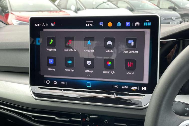 Activated carbon canister, Adaptive cruise control (ACC) with speed limiter and front assist (reacting to vehicles pedestrians and cyclists), Advanced driver attention and drowsiness monitor, Driver alert system, Dynamic road sign display, E-Sim card for online connectivity, eCall emergency call system, Multi-color Digital cockpit pro, selection of different info profile possible, Multifunction camera for distance control, Navigation system, Oncoming vehicle braking when turning including swerve support, Power assisted speed sensitive steering, Preparation for light assist system, Speedo, rev counter, electronic odometer, trip, service interval display, exterior temperature and fuel gauge, Voice assistant and voice enhancer with chat GPT, Warning signal and warning light for front and rear seatbelts not fastened, We connect plus preparation, We connect preparation, Wireless app connect, Petrol Particulate Filter, Start-stop system with battery regeneration (recuperation - energy recovery during braking), XDS electronic differential lock for improved traction and handling, 2 USB C ports in front, 2 USB charging sockets on the centre console in the rear charging capacity upto 45W, Comfort telephony + wireless charging, without wireless aerial connection, Digital radio reception (DAB), Diversity antenna for FM reception, Infotainment system with 12.9" display, 3rd brake light, Auto headlights, Automatic headlamp activation with Coming home and Leaving home feature, Body colour door handles, Body colour door mirrors, Chrome plated radiator grille inserts and light switch surrounds, Exterior mirrors convex on the left and aspherical on the right, Front and rear electric windows, Heat insulating windshield made of laminated glass, LED daytime running lights, Rear exhaust tailpipe, Rear fog light on one side and reversing lights on both sides, Rear side wing doors, Rear windscreen washer and wiper with interval delay, Remote electrically foldable door mirrors, puddle lights and reverse activated passenger's door mirror, Standard bumpers, Welcome light with surround lighting, 12V socket in front centre console, 12V socket in luggage compartment, 3 rear head restraints, 3 seat bench in 2nd row, Front centre armrest, Front head restraints, Front passenger seat, ISOFIX anchors for child seats on outer rear bench seats and on front passanger seat compatible for i-Size, Luggage compartment lighting, Rear cupholder and loadthough, Soul black instrument panel, Split folding backrest with centre armrest and unsplit rear seat bench, Standard pedal cluster, Storm grey roof lining, Sun visors with illuminated vanity mirrors, 3 point height adj front seatbelts + pretensioners, 3 rear three point seatbelts, ABS, Autonomous emergency braking front assist with pedestrian and cyclist monitoring, Child locks on rear doors, Driver and front passenger airbag with front passenger airbag deactivation, Electronic parking brake with auto hold, ESC (Electronic Stability Control), Extended pedestrian protection measures, Rear disc brakes, Two tone horn, Tyre pressure monitoring system, Volkswagen roadside assistance, Anti theft wheel bolts, Preparation for alcohol interlock, Nature cross brushed decorative inserts for dashboard and front door panels,