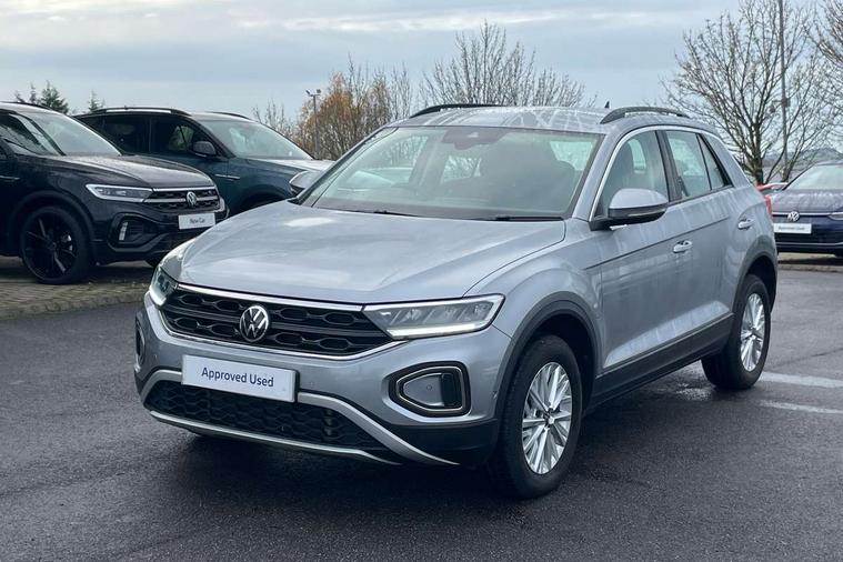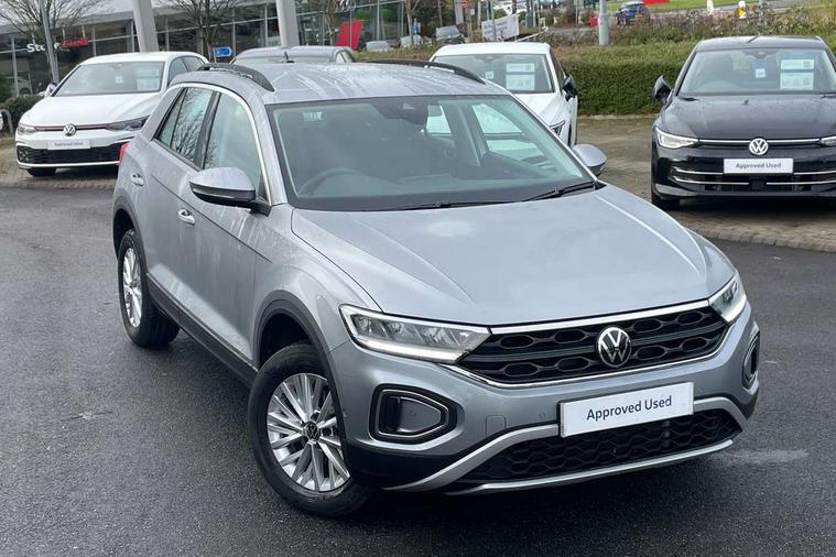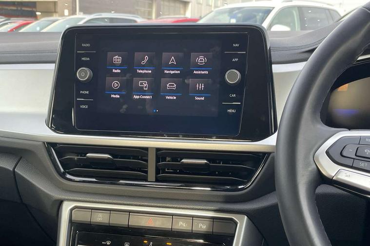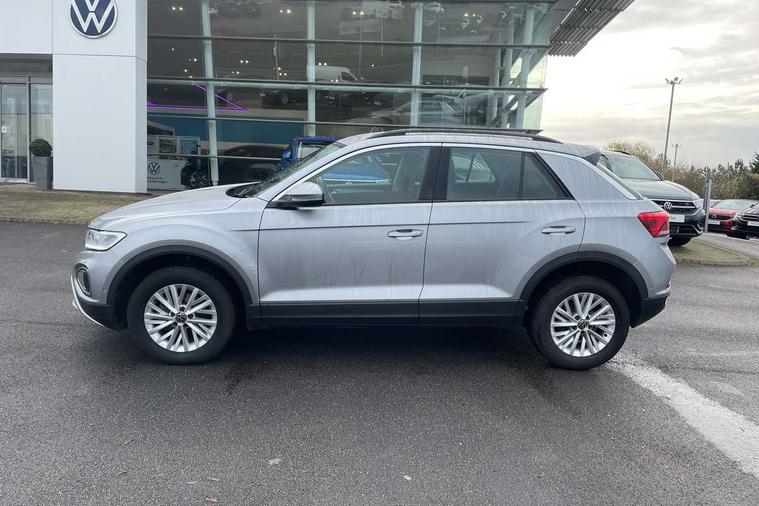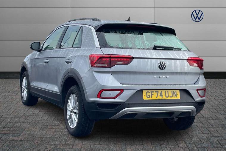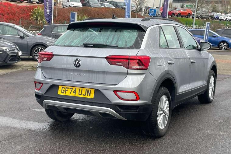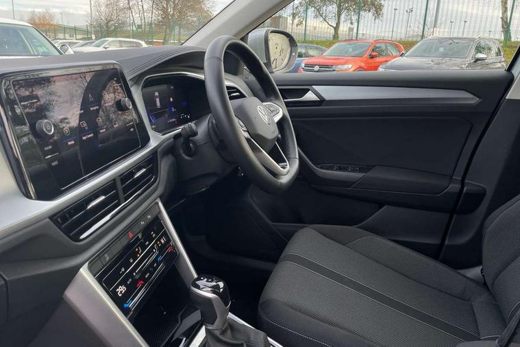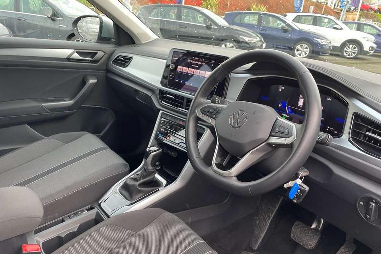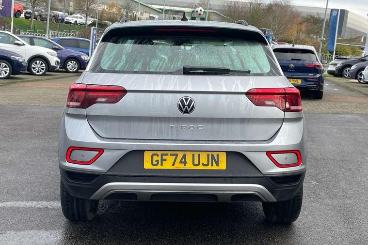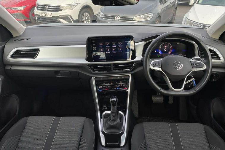 Advanced driver attention and drowsiness monitor, Dynamic road sign display, Emergency call service, Lane keeping system Lane Assist, Mobile phone interface, Modified key software - reduce switch off time for key status change to Long no motion, Online services, Park assist including front and rear parking sensors, Power assisted speed sensitive steering, Service interval indicator, Tailgate/trunk lid release from outside, Think blue trainer driver tips and journey analysis, Warning sound and light for front seatbelts unfastened, Wireless app connect, Battery regeneration during braking, Front shock absorption, Rear shock absorption chassis with increased ride height, Start/stop function with battery regeneration, DAB Digital radio, Diversity antenna for FM reception, Front and rear 6 speakers, Music playback - MP3, WMA and AAC files, Premium USB cable in choice of either Apple or Android smartphone compatibility, SD card slot, Simultaneous pairing of 2 compatible mobile devices, Title and cover art display, We Connect and We Connect Plus functionality, Auto dimming interior rear view mirror, Automatic hazard lights activation under emergency braking, Automatic headlight control with LED separate daytime running lights with coming/leaving home function, Black roof rails, Body coloured bumpers and radiator grille with chrome trim and front fog lamps with chrome bezel, Body coloured exterior mirror housings and door handles, Electrically adjustable and heated door mirrors, Extended roof spoiler, Exterior mirrors aspherical on driver side, convex on front passenger side, External USB type C socket and charging sockets, Front windscreen wiper with intermittent wipe and 4 position delay, Heated rear window, LED 3rd brake light, LED rear combination lamps, LED rear number plate lights, Power windows with comfort operation and circuit breaker, Rain sensor, Rear exhaust tailpipe, Rear fog light on one side and reversing lights on both sides, Rear side wing doors, Rear wash/wipe with intermittent wipe setting, Remote electrically foldable door mirrors, puddle lights and reverse activated passenger's door mirror, 12V power socket in centre console, 3 rear head restraints, 3 seat bench in 2nd row, 4 load lashing points in luggage compartment, Air care climatronic air conditoning system with active combination filter and 2-zone temperature control, Ambient lighting with mirror logo projection, Cloth upholstery, Door and side trim panel in cloth, Drawer under drivers seat, Driver/front passenger seat height adjustment, Front centre armrest, Front comfort sports seats, Front cupholders x 2, Front reading light, Front seat back storage pockets, Glove compartment door with light, Instrument lighting, white adjustable panel illumination, Interior light delay, Isofix child seat preparation, Leather gearshift handle, Load-through provision with cup holder when folded down ('Unsplit rear seat bench, split folding backrest, with centre armrest), Luggage compartment lighting, Lumbar support for driver's and front passengers seat, Non-folding front passenger seat backrest, Single front passenger seat, Storage compartment in left and right luggage area, Storage compartment in rear doors, Storage compartments in driver and front passenger doors, Sunvisors with illuminated vanity mirrors, Variable boot floor, height adjustable and removable, Driver assistance pack without proactive passenger protection - T-Roc Life/Match, 3 point height adj front seatbelts + pretensioners, 3 point seatbelts in outer rear with ECE label, ABS, Child locks on rear doors, City emergency braking and pedestrian monitoring, Driver and front passenger airbag with front passenger airbag deactivation, Driver and front passenger safety-optimised head restraints, Drivers seatbelt reminder, Electronic parking brake, Electronic Stability Control (ESC) inc EDL (Electronic Differential Lock) and ASR (Traction Control), Front and rear passengers curtain airbag system including front side airbags, Front disc brakes, Hill start assist, Predictive pedestrian protection, Rear disc brakes, Two tone horn, Tyre pressure loss indicator, Volkswagen roadside assistance, Alarm with interior protection, Pewter matt decorative inserts for intrument panel, centre console and door panels at the front, Trims for alloy wheels,