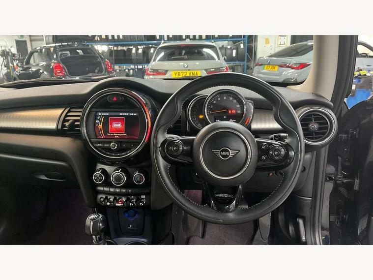 Automatic start/stop function with brake energy recuperation, Compatible mobile phone bluetooth with audio streaming, Electro-mechanical speed dependant steering assistance, Instrument cluster, MINI Driving Modes - centre toggle switch to control driving setting (sport, mid and green), Mini E-call, MINI TeleServices, On board computer, Service interval indicator, Double Vanos system, Fully variable valve control, Gear change indicator display, High precision injection, Performance Control, 6.5" touchscreen with LED ring, FM tuner and DAB digital radio, Automatic headlight activation switch, Bonnet scoop, Chrome border honeycomb structure radiator grille with S badge, Chrome plated fuel cap, Dynamic brake lights, Electric front+rear windows, Heated rear window, Heated windscreen washer jets, LED headlight with closed ring and daytime driving lights, Metal door sill strips with Cooper S imprint, Model logo Cooper S on right of tailgate, Radiator grille bars, tailgate handle, lower front grille grating, rear central fog light in chrome, Rain sensor window wipers, Rear fog lights, Rear LED lights with union jack design, Rear window wiper, Side scuttle panel with integrated indicator, Sun/heat protection glass, Two central exhaust tailpipes with chrome finisher, White indicator lenses, 12V Accessory socket in centre console, 4 lashing eyes in luggage compartment, 60/40 split folding rear seat, Air vents, gear lever base, speakers in doors, door handles in chrome, Carbon Black colour line, knee roll and door armrests, Chrome interior highlights, Cupholders, Front and rear head restraints, Front and rear isofix with front passenger airbag deactivation, Glove compartment, Height and length steering column adjustment, Interior lighting with 12 basic colours selectable via toggle switch in roof, Leather gearshift lever and handbrake gaiters, LED reading lights, vanity mirror lights, front foot well light and spotlight on front seats, Manual air conditioning, Mechanical seat adjustment, driver seat height adjust, forward/back and front seats backrest, Mini logo projection on floor from drivers exterior mirror, MINI Yours leather steering wheel with silver contrasting stitching with MINI Yours badge, Multifunction steering wheel, Storage compartments in doors, Storage pocket on back of front seats, Sunvisors with vanity mirrors, 3 point seatbelts on all four seats, 6 Airbags - front, side, head and seat belt tensioners, Anti-lock braking system (ABS), DSC - Dynamic Stability Control, Front and rear disc brakes, Hill start assist, Two tone horn, Tyre pressure monitoring system, Alarm system with tilt sensor, monitoring doors, bonnet interior and tailgate, Electronic vehicle immobiliser, Start/stop toggle with keyless go, Chrome line interior, Tool kit,