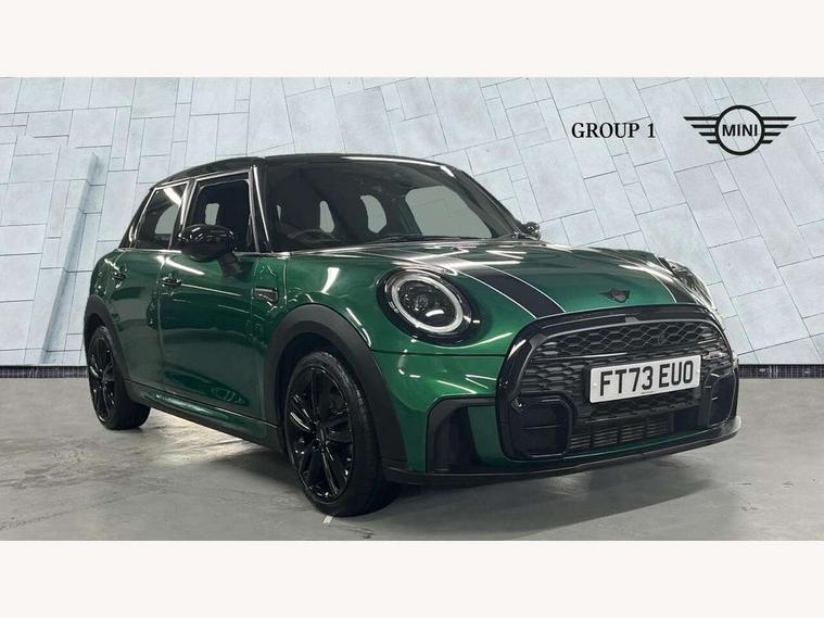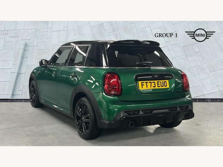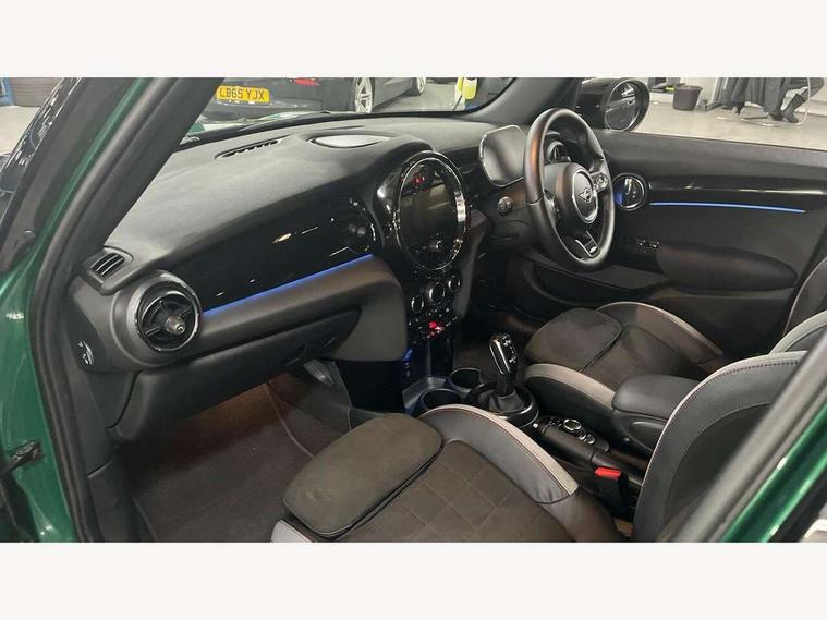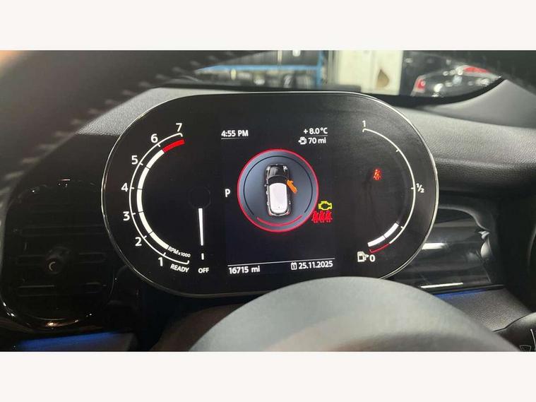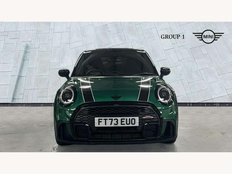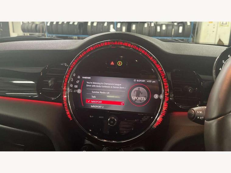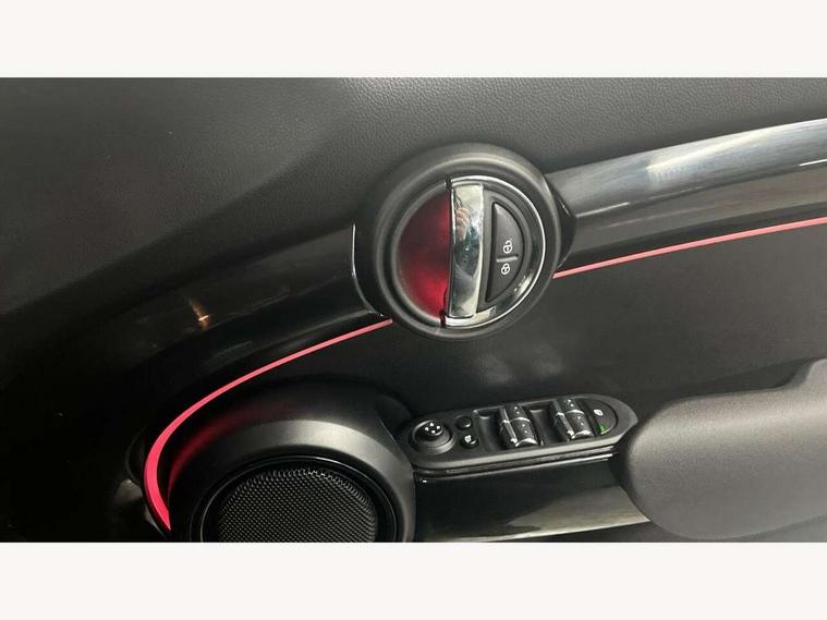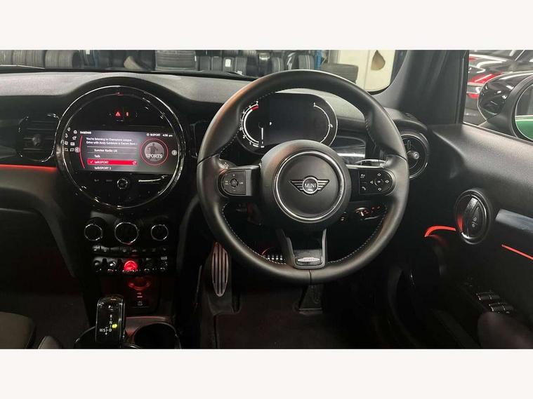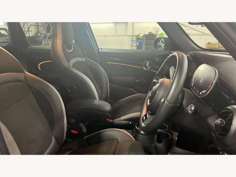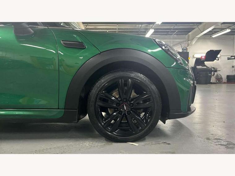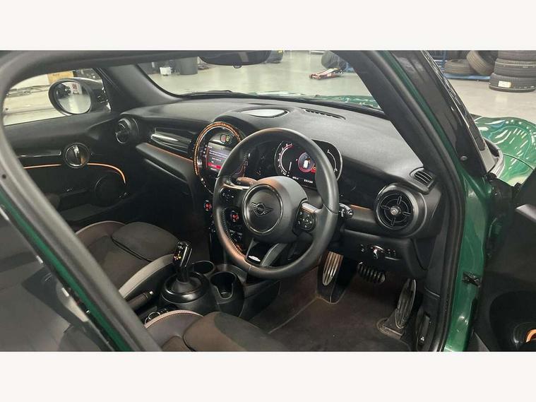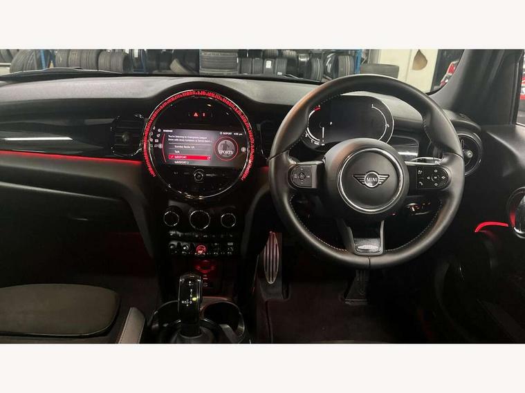 Apple CarPlay, Automatic start/stop function with brake energy recuperation, Compatible mobile phone bluetooth with audio streaming, Electro-mechanical speed dependant steering assistance, Flexible car sharing preparation, MINI Driving Modes - centre toggle switch to control driving setting (sport, mid and green), Mini E-call, MINI TeleServices, On board computer, Rear park distance control, Service interval indicator, Adaptive suspension, Double Vanos system, Fully variable valve control, Gear change indicator display, High precision injection, Performance Control, Steptronic transmission with double clutch, 8.8" touchscreen with LED ring, FM tuner and DAB digital radio, 3rd brake light, Automatic headlight activation switch, Body colour fuel filler cap, Chrome border high gloss black slats radiator grille, Dynamic brake lights, Electric front+rear windows, Exhaust tailpipe on left with chrome finisher, Heated rear window, Heated windscreen washer jets, JCW Aerodynamic kit - Front and rear bumpers with sporty JCW styling and part-painted side sills with MINI John Cooper Works door sill finishers, John Cooper Works rear spoiler, Metal door sill strips with MINI imprint, Model logo Cooper on right of tailgate, Rain sensor window wipers, Rear fog lights, Rear LED lights with union jack design, Rear side wing doors, Rear window wiper, Side scuttle panel with integrated indicator, Sun/heat protection glass, White indicator lenses, 12V Accessory socket in centre console, 3 seat bench in 2nd row, 4 lashing eyes in luggage compartment, 60/40 split folding rear seat, Anthracite headliner including grab handles and clothes hooks, Carbon black colour line - Knee roll and door armrest, Chrome interior highlights, Cupholders, Front and rear isofix with front passenger airbag deactivation, Front and rear velour floor mats, Glove compartment, Height and length steering column adjustment, Interior lighting with 12 different colours across the dashboard, underneath door bezel with illuminated laser-engraved design on central display, JCW Sport seats with integrated headrests, adjustable thigh support and John Cooper Works logo, Leatherette gearshift lever and handbrake gaiters, LED reading lights, vanity mirror lights, front foot well light and spotlight on front seats, Mechanical seat adjustment - forward/back & backrest for front seats and driver seat height adjust, Multifunction steering wheel, Single front passenger seat, Storage compartments in doors, Sunvisors with vanity mirrors, Walknappa leather steering wheel with grey seam and John Cooper Works badge on Piano Black lower steering wheel spoke, Piano black exterior pack - Mini Hatchback Cooper, 3 point seatbelts on all five seats, 6 Airbags - front, side, head and seat belt tensioners, Anti-lock braking system (ABS), Child locks on rear doors, DSC - Dynamic Stability Control, Front and rear disc brakes, Hill start assist, Single tone fanfare horn, Tyre pressure monitoring system, Alarm system with tilt sensor, monitoring doors, bonnet interior and tailgate, Electronic vehicle immobiliser, Start/stop toggle with keyless go, Piano black interior trim, Tool kit,