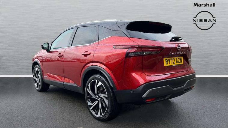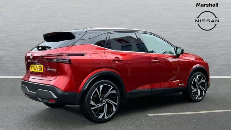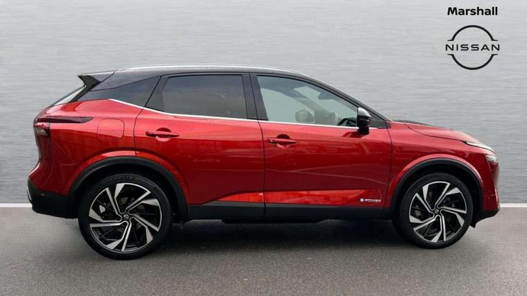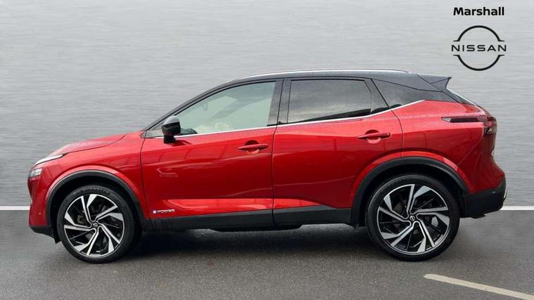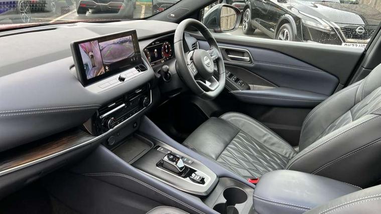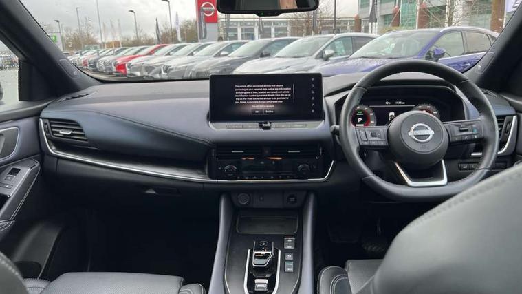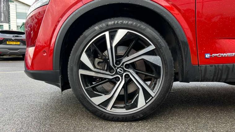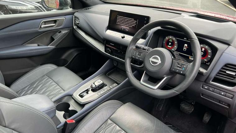 Advanced windscreen head up display, Android auto/Apple CarPlay (Wired), Blind spot warning, Drive modes (sport, normal, eco), Electric speed sensitive power steering, Emergency and breakdown call, Front and rear parking sensors, Full Digital 12.3" TFT Digital Combimeter, Google maps services - search, weather, 3D maps and Google street view, Hands free power tailgate, Idle stop/start system, Intelligent around view monitor, Intelligent Cruise control (ICC), Intelligent driver alert system, Intelligent forward collision warning, Intelligent lane intervention, Lane departure prevention, Lane departure warning system, Lane keep assist, Moving object detection, Nissan connect 12.3 inch touchscreen infotainment system, Nissan connect navigation, Pro pilot park assist, ProPILOT with Navi-Link, Push button starter, Rear cross traffic alert, Rear view camera, Remote control services - door locks, lights, horn and car locator, Telematics - notifications and connectivity services, TomTom live traffic services, Traffic sign recognition with legal speed adjustment, Trip computer, Virtual personal assistant and firmware over the air capability, Wireless apple carplay, Wireless charging pad, 10 Bose speakers - 2 tweeters, 6 high and medium frequency door speakers and 2 in subwoofer, AM/FM audio system with DAB, Bluetooth audio streaming, Bose acoustimass bass box, Digital amplifier, Front USB connections (Type-A and Type-C), Rear USB charging only ports (Type-A and Type-C), Auto dimming rear view mirror, Auto rear wiper when reversing, Automatic hazard signal with emergency stop signal, Body colour mirror caps, Body coloured door handles, Bodyside mouldings, Chrome side window finisher, Door handle with button, Door mirror memory, e-POWER badging, Electric auto folding door mirrors, Electrically adjustable and heated door mirrors with LED turn indicator, Follow me home headlights, Front and rear LED turning signals, Headlights auto levelling system, Intelligent auto headlights, LED daytime running lights, LED front fog lights, LED headlights with adaptive driving beam, LED rear lights, One touch front and rear electric windows with remote opening and closing, Privacy glass, Rear bumper with graphite insert, Rear reversing light (bulb lighting), Rear roof spoiler, Rear side wing doors, Rear styling plate, Reverse tilting door mirrors, Shark fin antenna, Splash free rain sensing wipers, Super UV and infrared cut glass, Thermaclear heated windscreen, Three blink turn signal, 12v power socket in dashboard and luggage, 2x Rear coat hooks, 3 bench rear seats in 2nd row, 3 rear headrests, 4 folding assist grip, 6 Luggage hooks - 4 on floor, 2 on side, 60/40 split folding rear seat bench, Ambient lighting around centre console, Ambient lighting in front doors, Centre console storage tray, Chrome interior door handles, Dark black/blueish PVC wrapping, Dark headlining, Driver and front passenger sunvisors with illuminated vanity mirrors, Driver seat back pocket, Dual zone automatic climate control with pollen filter, e-POWER shifter, Electric 4-way lumbar support for drivers seat, Electric adjustable 4 way lumbar support for passenger seat, Electrically adjustable driver seat with massage and memory functions, Front and rear door storage, Front centre console and armrest, Front cupholders x 2, Front door with bottle holders, Glovebox with light, Hard trunk cover, Heated front seats, Heated steering wheel, Height adjustable driver's seat, Height adjustable front headrests, Height adjustable passenger seat, Leather steering wheel, Luggage board system, Luggage space lighting, Manually adjustable passenger (slide recline + lifter), Multifunction steering wheel, Passenger seat back pocket, Quilted premium leather upholstery, Rear armrest with 2 cupholders, Rear door bottle holders, Single front passenger seat, Soft PVC kneepad, Steering wheel switches, Tilt/telescopic adjustable steering wheel, Two rear isofix child seat anchorage points with top tether, Welcome light and doors with console tray ambient lighting, Glass roof pack with roof rails - Qashqai, 3x3 point rear seatbelt pretensioners + load limiters, ABS with EBD and brake assist, Active brake limited slip, Auto hold function, Child locks on rear doors, Curtain and front side, far side airbags, Driver and passenger airbags, Driver, passenger and 2nd row rear seat belt reminder, Electronic parking brake, Front seatbelt pretensioners + load limiters, Height adjustable front seatbelts, Hill start assist, Intelligent blind spot intervention, Intelligent front emergency braking with pedestrian, cyclist recognition and junction assist, Intelligent rear automatic braking, Tyre pressure monitoring system, Vehicle dynamic control, Advance intelligent key with driver memory storage (seats, mirrors, audio), Capless fuel filler, Engine immobiliser, Remote central door locking with deadlocking, Thatcham Cat.1 alarm, Interior instrumental panel C finisher, 20" Diamond cut alloy wheels, Tyre puncture repair kit,