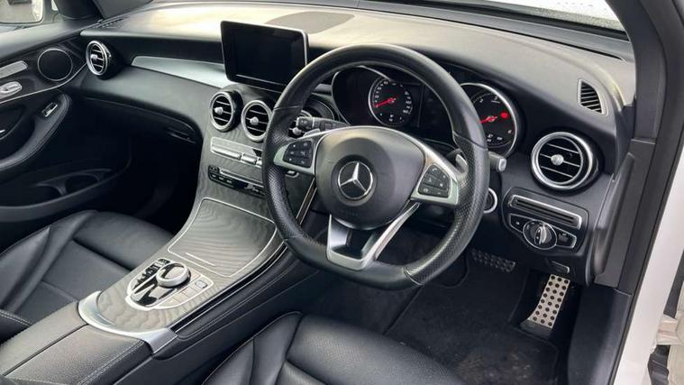 7" colour screen, Active park assist with parktronic system, Attention assist, Bluetooth interface for hands free telephone, Collision prevention assist plus, Crosswind Assist, DYNAMIC SELECT with a choice of driving modes (ECO, Comfort, Sport, Sport+ and Individual), Garmin Map Pilot navigation system with SD card, touchpad and voice control, Instrument cluster with 5.5-inch TFT multi-function display, Multi function trip computer, Outside temperature gauge, Power opening/closing tailgate, Remote boot release, Service indicator (ASSYST), Diesel particulate filter, 5 speakers, DAB Digital radio, Frontbass loudspeakers, Mercedes Audio 20 radio/single CD + telephone keypad, USB connection, Adaptive brake lights, Aerodynamic rear spoiler, AMG bodystyling, Automatic headlights, Body coloured bumpers, Chrome exterior trim, Electric panoramic sunroof with sunblind, Electric windows one touch open/close, Electrically adjustable and heated door mirrors, Exhaust tailpipe finisher, LED daytime running lights, LED rear lamps, Privacy glass (to rear of B post), Rain sensor windscreen wipers, Range adjustable headlights, Rear wiper, Tinted glass all round, 2 cupholders in front centre console, 2 way rear head restraints, 3 spoke flat bottom AMG steering wheel in nappa leather, 4 way adjustable front head restraints, 4 way electric lumbar support for driver and front passenger, 40:20:40 split folding rear seats, Ambient lighting, AMG floor mats, AMG sports seats, Auto Mercedes-Benz child seat recognition sensor, Automatic climate control, Black roof lining, Dividing net - rear, Electric front seat height adjustment, Front armrest with storage box, Front door sills with Mercedes Benz lettering, Gearshift paddles, Heated front seats, Height/reach adjustable steering column, Lockable/illuminated glovebox, Multifunction steering wheel, Rear top tether child seat ISOFIX attachment, Sports pedals with stainless steel surfaces and rubber studs, Sunvisors with illuminated vanity mirrors, Easy-pack load compartment cover, Interior lighting pack - GLC, Memory pack - GLC, Mirror pack - GLC, Storage pack - GLC, 3 rear 3 point seatbelts, ABS with Brake Assist, Active bonnet, Adaptive brake system, Brake calipers with Mercedes-Benz lettering + perforated brake discs, Child proof door locks, Drivers knee airbag, Dual stage driver/passenger airbags, Electronic parking brake, ESP with ASR, Front and rear seatbelt reminder, Front passenger seat occupancy sensor, Front side airbags, Hill hold function, Tyre pressure monitoring system, Warning triangle and first aid kit, Window airbags, Alarm system/interior protection/immobiliser, Automatic door locking, Keyless entry and keyless start, Remote central locking, Tyre inflation kit,