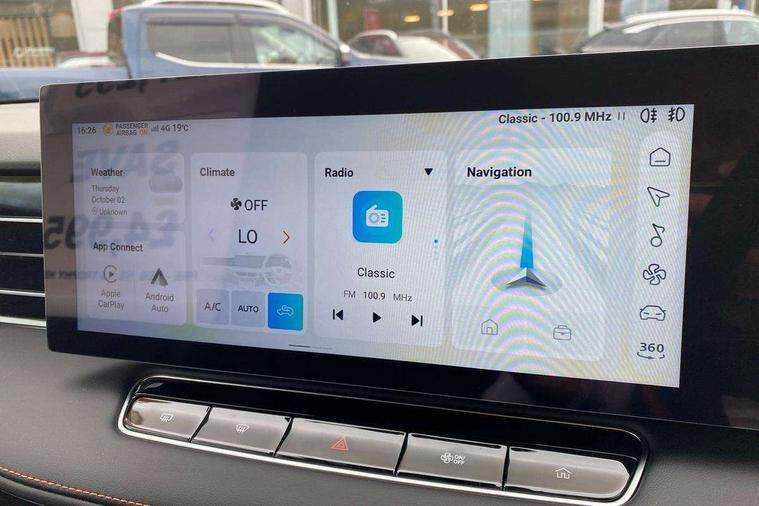 Driver attention alert, 12.3" colour touchscreen, 12.3" Virtual driver information display, 360 degree parking camera, Adaptive cruise control, Android Auto, Apple CarPlay, Blind spot detection, Bluetooth connectivity, Driving modes, Emergency call service, Forward collision warning, Front parking sensors, Intelligent speed limit assist, iSmart, Lane change assist, Lane keep assist system (LAS) with Lane departure warning system (LDWS), Live services, PAS, Rear cross traffic alert, Rear parking sensors, Satellite navigation system, Smart power tailgate, Traffic jam assist, Trip computer, Wireless charging, 4 USB ports 2 front and 2 rear, 8 Speaker audio system, DAB audio, Auto dimming rear view mirror, Automatic headlights, Electric adjustable/heated/folding door mirrors with memory, Follow me home headlights, Front and rear aero wiper, Front and rear electric windows with one-touch up/down, Front fog lights, Intelligent high beam, LED 3rd brake light, LED daytime running lights, LED Headlights, LED rear lights, Rain sensing wipers, Rear privacy glass, Rear side wing doors, Silver roof rails, Vehicle to Load, 12V power sockets, 2nd row 60/40 split fold seat, 3 rear headrests, 3 seat bench in 2nd row, 3 stage heated front seats, 4 way electric adjustable passenger seat, 6 way electric adjustable drivers seat with lumbar adjustment and memory function with easy access, Dual zone automatic air conditioning, Front and rear reading lights, Front centre sliding armrest with storage compartment, Front headrests, Height and reach adjustable steering wheel, ISOFIX restraints on outer rear seats x2, Multi function steering wheel, Single passenger seat, 3x3 point rear seatbelts, ABS/EBD, Active emergency braking with pedestrian/Bicycle detection, Anti rolling protection, Door open warning, Drivers seatbelt reminder, Dual front airbags, Electric parking brake with auto hold function, ESP, Front and rear passenger seat belt reminder, Front centre airbag, Front passenger airbag deactivation switch, Front seat belt height adjuster, Front seatbelts (3-point + pretensioner + load limiter), Front side airbags, Hill descent control, Hill launch assist, Manual rear child locks, Rear outer seatbelt pretensioner and load limiter, Side curtain airbags, Tyre pressure monitoring system, Acoustic vehicle alert system (AVAS), Alarm system and engine immobiliser, Keyless entry and push button start system, Remote central locking, Speed sensing door locks, 19" Blade diamond cut alloy wheels, Tyre repair kit,