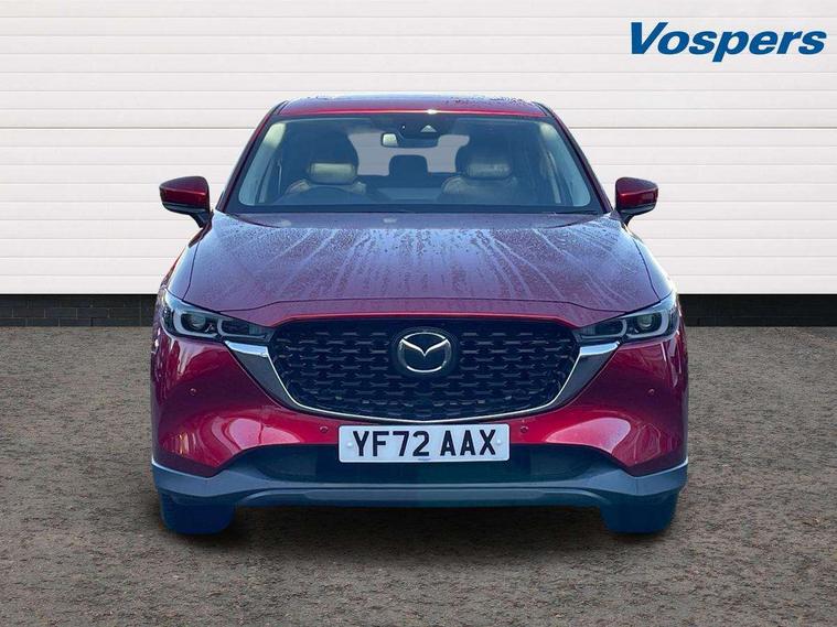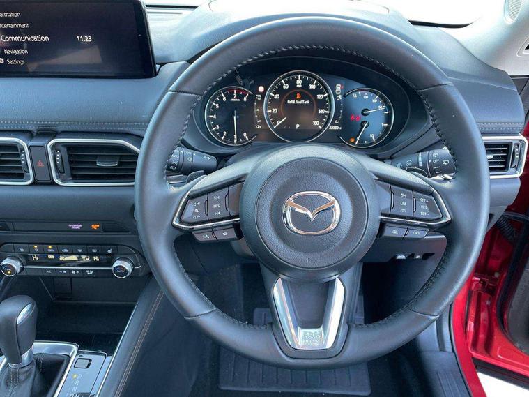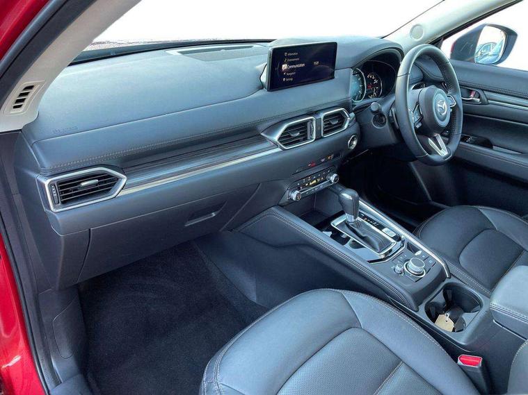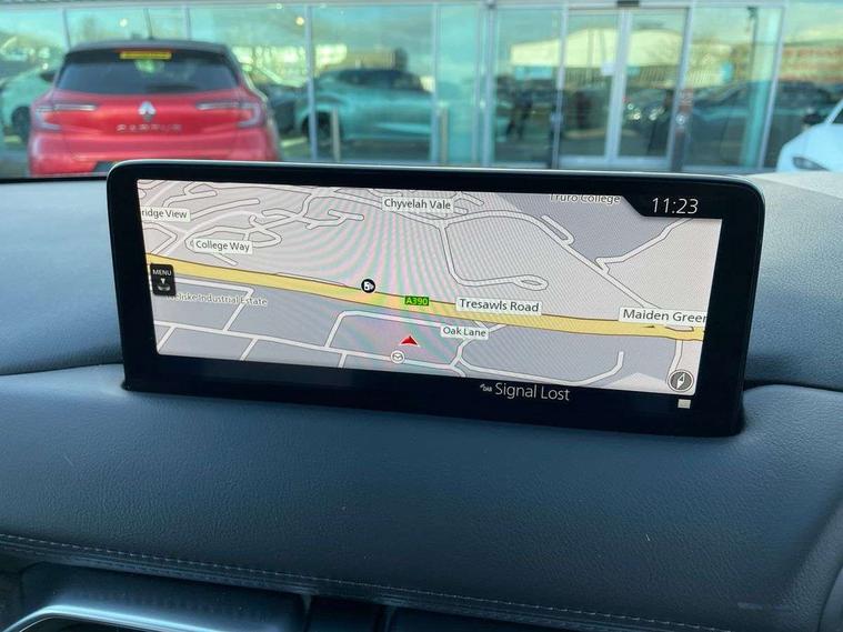 10.25" display with Mazda Connect infotainment, 7" colour TFT display, Advanced blind spot monitoring, Apple car play/Android Auto, Bluetooth connectivity with voice control, Collision prevention assist, Connected services, Cruising Traffic Support, Drive mode selector, Electric power steering, Emergency stop signalling system, Engine start/stop button, Forward collision warning, Front and rear parking sensors, Integrated navigation system, Intelligent speed assist, Lane departure warning system, Lane keep assist, Radar cruise control with Stop and Go, Reversing camera, Service indicator, Traffic sign recognition (TSR), Trip computer, Windscreen projected colour active driving display (HUD) with memory, i-stop, 2 USB sockets in rear, 2x USB sockets in front, 6 speakers, AM/FM radio, Bluetooth audio streaming, DAB Digital radio, Multimedia Commander including separate volume dial, Steering wheel mounted audio controls, Adaptive front lighting system, Auto dimming rear view mirror, Automatic headlights, Black inlay dashboard panel, Body colour door mirrors, Body colour roof spoiler, Body coloured front and rear black lower bumper mouldings, Bright finish signature wing, Coming/leaving home lighting function, Door mirror integrated indicators, Dual chrome tailpipes, Dusk sensitive headlamps, Electric front/rear windows with one touch auto up/down, Front grille in gloss black finish, Gloss black B and C pillars garnish, High beam assist, Intermittent rear wash/wipe, LED auto levelling, LED daytime running lights, LED front fog lights, LED Headlights, LED third brake light, Power folding and heated door mirrors, Power tilt/slide sunroof, Privacy glass (rear side windows only), Rain sensing front wipers, Rear side wing doors, Satin black side mouldings, Scuff plates, Shark fin antenna, Signature LED rear combination lights, Vinyl with wood grain metal inlay door trim panel, Windscreen wiper de-icer, 12v electrical power outlet, 3 seat bench in 2nd row, 3 stage heated front seats, 40:20:40 Karakuri fold-flat seat system, 6 way electric adjustable passenger seat, 8 way electric driver seat with lumbar support + memory, Cargo room flat floor board with waterproof undertray, Driver seat power slide, recline and height adjustment, Driver, Front passenger and two rear grab handles with coat hooks, Driver/passenger front seatback pockets, Driver/passenger sunvisors + illuminated vanity mirrors (drivers with ticket holder), Dual zone climate control, Folding centre armrest with 2 cup holders, Front and rear door pockets, Front centre storage with two cupholders, Front passenger seat power slide, recline and height adjustment, Heated steering wheel, Humidity sensor, Illuminated glovebox, Interior dome light with integral spotlight, ISOFIX child seat anchorage points attached on outer rear seats, Karakuri tonneau cover, Leather upholstery, Leather wrapped steering wheel and gear knob, Light roof lining, Luggage compartment LED lighting, Luggage compartment power outlet, Paddle shifts, Rear air vents, Rear headrests, Rear seat recline, Roof mounted sunglasses holder, Single front passenger seat, Three height adjustable head restraints, Tilt/height adjustable steering wheel, White interior LED illumination lighting, 3 point front seatbelts with pre-tensioners, 3 rear 3 point seatbelts, ABS, Advanced Smart City Brake Support - SCBS, Child locks on rear doors, Driver and front passenger side airbags, DSTC-Dynamic Stability and Traction Control, Dual front airbags, Electronic brake force distribution, Electronic parking brake with auto hold, ESP, Front and rear curtain airbags, Front passenger airbag deactivation, G-Vectoring control, Hill hold assist, Seatbelt reminder front and rear, Single stage passenger airbags, Smart brake support with forward obstruction warning, Tyre pressure monitoring system, Automatic door locking when moving off, Deadlock, Immobiliser, Power door locks, Remote central locking, Smart keyless entry, Thatcham Cat.1 alarm, 19" diamond cut black alloy wheels, Tyre repair kit,