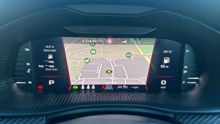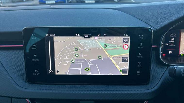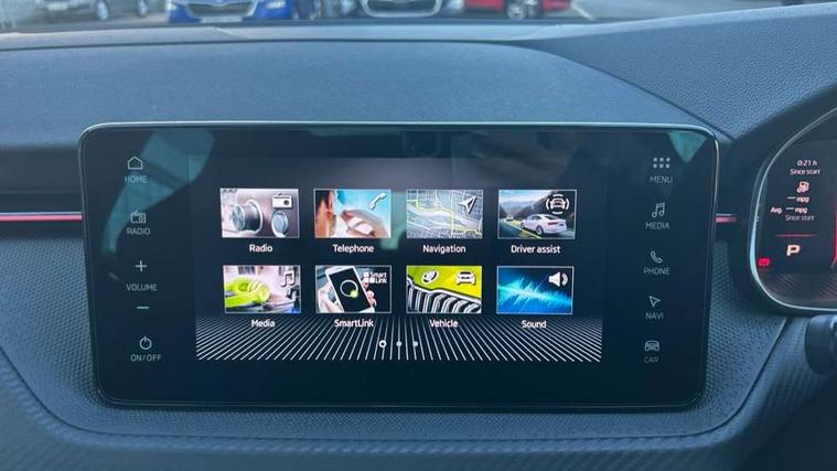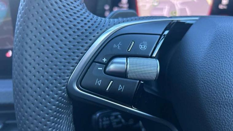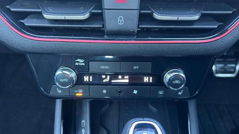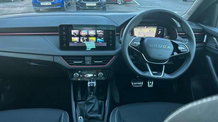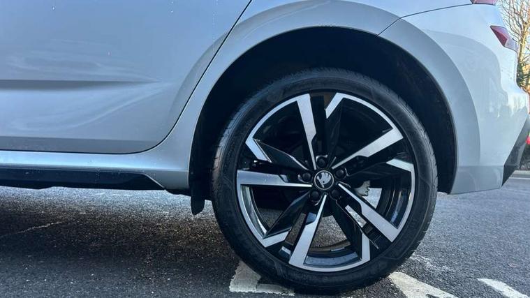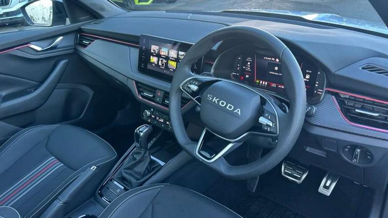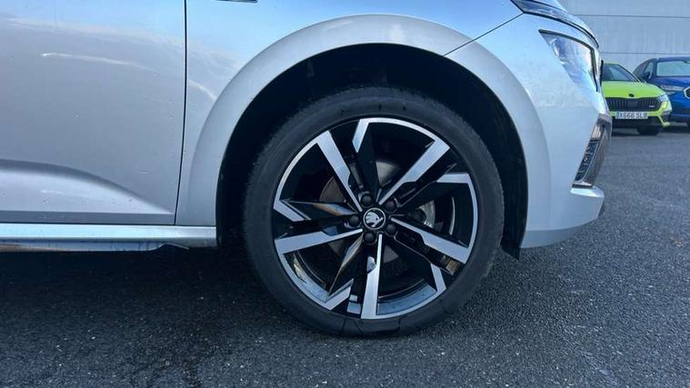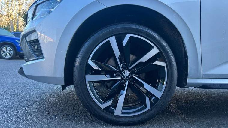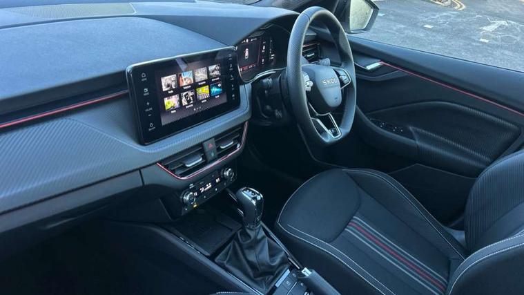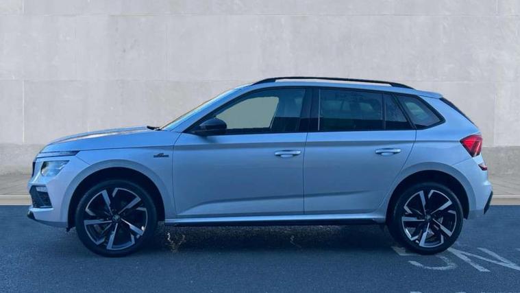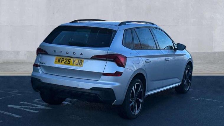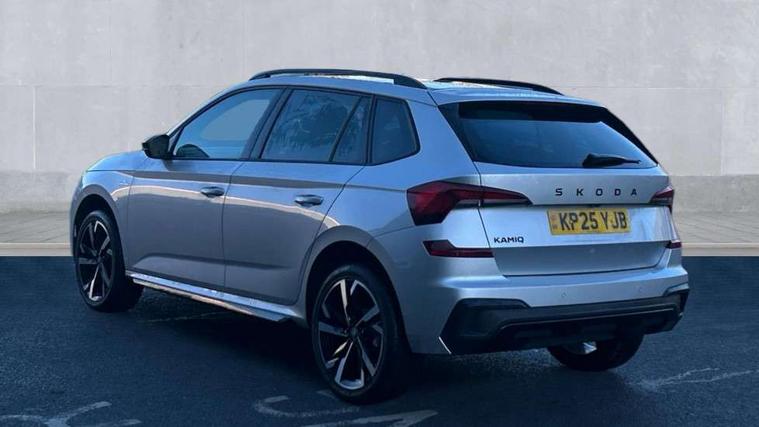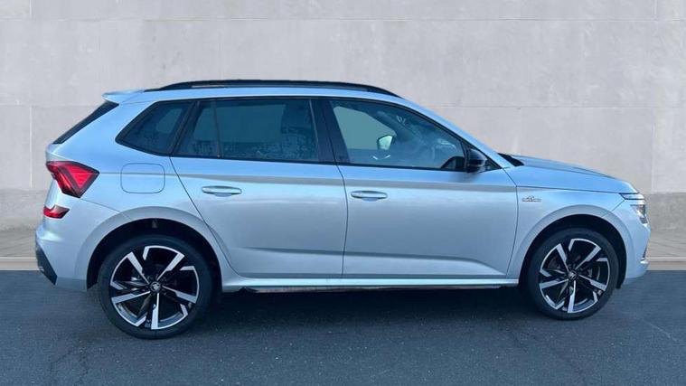 Advanced driver attention and drowsiness monitor, Bluetooth system, E-call, Front assist system, PAS, Rear parking sensors, Rear view camera, Service indicator, Speed limiter, Traffic sign recognition, Virtual cockpit with 10.25" display, Voice control system, Wireless smartlink, 4 USB C ports, 8 Speakers, 9.2" Skoda navigation display, DAB Digital radio, Auto dimming rear view mirror, Automatic headlight control with coming home and leaving home feature, Black door mirrors, Black radiator grille, Black rear diffuser, Black roof spoiler, Body colour bumpers, Body colour door handles, Boot lettering in black, Extended tailgate glass, Fixed panoramic sunroof with black roof rails, Front and rear electric windows, Heated rear window, LED daytime running lights, LED high beam, LED low beam, LED third brake light, Light sensors, Monte carlo plaque, Privacy glass, Rear side wing doors, Rear wiper, Ticket holder inside windscreen, 12V socket in luggage compartment, 3 seat bench in 2nd row, Aluminium pedals, Ambient lighting in white/red, Art leather carbon decor inserts, Art leather carbon door inserts, Black roof lining, Cargo elements, Chrome inner door handles, Driver and passenger sun visors with vanity mirror, Dual zone climate control, Front and rear roof lights, Front centre armrest, Front head restraints, Glove compartment with illumination, Height adjustable driver seat, Height adjustable front passenger seat, Ice scraper, Inner circulation control with pollen filter, ISOFIX on front passenger seat, Isofix preparation for back seats, Leather gearknob and handbrake lever, Manual lumbar support for front seats, Monte Carlo cloth upholstery, Net package and top tether hooks in boot space, Net under rear shelf, Pocket on the back of both front seats include mobile phone pockets, Rake/reach adjustable steering wheel, Reading lights, Rear centre armrests, Red hotstamping, Single front passenger seat, Sports seats, Textile floor mats, Third rear headrest, Top tether for front passenger seat, Umbrella in driver's door, Light and view plus package - Kamiq, 3x3 point rear seatbelts, Airbags - driver and front passenger, Disc brakes, ESP, Extended and predictive pedestrian/cyclist protection, Front passenger airbag deactivation switch, Front side airbags with curtain airbags, Hill hold control, Manual leather parking brake, Manual rear child locks, One tone horn, Seatbelt reminder for driver an co-driver, Traction control, Tyre pressure monitor, Anti-theft alarm system with interior monitoring, backup horn, towing protection and remote central locking with SAFE system, Anti-theft wheel bolts, Electronic engine immobilizer, 18" Ursa black diamond cut alloy wheels,