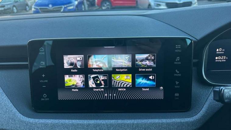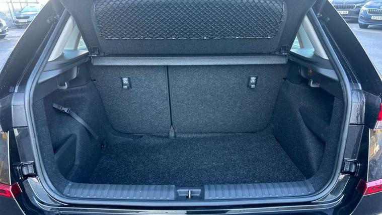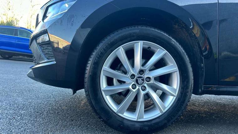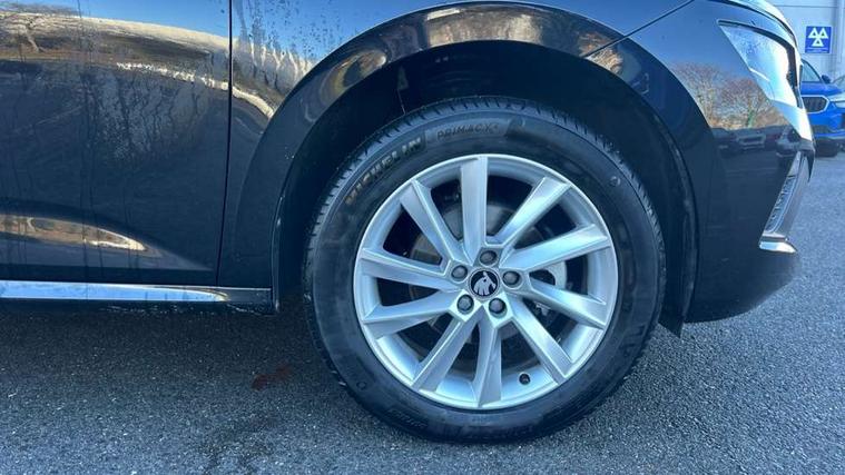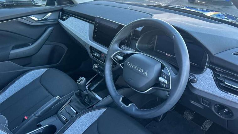 Advanced driver attention and drowsiness monitor, Bluetooth system, E-call, Front assist system, PAS, Rear parking sensors, Rear view camera, Service indicator, Speed limiter, Traffic sign recognition, Virtual cockpit with 10.25" display, Voice control system, Wireless smartlink, 4 USB C ports, 8 Speakers, 8.25" Skoda infotainment display, 9.2" Skoda navigation display, DAB Digital radio, Auto dimming rear view mirror, Automatic headlight control with coming home and leaving home feature, Black roof rails, Body colour bumpers, Body colour door mirrors and handles, Chrome grille surround, Front and rear electric windows, Full LED headlights, Heated rear window, LED brake lights, LED daytime running lights, LED front turning lights, LED high beam, LED low beam, LED third brake light, Rear LED fog light, Rear side wing doors, Rear wiper, Ticket holder inside windscreen, 12V socket in luggage compartment, 3 seat bench in 2nd row, Black hotstamping, Cargo elements, Chrome inner door handles, Driver and passenger sun visors with vanity mirror, Dual zone climate control, Front and rear roof lights, Front centre armrest, Front head restraints, Glove compartment with illumination, Height adjustable driver seat, Height adjustable front passenger seat, Ice scraper, Inner circulation control with pollen filter, ISOFIX on front passenger seat, Isofix preparation for back seats, Krepp recycled decor inserts, Leather gearknob and handbrake lever, Loft cloth upholstery, Manual lumbar support for front seats, Net package and top tether hooks in boot space, Net under rear shelf, Overhead glasses storage compartment, Pocket on the back of both front seats include mobile phone pockets, Rake/reach adjustable steering wheel, Reading lights, Satin black door inserts, Single front passenger seat, Textile floor mats, Third rear headrest, Top tether for front passenger seat, Umbrella in driver's door, 3x3 point rear seatbelts, Airbags - driver and front passenger, Disc brakes, ESP, Extended and predictive pedestrian/cyclist protection, Front passenger airbag deactivation switch, Front side airbags with curtain airbags, Hill hold control, Manual leather parking brake, Manual rear child locks, One tone horn, Seatbelt reminder for driver an co-driver, Traction control, Tyre pressure monitor, Anti-theft alarm system with interior monitoring, backup horn, towing protection and remote central locking with SAFE system, Anti-theft wheel bolts, Electronic engine immobilizer,
