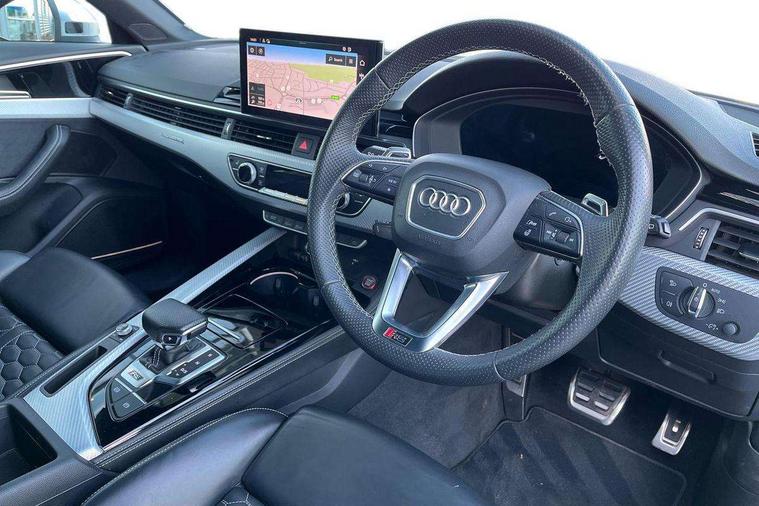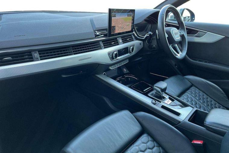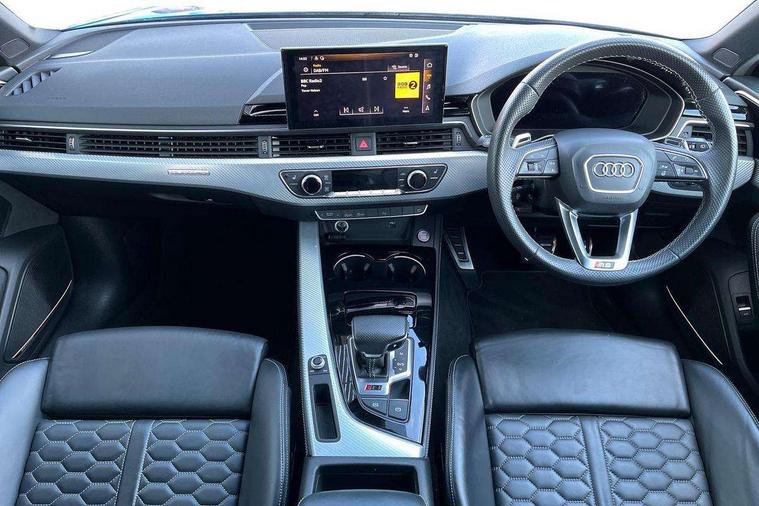 7" Colour driver information system, Amazon alexa Integration, Audi connect safety and service (e-call), Audi drive select, Audi parking system plus with front and rear sensors, Audi side assist, Audi smartphone interface, Audi virtual cockpit with RS specific display, Automatic start-stop system with coasting functionality and efficiency programme, Bluetooth interface, Electromechanical power steering, Email, calendar and text messages displayed via MMI, MMI Navigation plus with MMI touch includes 10.1" high resolution colour MMI display, 3D map, Power opening/closing tailgate, Rear view camera, Service interval indicator, Voice control system, 58 Litre fuel tank, Quattro sports differential, 2 USB charging ports, Audi sound system, DAB digital radio module, 3rd brake light, Acoustic windscreen, Audi matrix LED headlights with LED rear lights + dynamic front and rear indicators, Auto dimming rear view mirror, Automatic headlights + automatic windscreen wipers, Blue tinted glass, Body colour door handles, Electric front windows, Electric rear windows, Electrically folding auto dimming/adjustable/heated door mirrors with memory function, LED side indicators and kerb view function for passenger side, Flared front and rear wheel arches, Front bumper with enlarged air inlets, Front spoiler in matt aluminium look finish, Headlight range control, High beam assistant, High gloss black triangular aperture at rear door, Honeycomb design grille with quattro logo, Lateral air inlets next to front headlights, LED daytime running lights, LED indicators in door mirrors, Matt aluminium door mirrors, Privacy glass with rear acoustic glazing, Rain and light sensors, Rear side wing doors, Rear wiper, Roof rails in aluminium matt look finish, Roof spoiler, RS 4 badges on grille, the front wing panels and rear, RS4 dual branch chrome tailpipes with left and right oval pipes, Side sill extensions in body colour with high gloss black inserts, 3 seat bench in 2nd row, 3 spoke multifunction plus leather steering wheel with heating and RS badging, 40/20/40 split folding rear seats with rear centre armrest, Black cloth headlining, Deluxe 3 zone electronic climate control, Electric load area cover, Electrically adjustable front seats, Fine nappa leather with contrast honey comb stitching + super sports seats with pneumatic massage function, Front centre armrest, Front headrests, Front/rear floor mats, Heated front seats, Height and reach adjustable steering wheel with full size airbag, Illuminated door sill trims with RS4 logo, ISOFIX child seat mounting and top tether, Leather door armrests and knee pad, Luggage compartment carpet, Rear headrests, Retractable load area cover, RS Specific perforated leather gear lever knob with contrast stitching, Single front passenger seat, Stainless steel pedals, Sunvisors with vanity mirrors, LED Interior light pack - RS4, Non Smokers pack, 3 point seatbelts on all rear seats, Adaptive driver and front passenger airbags, Electromechanical parking brake, Electronic stabilisation control including ABS, ASR and EDL, Enhanced braking system, Front head airbags, Front seatbelt pretensioners + load limiters, Front side airbags, Hill hold assist, Manual child lock in rear doors, Multi-Collision braking, Pop-up bonnet for pedestrian protection, Pre sense city, Rear side airbags, Seatbelt monitoring, Traction control, Tyre pressure warning, Variable restraint system, Warning triangle and first aid kit, Anti theft alarm, Anti-theft wheel bolts, Immobiliser, Keyless Go, Remote central locking, Remote control key with RS emblem, Aluminium race inlays, Tool kit, Tyre repair kit,