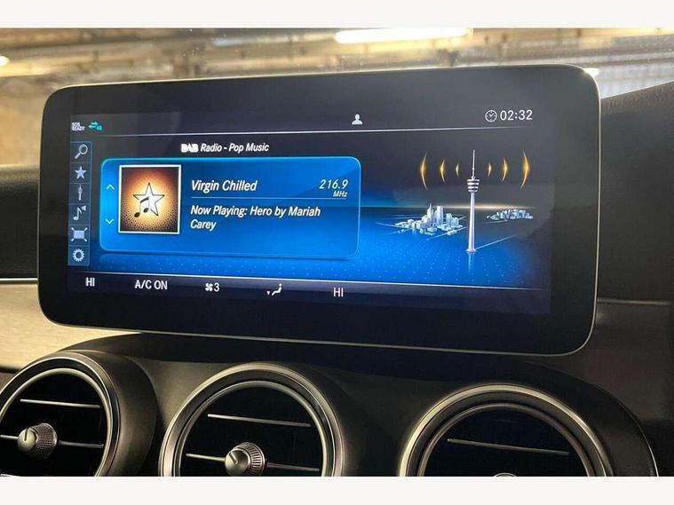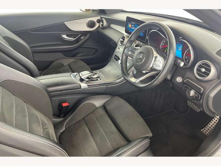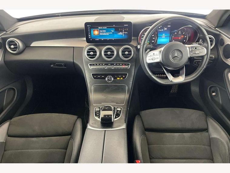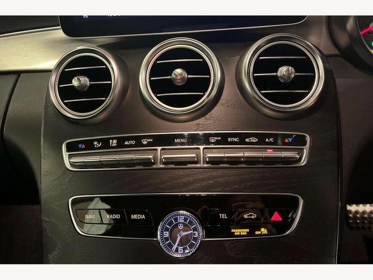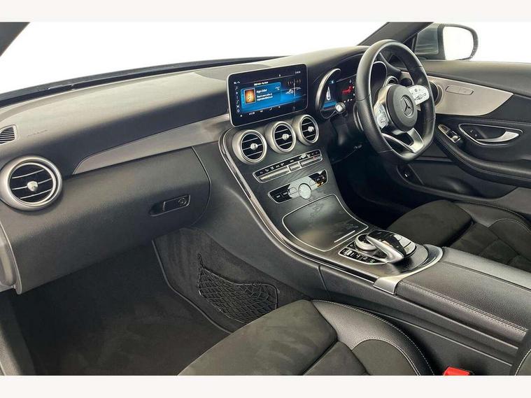 Active park assist with parktronic system, Attention assist, Bluetooth interface for hands free telephone, Collision prevention assist plus, Comand Online HDD Nav with media interface, radio/CD/DVD/MP3, 10.25 screen, linguatronic voice control, DYNAMIC SELECT with a choice of driving modes (ECO, Comfort, Sport, Sport+ and Individual), Mercedes connect me with remote online, Multi function trip computer, Outside temperature gauge, Remote boot release, Reversing camera, Service indicator (ASSYST), Smartphone integration with Apple CarPlay and Android auto, Speed sensitive steering, Stop/start system, Wireless charging, Diesel particulate filter, 2 USB ports, Burmester surround sound system, DAB digital radio module, Mercedes Audio 20 radio/single CD, SD card slot, Steering wheel audio controls, Adaptive brake lights, AMG front, rear apron and side skirts, Auto dimming driver's door mirror, Auto dimming rear view mirror, Body coloured bumpers, Body coloured door mirrors, Chrome grille surround, Chrome pins diamond radiator grille with integrated stars, Door sill plates with "Mercedes-Benz" lettering, Electric adjustable/heated/folding door mirrors, Electric windows one touch open/close, Green tinted glass, LED daytime running lights, LED Indicators, LED tail lights, LED third brake light, Multi beam LED headlights, Radio aerial in side window, Rain sensor windscreen wipers, Side windows surround in polished aluminium, Twin exhaust tailpipes x2, 2 cupholders in front centre console, 2 rear head restraints, 3 spoke flat bottom multi-function leather AMG steering wheel, 40:20:40 split folding rear seats, Ambient lighting, AMG floormats, Artico man-made leather upper dashboard and beltlines with contrast stitching, Auto dual-zone climate control system, Auto Mercedes-Benz child seat recognition sensor, Door courtesy lamps, Electrically adjustable front seats, Front centre armrest with storage compartment, Front footwell illumination, Heated front seats, Height adjustable front seats, Illuminated front/rear door handle recesses, Illuminated glovebox, Isofix rear child seat fastenings, LED reading lights, LED rear reading lights, Sports pedals with stainless steel surfaces and rubber studs, Sports seats with integrated headrests, Steering wheel gearshift paddles, Sunvisors with illuminated vanity mirrors, Seat comfort pack - C Class, Stowage space pack - C Class, 2 rear seatbelts, 3 point automatic seatbelts, ABS, Active bonnet, Adaptive brake system, Black seat belts, Brake calipers with Mercedes-Benz lettering + perforated brake discs, Crash sensor, Drivers knee airbag, Drivers pelvis airbag, Dual stage driver/passenger airbags, Electronic parking brake, Electronic stability control, Front and rear window airbags, Front seatbelt pretensioners, Front side airbags, Hill hold control, Hill start assist, Tyre pressure monitoring system, Warning triangle and first aid kit, Alarm system/interior protection/immobiliser, Automatic door locking, Chrome surround in electric key, Remote central locking, Tow away protection,