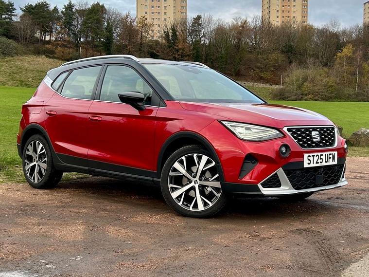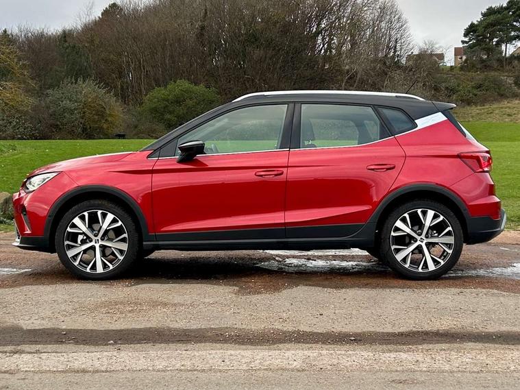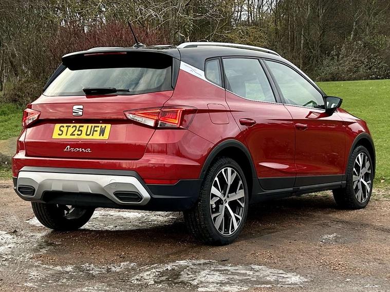 'Lights On' Reminder warning buzzer, 10" Digital cockpit, Digital clock, E-call, Electric speed sensitive power steering, Front parking sensor, Full link smartphone integration with mirror link, wireless apple carplay, Google android auto + USB Type C cable for apple and android devices, Lane keeping system, Low fuel warning light, Outside temperature display, Park assist system, Rear view camera, RPM counter, Trip computer, Wireless phone charger, 6 speakers, 9.2" colour touchscreen with navigation system, voice control and USB port (type c), Bluetooth interface for hands free and audio streaming, DAB digital radio and AM/FM radio, Steering wheel mounted audio controls, Anti theft roof antenna, Auto dimming interior rear view mirror, Automatic activation of hazard warning lights, Body coloured bumpers, Body coloured door handle inserts, Chrome roof rails and window surrounds, Electric front/rear windows, Electrically adjustable, heated and folding door mirrors, Front fog lights with cornering function and rear fog light, FULL LED automatic headlights with dynamic headlight range control, coming and leaving home, LED daytime running lights, Hidden exhaust pipe, LED rear tail lights and licence plate lights, Protective side mouldings, Rain sensing wipers, Rear side wing doors, Rear spoiler, Rear window wash/wipe, Roof colour door mirrors, Third brake light, Visible VIN plate, 2 cupholders, 3 seat bench in 2nd row, 60/40 split folding rear seat, Aircare filter, Black interior roof, Double boot floor, Driver sunvisor with covered mirror + card holder, Dual zone climate control, Front comfort seats, Front courtesy light with front reading lights, Front seat back storage pockets, Gear shift indicator, Heated front seats, Height adjustable front seats, Height/reach adjustable steering column, Illuminated air vent surrounds, Illuminated boot, Instrument lighting with brightness control, Interior ambient lighting, Interior light in footwell, central console and door panel, ISOFIX points in outer rear seats with top tether anchorage points, Leather steering wheel/gear knob/handbrake, Microsuede cloth upholstery, Passenger sunvisor with vanity mirror, Potentiometer, Single front passenger seat, Storage net on centre console, Two front and three rear height adjustable headrests, Interior chrome pack - Arona, Safe and driving pack (S) - Arona, Safety and driving pack (M) - Arona, Storage pack - Arona, 3 point seatbelts on all rear seats, ABS, Active front headrests, Child locks on rear doors, Driver and front passenger airbags with front passenger airbag de activation, front side and curtain airbags, Emergency Brake Assist (EBA) and front assist, Front and rear seatbelt reminder, Hill hold control, Multi-Collision braking, Tiredness recognition system, Traction control, Tyre pressure monitoring system, Alarm with back up horn with tow away protection, Deadlock, Electronic engine immobiliser, KESSY Keyless entry and go, Locking wheel bolts, Remote central locking, Titan black dashboard, 18" Performance Nuclear grey alloy wheels,