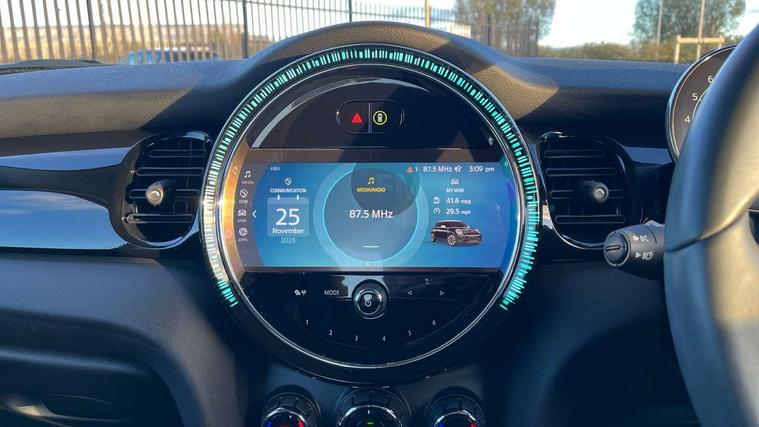 Automatic start/stop function with brake energy recuperation, Compatible mobile phone bluetooth with audio streaming, Electro-mechanical speed dependant steering assistance, Instrument cluster, MINI Driving Modes - centre toggle switch to control driving setting (sport, mid and green), Mini E-call, MINI TeleServices, On board computer, Service interval indicator, Double Vanos system, Fully variable valve control, Gear change indicator display, High precision injection, Performance Control, Steptronic transmission with double clutch, 6.5" touchscreen with LED ring, FM tuner and DAB digital radio, Automatic headlight activation switch, Bonnet scoop, Chrome border honeycomb structure radiator grille with S badge, Chrome plated fuel cap, Dynamic brake lights, Electric front+rear windows, Heated rear window, Heated windscreen washer jets, LED headlight with closed ring and daytime driving lights, Metal door sill strips with Cooper S imprint, Model logo Cooper S on right of tailgate, Rain sensor window wipers, Rear fog lights, Rear LED lights with union jack design, Rear window wiper, Side scuttle panel with integrated indicator, Sun/heat protection glass, Two central exhaust tailpipes with chrome finisher, White indicator lenses, 12V Accessory socket in centre console, 4 lashing eyes in luggage compartment, 60/40 split folding rear seat, Carbon Black colour line, knee roll and door armrests, Chrome interior highlights, Colour line - Carbon black, Cupholders, Front and rear head restraints, Front and rear isofix with front passenger airbag deactivation, Glove compartment, Height and length steering column adjustment, Interior lighting with 12 basic colours selectable via toggle switch in roof, Leather gearshift lever and handbrake gaiters, LED reading lights, vanity mirror lights, front foot well light and spotlight on front seats, Manual air conditioning, Mechanical seat adjustment, driver seat height adjust, forward/back and front seats backrest, Mini logo projection on floor from drivers exterior mirror, Multifunction steering wheel, Satellite grey headlining, Storage compartments in doors, Storage pocket on back of front seats, Sunvisors with vanity mirrors, 3 point seatbelts on all four seats, 6 Airbags - front, side, head and seat belt tensioners, Anti-lock braking system (ABS), DSC - Dynamic Stability Control, Front and rear disc brakes, Hill start assist, Two tone horn, Tyre pressure monitoring system, Alarm system with tilt sensor, monitoring doors, bonnet interior and tailgate, Electronic vehicle immobiliser, Start/stop toggle with keyless go, Tool kit, Tyre repair kit,
