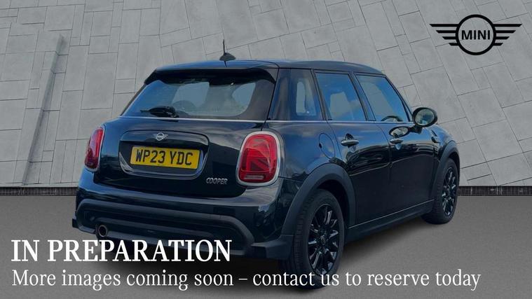 Apple CarPlay, Automatic start/stop function with brake energy recuperation, Compatible mobile phone bluetooth with audio streaming, Electro-mechanical speed dependant steering assistance, Flexible car sharing preparation, Mini E-call, MINI TeleServices, On board computer, Service interval indicator, Double Vanos system, Fully variable valve control, Gear change indicator display, High precision injection, Performance Control, Steptronic transmission with double clutch, 8.8" touchscreen with LED ring, FM tuner and DAB digital radio, 3rd brake light, Automatic headlight activation switch, Body colour fuel filler cap, Chrome border high gloss black slats radiator grille, Dynamic brake lights, Electric front+rear windows, Exhaust tailpipe on left with chrome finisher, Heated rear window, Heated windscreen washer jets, Metal door sill strips with MINI imprint, Model logo Cooper on right of tailgate, Rain sensor window wipers, Rear fog lights, Rear LED lights with union jack design, Rear side wing doors, Rear window wiper, Side scuttle panel with integrated indicator, Sun/heat protection glass, White indicator lenses, 12V Accessory socket in centre console, 3 seat bench in 2nd row, 4 lashing eyes in luggage compartment, 60/40 split folding rear seat, Ambient lighting, Carbon black colour line - Knee roll and door armrest, Chrome interior highlights, Cupholders, Front and rear head restraints, Front and rear isofix with front passenger airbag deactivation, Front and rear velour floor mats, Glove compartment, Height and length steering column adjustment, Interior lighting with 12 different colours across the dashboard, underneath door bezel with illuminated laser-engraved design on central display, Leatherette gearshift lever and handbrake gaiters, LED reading lights, vanity mirror lights, front foot well light and spotlight on front seats, Mechanical seat adjustment - forward/back & backrest for front seats and driver seat height adjust, Multifunction steering wheel, Satellite grey headlining including grab handles and clothes hooks, Single front passenger seat, Sport leather steering wheel with speed limiter and audio/communication controls, Storage compartments in doors, Sunvisors with vanity mirrors, 3 point seatbelts on all five seats, 6 Airbags - front, side, head and seat belt tensioners, Anti-lock braking system (ABS), Child locks on rear doors, DSC - Dynamic Stability Control, Front and rear disc brakes, Hill start assist, Single tone fanfare horn, Tyre pressure monitoring system, Alarm system with tilt sensor, monitoring doors, bonnet interior and tailgate, Electronic vehicle immobiliser, Start/stop toggle with keyless go, Piano black interior trim, Tool kit, Tyre repair kit,