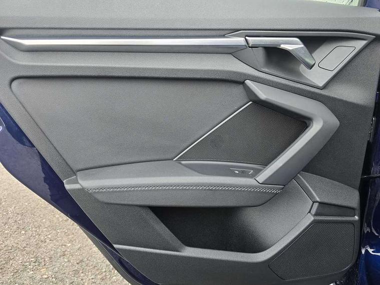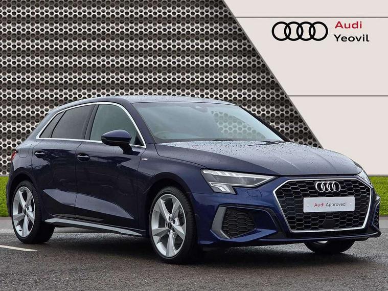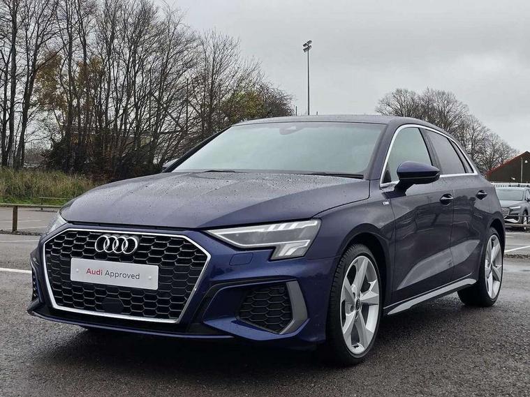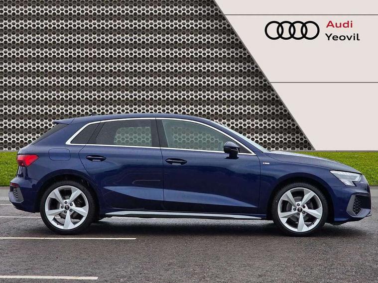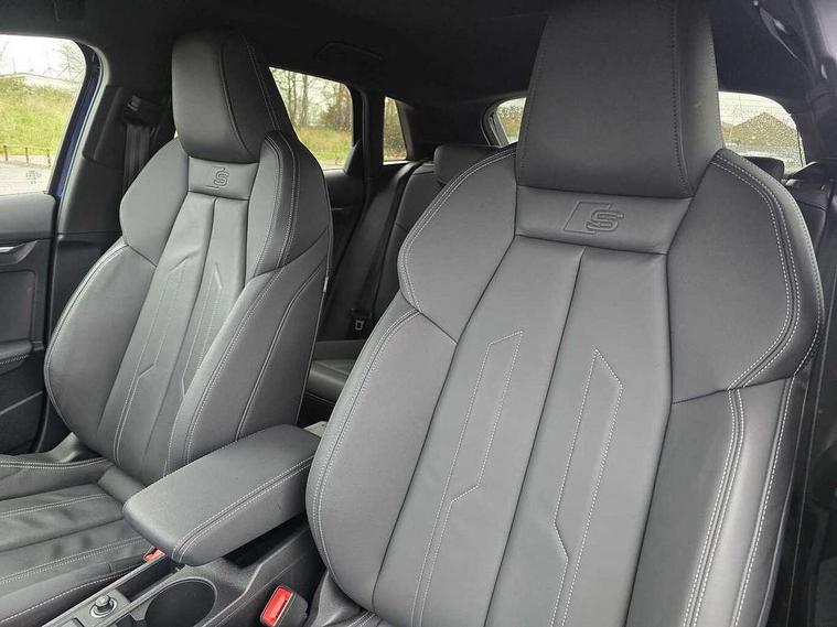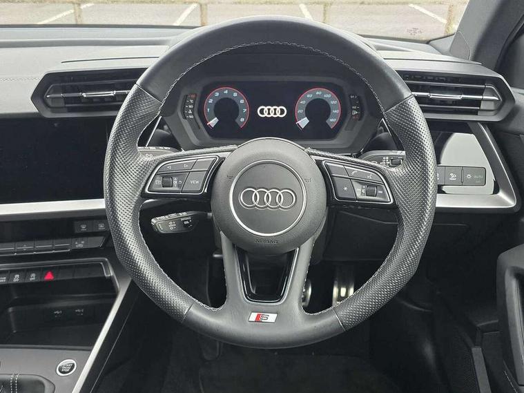Audi drive select (Auto, Comfort, Dynamic and Individual), Audi smartphone interface, Audi Virtual Cockpit - 10.25" digital and colour instrument cluster, Automatic start/stop system with recuperation, Bluetooth interface, Camera based traffic sign recognition, Collision avoidance assistant, Cruise control, e-Call (emergency call), Electromechanical power speed sensitive steering, Lane departure warning system, MMI Navigation Plus with high resolution 10.1" colour touch screen display, Rear parking sensors, Service indicator, Trip computer, Voice control system with natural language interaction, Sports suspension, 2xUSB-C connection with data and charging functions, 6 passive loudspeakers, DAB Digital radio, 3rd brake light, Acoustic glass windscreen, Aluminium window trim, Auto dimming frameless rear view mirror, Body colour exterior mirrors, Electrically adjustable/heated/folding/auto dimming door mirrors with integrated LED indications + kerb view function for passenger side, Front electric windows, Illuminated door sills with aluminium inserts at the front with S logo, LED daytime running lights, LED headlights with LED rear lights and dynamic rear indicators, Light and rain sensors, Privacy glass - dark tinted rear window, rear door and side windows, Rear electric windows, Rear side air outlets in grained matt black, Rear side wing doors, Rear wiper, S line bumpers, S roof spoiler, 12V socket and storage compartment in front centre console, 3 seat bench in 2nd row, 3 spoke leather multifunction steering wheel, 4 way electrically adjustable lumbar support for driver and front passenger, 60/40 split folding rear seat bench, Black cloth headlining, Dual zone electronic climate control, Front and rear centre armrest in artificial leather, Front and rear headrests, Front/rear floor mats, Height and reach adjustable steering wheel, Interior lighting - glove compartment light and right hand side, Luggage compartment floor covering, Manual boot compartment lid, Manually adjustable front seats, Seat side bolsters, Single front passenger seat, Stainless steel pedals and front footrest in black, Twin leather upholstery with front sports seats S embossed logo, Aluminium interior elements pack - A3 Sportback, LED interior lighting pack - A3 Sportback, S line styling pack - A3 Sportback, 3x3 point rear seat belts, Driver and front passenger airbag with passenger airbag deactivation, Electronic Stabilisation Control (ESC) including ABS, ASR and EDL, First aid kit with warning triangle and 2 safety vests, Front side airbags with head airbags and interaction airbag, Pre-sense front with pedestrian and cyclist detection, Seatbelt monitoring, Tyre pressure loss indicator, Anti theft alarm, Anti-theft wheel bolts, Electronically operated child locks, Immobiliser, Remote control central locking, Dark spectrum aluminium inlays, accent surfaces in the dashboard and centre console in platinum grey silk effect paint finish,