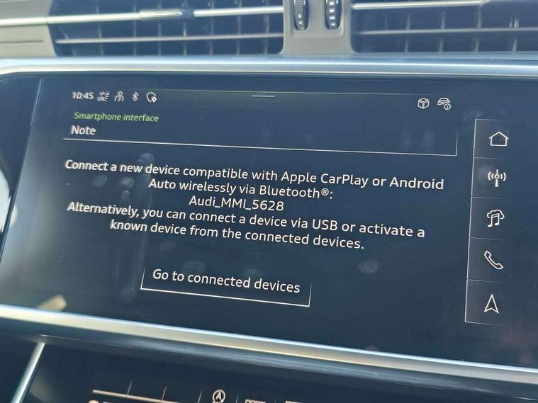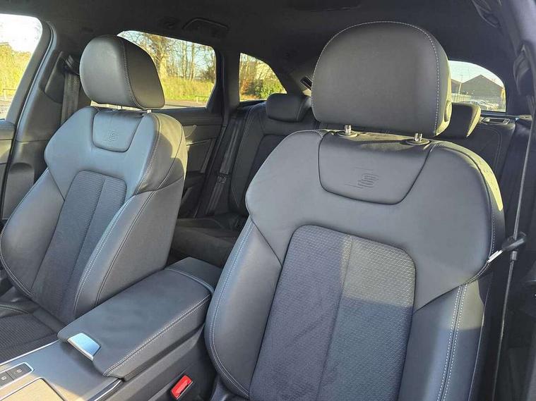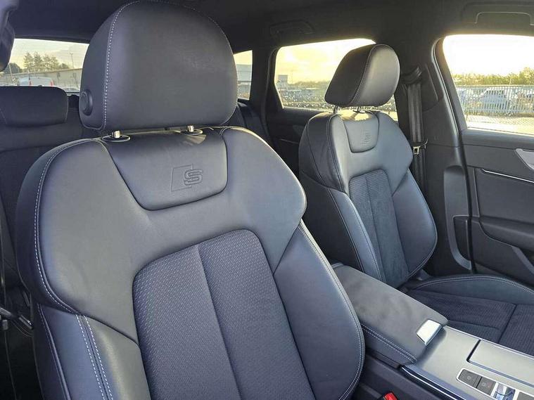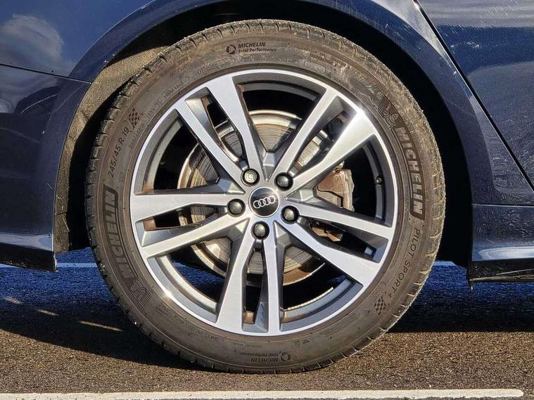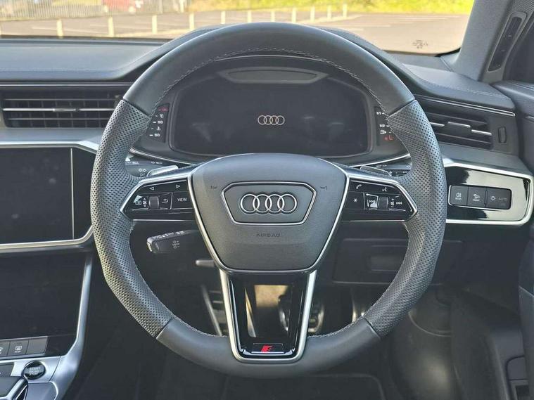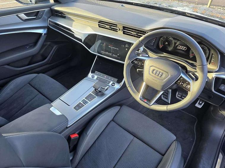 Audi connect safety and service (e-call), Audi connect with Amazon Alexa Integration, Audi drive select, Audi parking system plus - acoustic and visual park assist system for front and rear, Audi virtual cockpit, Automatic start/stop system with coasting functionality, Bluetooth interface, Camera based traffic sign recognition, Lane departure warning system, MMI navigation plus with 10.1" and 8.6" touch screens, Power operated tailgate, Progressive steering, Rear view camera, Service interval indicator, Smartphone interface includes wireless Apple carplay/Android Auto, Voice control system, Sports suspension, Audi front music interface, Audi sound system, Auxiliary input socket, DAB Digital radio, USB connection, Aluminium roof rails, Body colour rear roof spoiler, Body coloured door mirrors, Electric front/rear windows, Electrically adjustable heated and folding + automatically dimming exterior mirrors with memory function, Frameless auto dimming interior rear view mirror, Front intermittent wipers, Heat insulating darkened glass in side and rear windows, Heat insulating glass in windshield, LED rear lights with dynamic indicators, LED signature front daytime running light, LED third brake light, Matrix LED headlights, Matt black rear diffuser with diffuser strip and tailpipes in chrome, Matt black side air intake grille with inlay in matt aluminium, Privacy glass, Radiator grille in anthracite black matt, single frame in chrome and horizontal struts in matt aluminium silver, Rain and light sensors, Rear side wing doors, Rear wiper, 2 zone deluxe electronic climate control, 3 spoke high multi-function perforated leather steering wheel with contrast stitching and shift paddles, 40/20/40 split folding 3 rear seat bench in 3 parts with rear centre armrest, Audi phone box light, Black cloth headlining, Electrically adjustable front seats including seat height, fore/aft position, backrest angle and 4-way lumbar with memory for driver's seat, Front and rear floor mats, Front centre armrest, Front head restraints, Heated front seats, Height/reach adjust steering wheel, Illuminated door sill trims with S logo, Illuminated sun visors with vanity mirrors, ISOFIX child seat mounting and Top Tether with front passenger airbag deactivation, Leather gear knob, Luggage compartment system, Rear headrests, Single front passenger seat, Stainless steel pedals and foot rest, Tool kit and car jack, LED Interior Ambient Lighting Pack - A6, Non smoking pack - A6, S line exterior style pack - A6, 3 point seatbelts on all seats, Airbags - Front side, front and rear including head, Audi pre-sense front, EBD - Electronic brakeforce distribution, Electromechanical parking brake, Electronic Stability Control (ESC) including ABS, ASR and EDL, Extended pedestrian protection measures, Manual child proof rear door locks, Seatbelt monitoring, Tyre pressure warning light, Warning triangle and first aid kit, Anti theft alarm with tow away protection, Anti-theft wheel bolts and wheel loosening detection, Immobiliser, Keyless Go, Remote central locking, Matt brushed aluminium inlays,