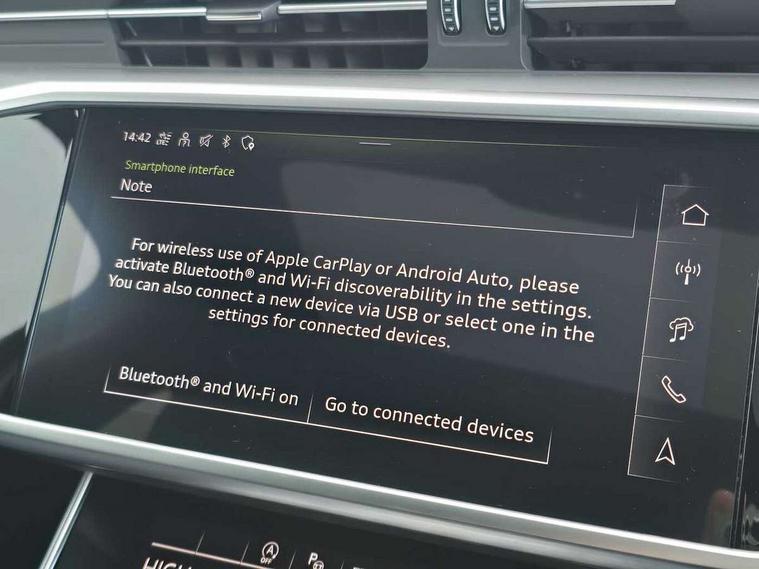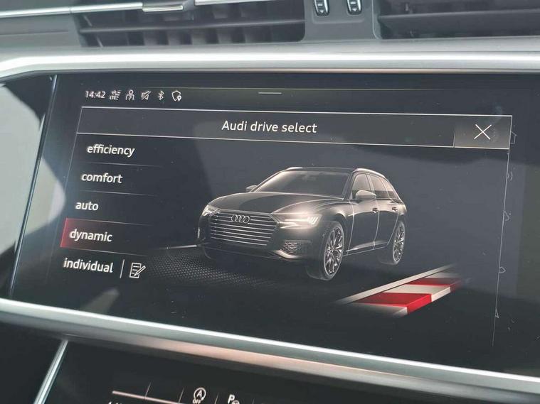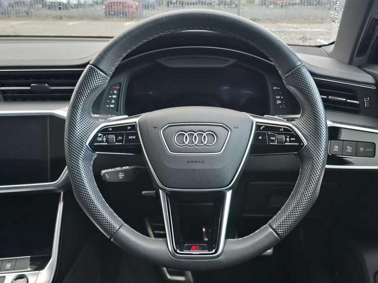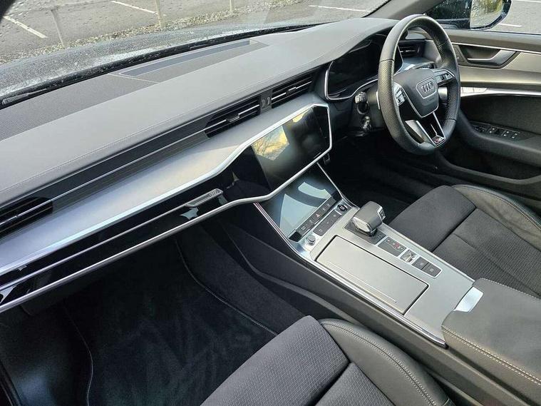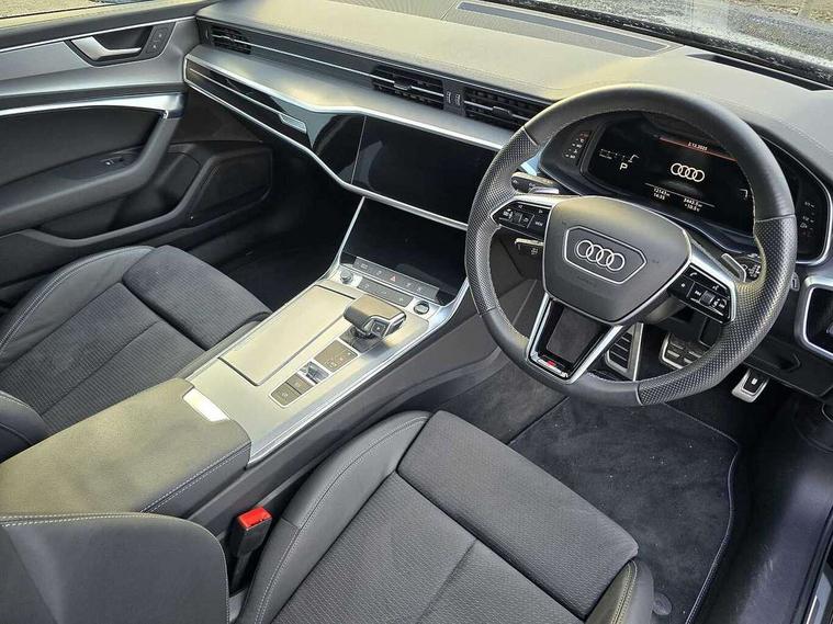 Audi connect safety and service (e-call), Audi connect with Amazon Alexa Integration, Audi drive select, Audi parking system plus - acoustic and visual park assist system for front and rear, Audi virtual cockpit, Automatic start/stop system with coasting functionality, Bluetooth interface, Camera based traffic sign recognition, Lane departure warning system, MMI navigation plus with 10.1" and 8.6" touch screens, Power operated tailgate, Progressive steering, Rear view camera, Service interval indicator, Smartphone interface includes wireless Apple carplay/Android Auto, Voice control system, Sports suspension, Audi front music interface, Audi sound system, Auxiliary input socket, DAB Digital radio, USB connection, Aluminium roof rails, Body colour rear roof spoiler, Body coloured door mirrors, Electric front/rear windows, Electrically adjustable heated and folding + automatically dimming exterior mirrors with memory function, Frameless auto dimming interior rear view mirror, Front intermittent wipers, Heat insulating darkened glass in side and rear windows, Heat insulating glass in windshield, LED rear lights with dynamic indicators, LED signature front daytime running light, LED third brake light, Matrix LED headlights, Matt black rear diffuser with diffuser strip and tailpipes in chrome, Matt black side air intake grille with inlay in matt aluminium, Privacy glass, Radiator grille in anthracite black matt, single frame in chrome and horizontal struts in matt aluminium silver, Rain and light sensors, Rear side wing doors, Rear wiper, 2 zone deluxe electronic climate control, 3 spoke high multi-function perforated leather steering wheel with contrast stitching and shift paddles, 40/20/40 split folding 3 rear seat bench in 3 parts with rear centre armrest, Audi phone box light, Black cloth headlining, Electrically adjustable front seats including seat height, fore/aft position, backrest angle and 4-way lumbar with memory for driver's seat, Front and rear floor mats, Front centre armrest, Front head restraints, Heated front seats, Height/reach adjust steering wheel, Illuminated door sill trims with S logo, Illuminated sun visors with vanity mirrors, Leather gear knob, Luggage compartment system, Rear headrests, Single front passenger seat, Stainless steel pedals and foot rest, Tool kit and car jack, LED Interior Ambient Lighting Pack - A6, Non smoking pack - A6, S line exterior style pack - A6, 3 point seatbelts on all seats, Airbags - Front side, front and rear including head, Audi pre-sense front, EBD - Electronic brakeforce distribution, Electromechanical parking brake, Electronic Stability Control (ESC) including ABS, ASR and EDL, Extended pedestrian protection measures, ISOFIX child seat mounting for front passenger seat and ISOFIX child seat mounting with Top Tether for outer rear seats, Manual child proof rear door locks, Seatbelt monitoring, Tyre pressure warning light, Warning triangle and first aid kit, Anti theft alarm with tow away protection, Anti-theft wheel bolts and wheel loosening detection, Immobiliser, Keyless Go, Remote central locking, Matt brushed aluminium inlays,