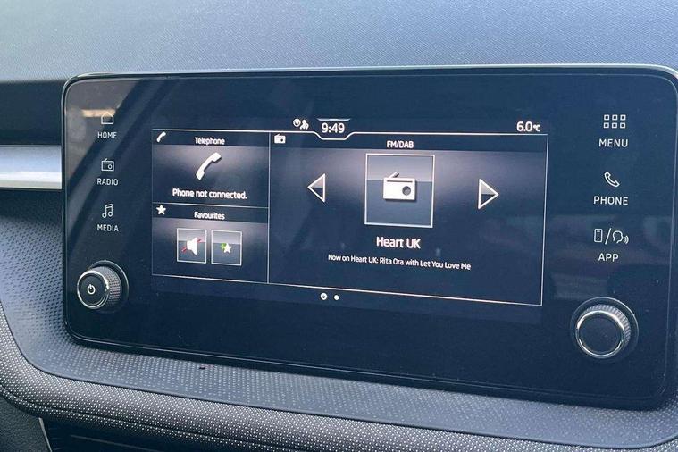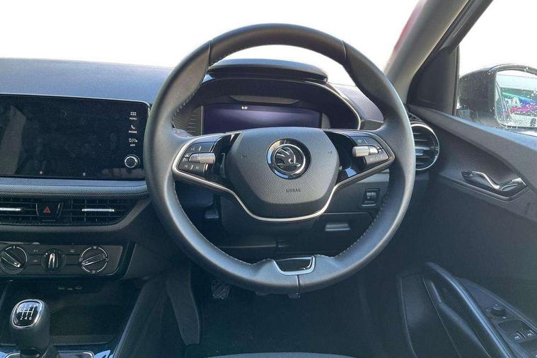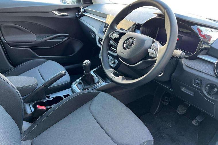 Advanced driver attention and drowsiness monitor, Bluetooth connection, Electromechanical power steering, Exterior temperature gauge, Service interval indicator, Traffic sign recognition, Virtual cockpit with 10.25" colour display, Wireless SmartLink for Apple CarPlay and Android Auto, 6 Speakers (4 in front and 2 in rear), Auxiliary socket for external MP3 player, DAB digital radio reception, Body coloured bumpers, Dimming rear view mirror with black frame, Door mirror integrated indicators, Front and rear electric windows, Front window wiper intermittent control, Headlight range control - Automatic, Ice scraper in fuel cap, LED daytime running lights with coming and leaving home feature, LED rear lights, Privacy glass, Rear LED fog light, Rear side wing doors, Rear window wiper with washing nozzles, Roof mounted spoiler, SKODA tailgate lettering in chrome, Third brake light, 2 reading lights in front and 2 reading lights in rear, 3 rear headrests, Backrest split and folding, Central console with removable cup holder and storage box, Chrome handbrake release button, Fabric upholstery, Front centre armrest, Gearshift knob/handle in leather, Grain satin black interior door handles, Hand brake lever handle in leather, Height adjustable front headrests, Height adjustable front seats, Height adjustable steering wheel, ISOFIX and TopTether anchorage points to the outer rear seats, ISOFIX and TopTether on the front passenger seat, Luggage compartment lighting, Manually adjustable lumbar support in front seats, Pollen filter, Rear seat bench unsplit, Single front passenger seat, Storm grey headlining, Sun visors with mirror and airbag label on passenger side, Textile floor mats, Ticket holder, Umbrella in drivers door, 3-point height adjustable front seats belts with pretensioner and force limiter, Automatic warning lights in case of crash, Driver and passengers airbag with switch off function, e-Call+, ESC including ABS, MSR, ASR, EDS, HBA and XDS, Front and rear seat belt warning, FRONT ASSIST (AEB City and AEB Inter Urban), Front side airbags, Head airbags, One tone horn, Pedestrian protection, Three rear 3-points safety seat belts with pretensioner and force limiter including stop function for outer rear seat belts, Tyre pressure monitoring system, Anti-theft alarm system including immobiliser, interior monitoring, backup horn, and towing protection, Central locking with radio remote control, interior controls, SAFE function and 2 foldable keys, Colour Edition air vents, Grain satin black central console cover, Metallic grey upper decorative trim, Satin black door and side trim panel in front, Textile Kota grey lower decorative inserts, Anti-theft wheel bolts protection, Super-low rolling resistance tyres,