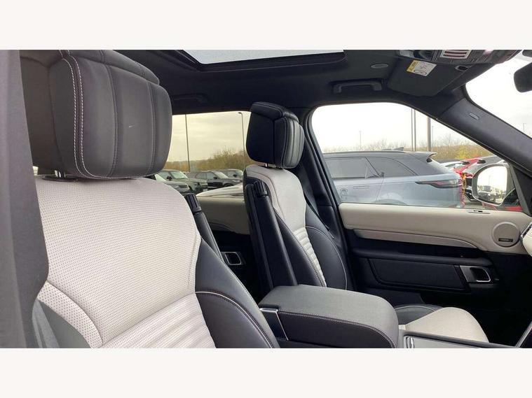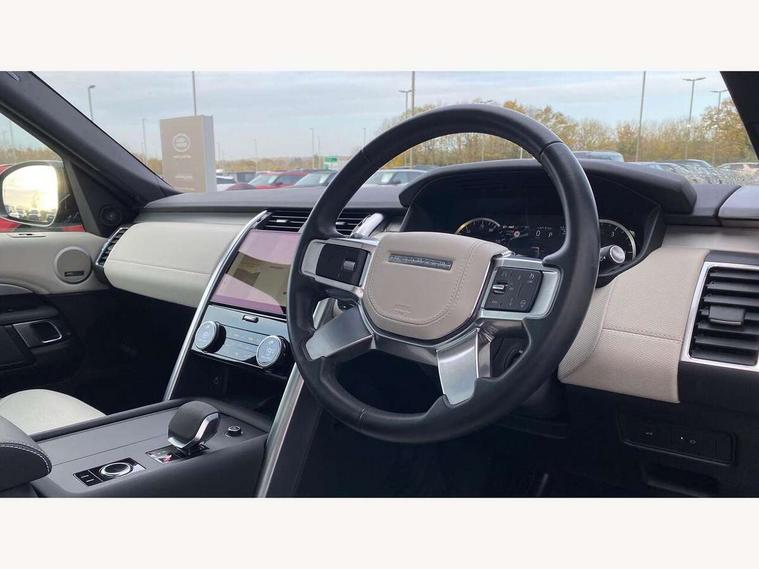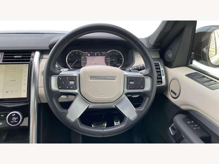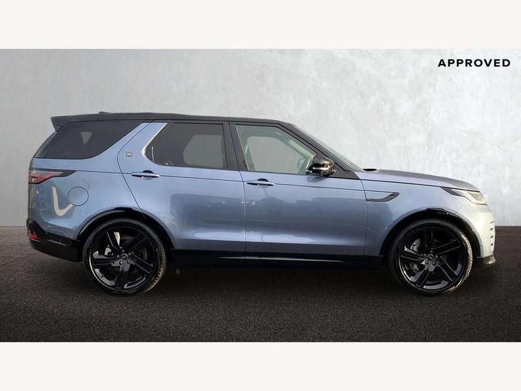 11.4" touchscreen, 3D surround camera, Adaptive cruise control, Android Auto, Apple car play, Blind spot assist, Driver condition monitor, Electric power assisted steering (EPAS), Emergency services call system, Front and rear parking aid, Lane keep assist, Power inner tailgate, Push button start, Rear collision monitor, Rear traffic monitor, Remote, Remote boot release, Service interval indicator, Speed proportional steering, Sportshift selector, Stop/start system, Traffic sign recognition with adaptive speed limiter, Trip computer, Wade Sensing, Adaptive dynamics, Dynamic stability control, Electronic air suspension, Front axle open differential, Digital Audio Broadcast radio-DAB, Dynamic volume control, Meridian surround sound system - 14 speaker + subwoofer, 18 channel amplifier, 700W, Pivi pro connected, USB/aux input socket, Acoustic laminated windscreen, Animated directional indicators, Auto dimming interior rear view mirror, Automatic headlight levelling, Automatic headlights, Body colour bumpers, Body colour door handles, Centre high mounted stop light, D300 badge, Electric heated/power fold memory door mirrors with approach lights and auto dimming driver side, Electric windows with one touch open/close and anti-trap, Heated rear window, Heated windscreen, LED darkend tail lights, Matrix LED headlights with signature DRL, Metal treadplates with R-Dynamic branding, Narvik black Discovery script, Privacy glass, Puddle lights, Rain sensing windscreen wipers, Rear fog lights, Rear side wing doors, Rear wash/wipe, Trailer stability assist, Variable intermittent wiper, 12V power sockets, 12V USB charging socket in loadspace, 2 seat bench in 3rd row, 3 seat bench in 2nd row, Central hinged twin lidded storage, Ebony morzine headlining, Electric adjustable steering column, First and second row door bins, Footwell lights, Front and rear 12V with front USB, Front passenger seat isofix location point, In-facia storage, Isofix child seat preparation for front passenger seat, Loadspace cover, Loadspace Hook, Loadspace light, Lockable glovebox, Lower centre console storage, Luggage tie downs in loadspace, Multi function steering wheel, Overhead lighting console, Premium cabin lighting, Premium carpet mats, Rear ISOFIX, Shopping bag hook, Single front passenger seat, Storage glovebox, Sunvisors with illuminated vanity mirrors, Third row storage, Twin front cupholders with cover, USB with 12V socket in centre console, Online pack with data plan - Discovery, R-Dynamic black exterior pack - Discovery, 3x3 point rear seatbelts, Anti-lock braking system (ABS), Brake pre-fill technology, Cornering brake control, Curtain airbags, Customer configurable autolock, Driver and passenger airbags, EBD - Electronic brakeforce distribution, Electronic traction control, Emergency brake assist, Emergency braking, ESP, Front side airbags, Gradient acceleration control, Hill descent control, Hill launch assist, Power operated child locks, Rear airbags, Roll stability control, Seat belt reminder, Torque vectoring brake, Tyre pressure monitoring system, Immobiliser, Intrusion sensor, Keyless entry, Locking wheel nuts, Remote central locking, All terrain tyres,