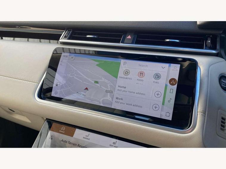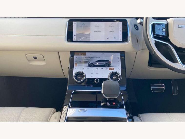 10" touch screen, Adaptive cruise control with steering assist, Android Auto, Apple car play, Blind spot assist, Bluetooth connectivity, Brake pad wear indicator warning light, Driver condition monitor, eCall emergency call system, InControl remote, Interactive Driver display instrument cluster, Land Rover InControl apps, Lane keep assist, Pivi pro connected includes upgraded infotainment, smart settings, connected navigation pro, Nuance speech licence, Push button start, Rear collision monitor, Rear traffic monitor, Service indicator, Speed proportional electronic power assisted steering (EPAS), Traffic sign recognition with adaptive speed limiter, Trip computer, Voice control system, 8 speed automatic transmission, Adaptive dynamics, All terrain progress control, Electronic air suspension, Open differential with torque vectoring by braking, Single speed transfer box, Digital Audio Broadcast radio-DAB, Steering wheel mounted controls, Acoustic laminated windscreen, Adaptive front lighting system, Auto dimming interior rear view mirror, Automatic headlamp levelling, Automatic headlights, Body coloured bumpers, Body coloured roof, Boot protection plate, Electric heated/power fold door mirrors with approach lights and auto dimming driver side, Electric windows with one touch open/close and anti trap, Flush deployable exterior door handles, Follow me home headlights, Heated rear window with timer, Heated windscreen, HSE badge, LED 3rd brake light, Metal load space scuff plates, Rain sensor windscreen wipers, Rear fog lights, Rear side wing doors, Rear wash/wipe, Tailgate/boot lid spoiler, Trailer stability assist, Velar and R-dynamic badge, 3 seat bench in 2nd row, Ambient lighting, Bright metal pedals, Driver/passenger sunvisors with illuminated vanity mirrors, Electric adjustable steering column, Isofix system on outer rear seats, Loadspace cover, Overhead lighting console, Overhead stowage for sunglasses, Passive front headrests, Rear air vents, Rear centre headrest, Satin chrome gearshift paddles, Single front passenger seat, Twin front cupholders, Twin sliding front centre armrest, Online pack with data plan - Velar, 380mm front brakes and 325mm rear brakes, 3x3 point rear seatbelts, Anti-lock braking system (ABS), Cornering brake control, Curtain airbags, Customer configurable autolock, Door side intrusion beams, Driver airbag, DSC - Dynamic Stability Control, Electronic brake force distribution, Electronic parking brake, Electronic traction control, Emergency brake assist, Emergency braking, Front and rear seatbelt reminder, Hill descent control, Hill launch assist, Low traction launch, Passenger airbag, Power operated child locks, Rear airbags, Roll stability control, Side airbags, Tyre pressure monitoring system, Unpainted brake calipers, Global lock and unlock switch on driver door, Immobiliser, Intrusion sensor, Keyless entry, Lock only switch on front passenger door, Locking wheel nuts, Perimetric alarm, Remote central locking,