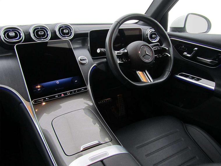 11.9" high resolution multimedia colour display, 12.3" Digital individually configurable instrument display, Acoustic presence indicator, Active lane keeping assist, Attention assist, Blind spot assist, Bluetooth interface for hands free telephone, Collision prevention assist plus, Cruise control with speedtronic variable speed limiter, Dashcam - front camera for video recording, Direct steer speed sensitive steering, DYNAMIC SELECT with a choice of driving modes (ECO, Comfort, Sport, Sport+ and Individual), eCall emergency call system, ECO start/stop function, Fingerprint scanner, Fluorescent jacket for driver, Hard disc navigation, Instrument display in miles with English lettering, MBUX augmented reality for navigation, MBUX navigation premium, MBUX voice control activated by keywords "Hey Mercedes", Mercedes me connect, Outside temperature display, Remote boot release, Remote services, Road sign recognition system, Service indicator (ASSYST), Smartphone integration, Status display for rear seat belts in instrument cluster, Traffic sign assist, Trip computer, Wireless charging, 48V Mild hybrid technology, 4MATIC permanent four wheel drive, 62 litre fuel tank, 9G TRONIC plus automatic transmission, Diesel particulate filter, Sport suspension, DAB digital radio tuner, MBUX extended functions, Mercedes benz sound system, Pre installation for Mercedes Benz Link, Adaptive brake lights, Adaptive high beam assist plus, Aluminium look running boards with rubber studs, Aluminium roof rails, AMG bodystyling front apron, rear apron and side skirts, AMG Line exterior, Auto headlights, Body colour bumpers, Body colour door mirrors, Digital light LED headlights, Electrically adjustable door mirrors, Front and rear electric windows, Headlight washers, Heat insulating dark tinted glass, Heated rear window, High level LED brake light, Integrated LED daytime running lights, LED indicator lights, LED rear fog lights, LED tail lamp, Motor way mode function and locator lighting, Noise acoustic glass, Radiator grille with Mercedes Benz pattern and integreated Mercedes star and louvre in dark grey matt with chrome inlay and black frame, Rain sensor windscreen wipers, Range adjustable headlights, Rear side wing doors, Rear wiper, Transparent Bonnet, Two chrome plated tailpipe trim elements, Variable front intermittent wipers, Welcome and follow-me home light functionality, Wider wheel arch for AMG wheels, 3 seat bench in 2nd row, 40:20:40 split folding rear seats, Ambient lighting premium, AMG line interior, Artico man-made leather upholstery, Audio and onboard settings control on multifunction steering wheel, Automatic child seat recognition sensor, Black fabric roof lining, Black floor mats with AMG lettering, Double cup holder in centre console, Easy-pack removable load compartment cover, Electrically height/reach adjustable steering column, Front centre armrest with stowage compartment, Front head restraints, Galvanised steering wheel gearshift paddles, Heated front seats, Illuminated door sill panels with Mercedes Benz lettering, Illuminated glove compartment, Instrument panel and beltlines in ARTICO manmade leather in nappa look, Multifunction sports steering wheel in nappa leather, Rear centre headrest, Rear head restraints, Rear top tether child seat ISOFIX attachment, Single front passenger seat, Sports pedals with stainless steel surfaces and rubber studs, Sports seats, Sun visors, THERMATIC 2 zone automatic climate control, Anti theft protection package - GLC, Boot comfort package - GLC, Exterior chrome package - GLC, Interior chrome package - GLC, Interior lighting pack - GLC, Keyless-Go comfort package - GLC, Memory pack - GLC, Mirror pack - GLC, Parking package with 360 degree camera - GLC, Seat comfort package - GLC, Stowage space package - GLC, USB Plus Pack - GLC, 3 rear 3 point seatbelts, Active braking assist, Anti-lock braking system (ABS), ASR traction control, Automatic front passenger airbag deactivation, Black seat belts, Brake calipers with Mercedes-Benz lettering + perforated brake discs, Braking system with larger brake discs on the front axle, Child proof door locks, Dual-stage airbags - driver and front passenger, driver knee bag and window bags for driver, front passenger and rear passengers, Electronic parking brake, Electronic stability programme (ESP) with curve dynamic assist and cross wind assist, Front and rear seatbelt reminder, Front passenger seat occupancy sensor, Front seatbelt pretensioners, Hill start assist, Tyre pressure monitoring system, Warning triangle and first aid kit, Automatic door locking, Guard 360 degree vehicle protection plus, Interior protection/immobiliser, Remote central locking, Centre console in metal structure finish, Metal structure trim, 20" AMG 5 spoke aerodynamically optimised light alloy wheels in painted black with high sheen finish, Summer tyres, TIREFIT with tyre inflation compressor,