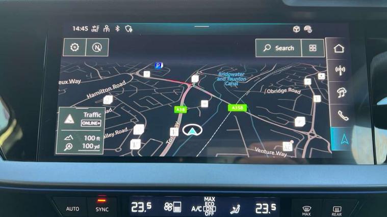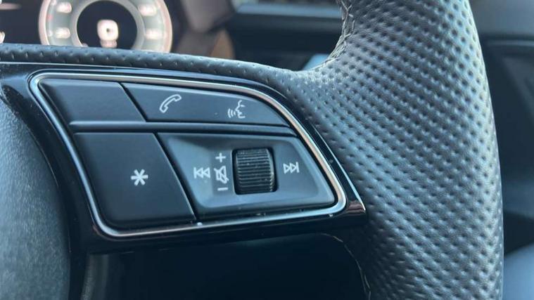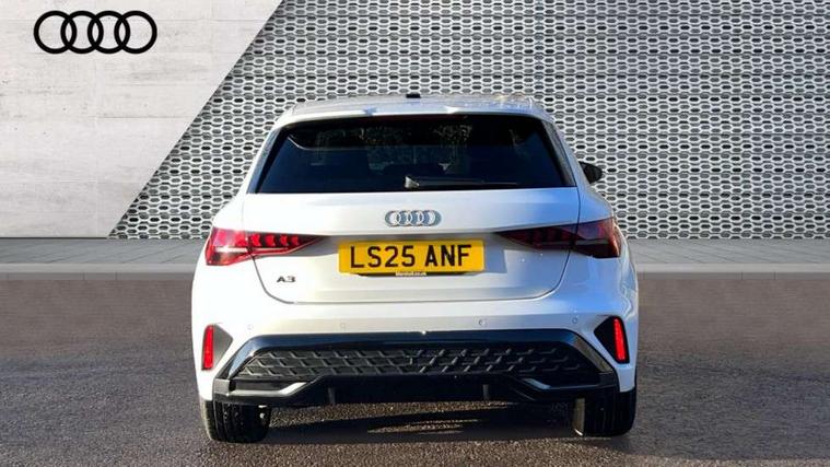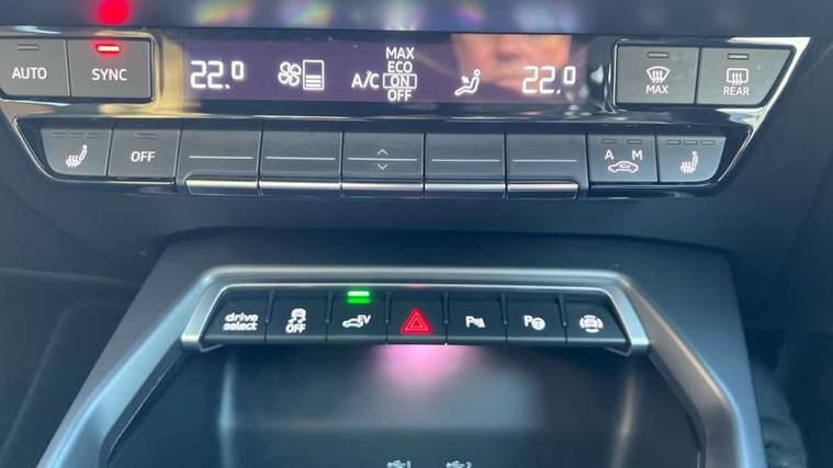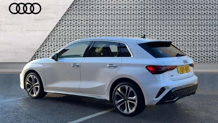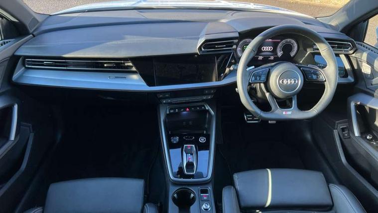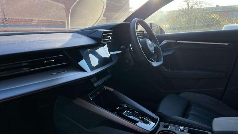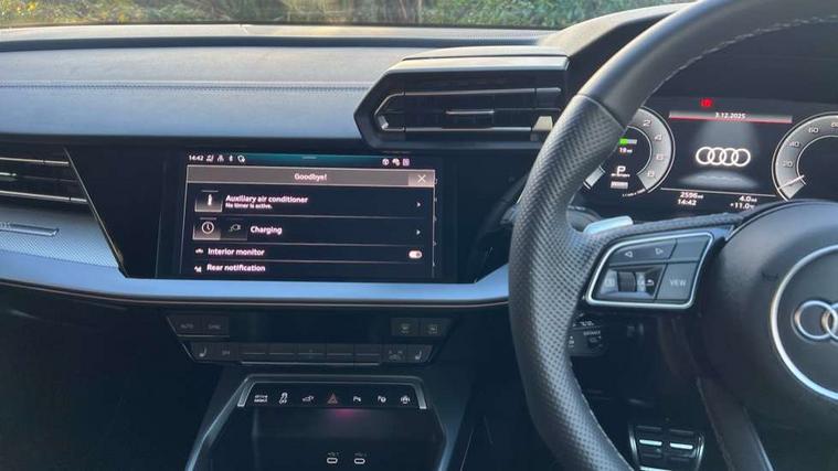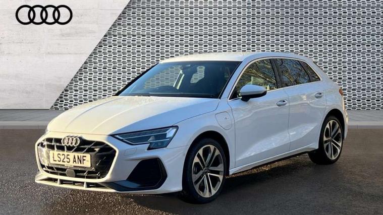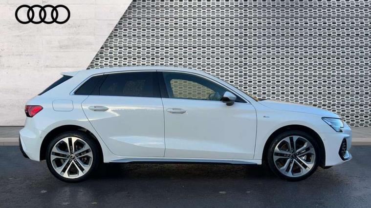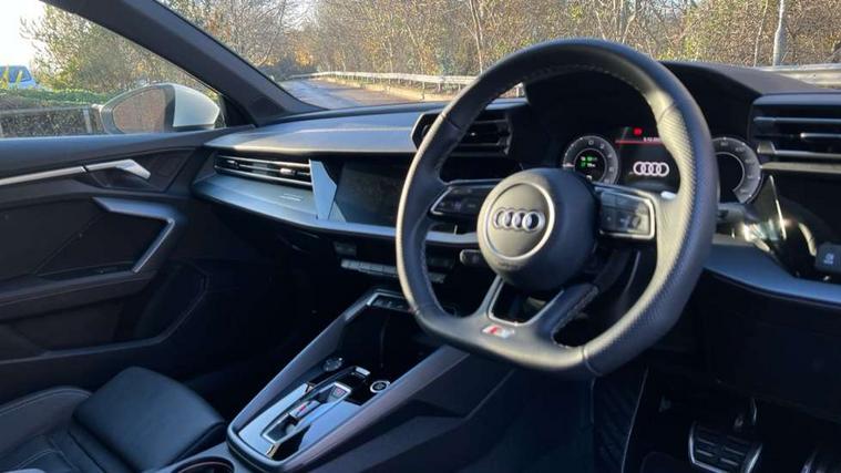 Adjustable speed limiter, Audi drive select, Audi smartphone interface with app store includes wireless Apple carplay, Android auto and Amazon alexa integration, Audi virtual cockpit plus - 12.3" full HD resolution dynamic digital instrument cluster, Automatic start/stop system with recuperation, Bluetooth interface, Camera based traffic sign recognition, Collision avoidance assistant, Cruise control, Distraction and Fatigue warning, e-Call (emergency call), Electromechanical power speed sensitive steering, Lane departure warning system, MMI Navigation Plus with high resolution 10.1" colour touch screen display, Park Assist with parking system Plus, Service indicator, Trip computer, Voice control system with natural language interaction, 3 pin 10 amp domestic charging cable, CCS socket for DC charging, Charging cable for public charging, mode 3 (type 2), up to 22 kW (AC), Compact charging system, Industrial connector CEE 32 A, 230 V, length 1.6 m, Standard suspension, Type 2 socket for AC charging, Audi Phonebox light with wireless charging, Audi sound system - 10 loudspeakers including centre loudspeaker and subwoofer, DAB Digital radio, USB ports with charging function in the rear, Acoustic glass windscreen, Aluminium window trim, Auto dimming frameless rear view mirror, Body colour exterior mirrors, Chrome exhaust tailpipes, Electrically adjustable/heated/folding/auto dimming door mirrors with integrated LED indications + kerb view function for passenger side, Exterior model badging, Front and rear side air inlets in grained matt black with dark liquid chrome frame, Front electric windows, Front radiator grill in high gloss dark chrome, Heat insulating glass windscreen, Illuminated door sills with aluminium inserts at the front with S logo, LED 3rd brake light, LED daytime running lights, LED headlights with LED rear lights and dynamic rear indicators, Light and rain sensors, Privacy glass - dark tinted rear window, rear door and side windows, Rear diffuser and grill in grained matt black with inlay in dark liquid chrome, Rear electric windows, Rear side wing doors, Rear wiper, S line bumpers, S roof spoiler, Side S line emblems on front wings, Side sill trim in dark liquid chrome, 12V socket and storage compartment in front centre console, 3 seat bench in 2nd row, 3 spoke flat bottomed leather multifunction sport steering wheel with gear shift paddles, 3-zone deluxe automatic air conditioning, 4 way electrically adjustable lumbar support for driver and front passenger, 40/20/40 split folding rear seat bench, Black cloth headlining, Convenience auxiliary air conditioning, Front and rear centre armrest in artificial leather, Front and rear centre armrest in artificial leather with contrasting stitching on armrests and instrument panel, Front and rear headrests, Front/rear floor mats, Heated front seats, Height and reach adjustable steering wheel, Manual boot compartment lid, Manually adjustable front seats, Rear cup holders, S badging on the steering wheel, Seat side bolsters, Single front passenger seat, Stainless steel pedals and front footrest in black, Twin leather upholstery with front sports seats S embossed logo, Aluminium interior elements pack - A3 Sportback, Multi-coloured LED interior lighting package - A3, 3x3 point rear seat belts, Acoustic vehicle alerting system, Driver and front passenger airbag with passenger airbag deactivation, Electronic Stabilisation Control (ESC) including ABS, ASR and EDL, First aid kit with warning triangle and 2 safety vests, Front side airbags with head airbags and interaction airbag, Hill hold assist, Pre-sense front with pedestrian and cyclist detection, Seatbelt monitoring, Tyre pressure loss indicator, Anti theft alarm, Anti-theft wheel bolts, Electronically operated child locks, Immobiliser, Remote central locking with safelock, Dash & door Inlay in dark aluminium Spectrum, Tyre repair kit,
