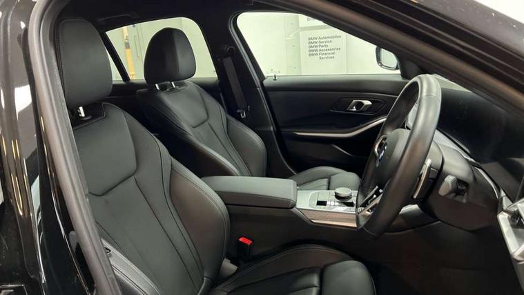 Active guard plus, Attentiveness assist, Automatic Start/stop button, Bluetooth Wi-Fi interface, BMW iDrive, BMW Teleservices, ConnectedDrive Services - last state call, Live cockpit plus with Navigation + 12.3" instrument display + 14.9" display, Intelligent voice assist, 2 USB, 4G LTE connect, Oil sensor for level and grade, Personal e-SIM, Shifting point display, Double joint spring strut front axle, Fuel tank breather system, Public mode 3 professional fast charging cable with 5m length, Steptronic Sport automatic transmission with steering wheel mounted gearshift paddles launch control and xtreme drive lever control, DAB tuner, 3rd brake light, Auto dimming rear view mirror, Automatic headlight beam throw control with load dependent regulating reaction, dynamic compensation of braking dive and acceleration squat, Bi-LED Low and high beam headlights, BMW emblem, engine compartment lid and tailgate, Body colour roof fin, Door sill strips, Electric windows - front and rear, with open/close fingertip control, anti-trap facility and comfort closing, Fading support, Follow me home headlight function, Front and rear bumper system with replaceable deformation elements, Front apron plastic in body colour, Fuel filler flap - right rear in body colour, Heat protection glazing on front windows and windscreen, Heated washer jets, High gloss chrome kidney frame with high gloss black kidney struts, LED daytime running lights, LED rear lights, LED turn indicator, Licence plate panel integrated into front bumper and tailgate, M high gloss shadow line exterior trim, Matt black B-pillar finsher, Matt black window recess cover, Model designation on right side of tailgate, One piece front bumper cover including towing eye cover in body colour, Rain sensor with automatic headlight activation, Rear boot, Rear side wing doors, Reversing lights, Side frame decorative moulding black matt, Trailer stabilisation logic, Visible exhaust tailpipe finisher, Welcome lights in interior and door handle area, 12V power socket in front storage compartment, 2 front cupholder in centre console with clamping elements and matt black inlay, 3 seat bench in 2nd row, 3 spoke M Sport multifunction flat bottom leather steering wheel, 3 zone automatic air conditioning, 40:20:40 split folding rear seat with loading system, Anthracite headlining, Armrest integrated in front and rear door trim + front centre console armrest, Battery in luggage compartment, BMW ID, Cruise control operation in steering wheel, Driving experience mode switch, Folding rear centre armrest with 2 cupholders, Front and rear headrests, Front and rear velour floor mats, Front reading light, Heated front seats, Height adjustable mechanically and infinitely variable steering column, Illuminated armrest storage compartment, Illuminated glove compartment, Illuminated luggage compartment, Lashing eyelets in luggage compartment, Single front passenger seat, Sunvisors with illuminated vanity mirrors and ticket pocket, Toolkit located in luggage compartment, Connected pack professional - 3 Series Saloon/Touring, Interior and exterior mirror pack - 3 Series Touring/Saloon, M sport exterior styling pack - 3 Series Saloon/Touring, Parking assistant pack - 3 Series, 3x3 point rear seatbelts, BMW emergency call, Child locks on rear doors, Crash sensor activating of airbags, Unlocking doors, hazard warning lights, fuel cut off, interior lighting+activation of safety battery terminal clamp, Drive-off assistant, Driver and front passenger with seat occupancy detection for driver's and passenger side, Driver and passenger side airbags, body protection at side and airbags deploy from seat backrests, Dry braking, Dynamic brake control, Dynamic stability control + (DSC+) - Anti-lock Braking System (ABS) with brake assist and cornering brake control + Automatic Stability Control (ASC), Dynamic Traction Control - DTC, Electric parking brake including automatic hold function and automatic release of the parking brake when driving off, Electronic differential lock control (EDLC), Front airbag deactivation, Front airbags for driver and front passenger, Head airbags in 1st and 2nd row, head protection at side, curtain airbags open from headliner above 1st and 2nd row, Plastic fuel tank, Side impact protection, Tyre pressure sensors, Ventilated front and rear disc brakes, Warning triangle and first aid kit, Alarm system, Centre lock switch, Closing system with central locking, Electronic vehicle immobiliser, Locking wheel bolts,