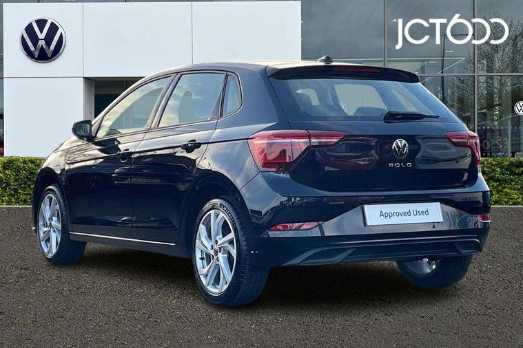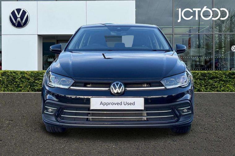 Advanced driver attention and drowsiness monitor, Bluetooth mobile phone interface, Digital Cockpit Pro with 10.25" Display, Dynamic road sign display, Emergency call service, Multifunction camera, Power assisted speed sensitive steering, Predictive adaptive cruise control without follow-to-stop and speed limiter, Preparation for We connect and We connect plus, Speedo and rev counter, electronic odometer, trip, service interval display and fuel gauge, Standard rear axle, Travel Assist - Lane keeping system and traffic jam assist, Travel assist including emergency assist, Trip computer, Warning signal and warning light for front and rear seatbelts not fastened, Washer fluid level indicator, Wireless app connect, Front wheel drive, Rear shock absorpion, Start-stop system with battery regeneration (recuperation - energy recovery during braking), DAB Digital radio, Diversity antenna for FM reception, Front and rear 6 speakers, Automatic dimming interior rear view mirror, Automatic headlights, Body colour door handles, Body coloured bumpers and radiator grille with chrome trims, Electric front windows, Heat insulating glass windscreen, LED separate daytime running lights with coming/leaving home function, Power folding adjustable/heated exterior mirrors and front passenger exterior mirror lowering function, Rain sensor, Rear electric windows, Rear fog light, Rear side wing doors, Rear windscreen washer and wiper with interval delay, Third brake light, 12V power socket in centre console, 2 USB-C ports in the front, 2 USB-C charging sockets on the center console in the rear, 3 rear head restraints, 60/40 split folding rear seat and rear seat bench not split, Air care climatronic air conditoning system with active combination filter and 2-zone temperature control, Ambient lighting, Carpet mats, front and rear, Chrome plated radiator grille inserts, air vent surrounds and light switch surrounds, Door and side trim panel, Driver and front passenger seat height adjustment, Driver/passenger sunvisors with illuminated vanity mirrors, Front centre armrest, Front footwell illumination, Front seat backrest storage pockets, Front sports comfort seats, Handbrake lever handle in leather, Headliner in recycled material, Isofix child seat preparation easy-fit (for two outer rear seats, and front passenger seat) compatible with I-size, Leather trimmed gear knob, LED interior light with switch off delay and dimmer, 2 reading lights front and rear, Luggage compartment cover, Luggage compartment floor, Luggage compartment lighting, Lumbar adjustment for front seats, Multifunction steering wheel, Single front passenger seat, Standard pedal cluster, IQ LED matrix headlights pack - Polo, Light and vision pack - Polo, 3 point height adj front seatbelts + pretensioners, 3x3 point rear seatbelts, ABS, Driver and front passenger airbag with front passenger airbag deactivation, Drivers and front passengers safety optimised head restraints, ESC (Electronic stability control) + EDL (Electronic Differntial lock) and ASR (Traction control), Extended and predictive pedestrian/ cyclist protection, Front curtain and side airbags with center airbag, Front disc brakes, Hill hold control, Manual child lock in rear doors, Rear drum brakes, Single tone horn, Tyre pressure loss indicator, Alarm with interior protection, Anti-theft alarm system with interior monitoring, backup horn, and towing protection, Anti-theft wheel bolts, Electronic engine immobiliser, Chrome applications on rotary light, mirror adjustment, window regulator switches, outlet with frame in black, Low rolling resistance tyres,
