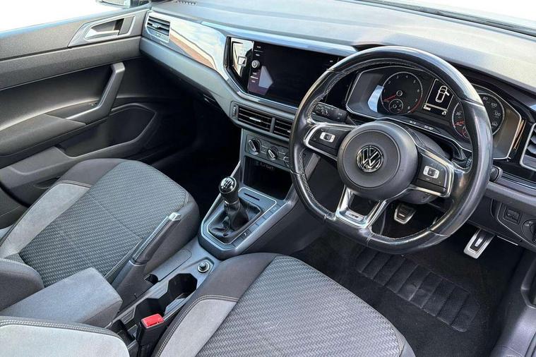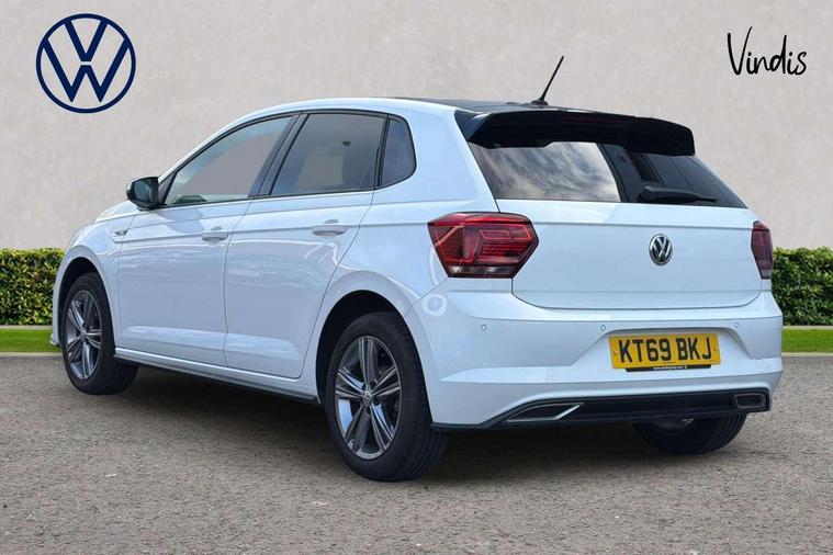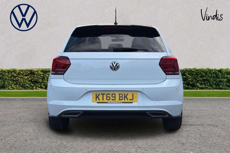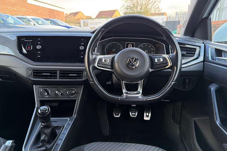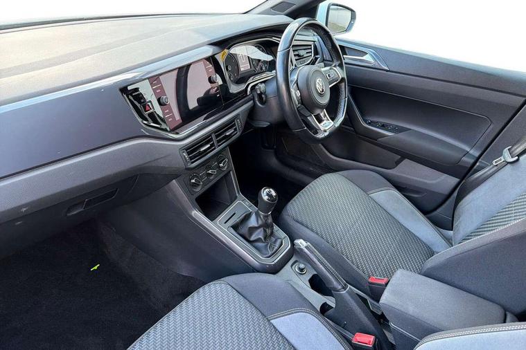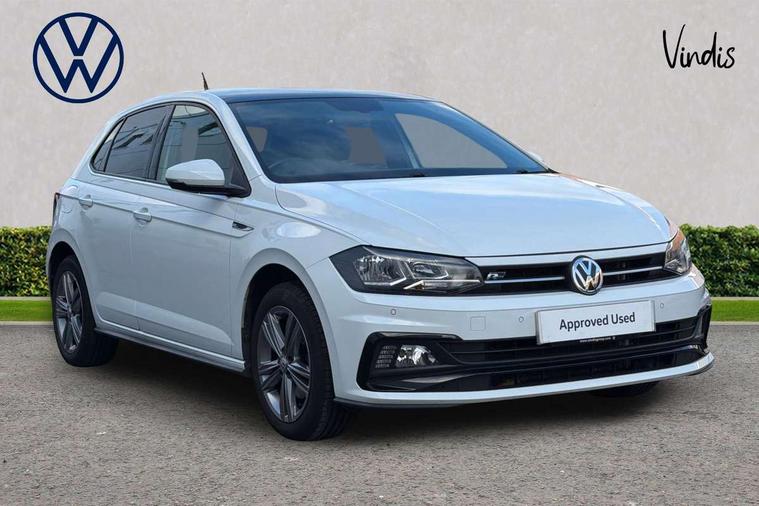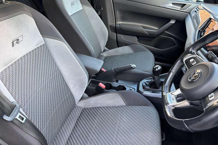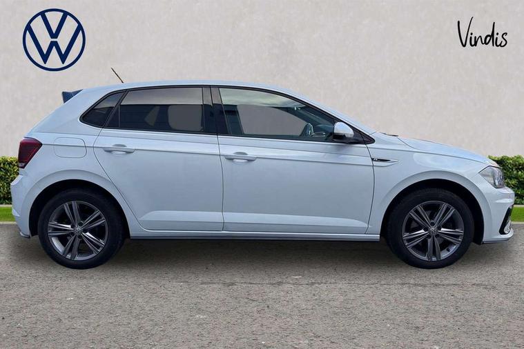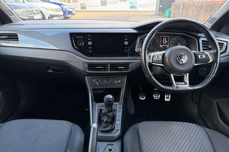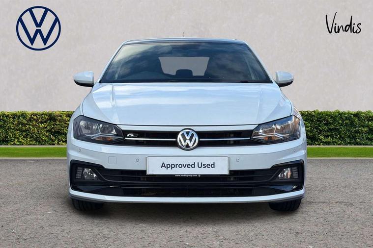 Chrome plated air vent surround, Chrome plated instrument surrounds, Shadow steel decorative inserts, Light and sight pack - Polo, R Line styling pack - Polo, Steel space saver spare wheel, Alarm with interior protection and deactivation via infotainment system, Electronic engine immobiliser, Remote central locking with 2 remote folding keys, 3 point height adj front seatbelts + pretensioners, 3x3 point rear seatbelts, ABS, Automatic post collision braking, Driver/front passenger airbag, Drivers and front passengers safety optimised head restraints, ESP with EDL + ASR, Front and rear passenger curtain airbags, Front passenger airbag deactivation, Front seat side impact airbags, Front/rear disc brakes, HBA (Hydraulic Brake Assist), Hill hold control, Single tone horn, Tyre pressure monitoring system, Black grille with chrome surround, Body colour door handles, Body coloured side sills, Chrome trimmed strip on lower bumper, Electric front windows, Electrically foldable, adjustable and heated door mirrors with reverse activated kerb view adjustment on passenger's side, Front fog lights including static cornering, Front windscreen washers and wipers with 4 speed intermittent delay, Heat insulating tinted glass, Heated rear window with auto timer, High level 3rd brake light, LED darkened rear light clusters, LED daytime running lights, LED rear number plate lights, Left and right chrome effect trapezoid fascia exhaust tailpipe surrounds, Rear diffuser, Rear electric windows, Rear windscreen washer and wiper with interval delay, reverse activated, Unique R Line badging, 2 bag hooks in luggage compartment, 2 front cupholders and 12 V socket with cover, 3 rear head restraints, 60/40 split folding rear seat, Ambient lighting in front foorwell, front/rear door and dashboard light strips, Carbon flag cloth upholstery, Centre console storage with open storage compartment, Chrome-plated electric mirror adjustment switch surround, Chrome-plated electric window button surround, Driver and front passenger seat height adjustment, Driver and front passenger sunvisors with illuminated vanity mirrors, Dust/pollen filter, Folding rear seat backrest, Front + rear carpet mats, Front centre armrest with storage compartment, Front head restraints, Front seat backrest storage pockets, Front sport seats with lumbar adjustment and R line logo on seat backrest, Gear lever gaiter in black trim surround, Glovebox, Handbrake grip button in chrome effect, Height/reach adjustable steering column, Instrument lighting, adjustable panel illumination, Interior light with delay, Isofix Preparation 2 Rear child seats, Jack and tool kit, Leather gear knob and handbrake grip, LED interior lighting - 2 reading lights front and rear with interior delay and dimming function, Luggage compartment cover, removable, Luggage compartment lighting, Luggage compartment with variable load floor, Stainless steel pedals, Storage compartment in front doors, Storage compartment in rear doors, Storage compartment under front seats, Three spoke leather trimmed multifunction steering wheel with aluminium inserts and R Line Logo, Titanium black roof lining and sun visors, Unique R Line door sill protectors, App-Connect, Digital clock, Driver alert system, Lights on warning, Multifunction computer plus, Power assisted speed sensitive steering, Speedo and rev counter, electronic odometer, trip, service interval display and fuel gauge, Start/stop system, Volkswagen connect, Warning buzzer and light for front seatbelts unfastened, Battery regeneration during braking, Galvanished body,