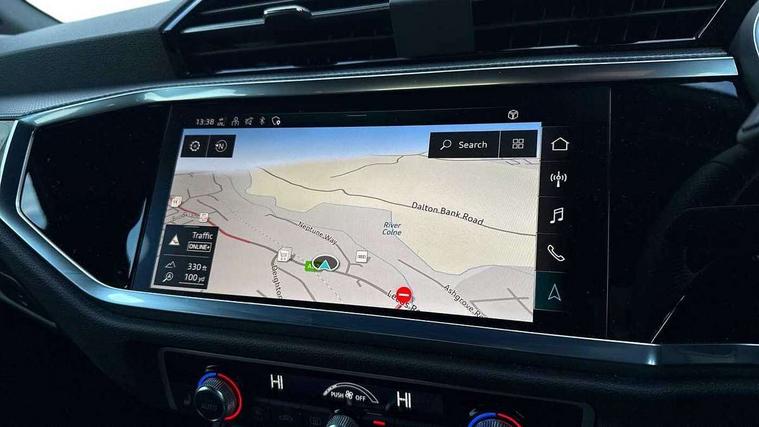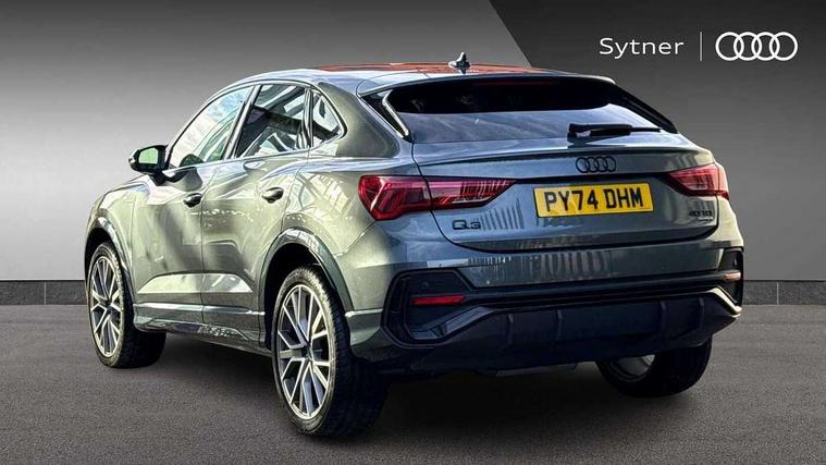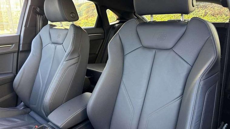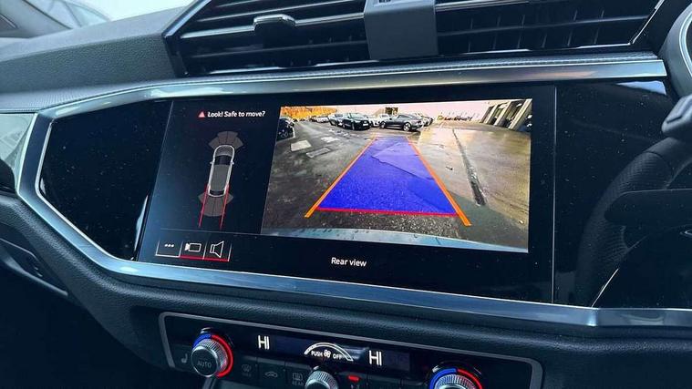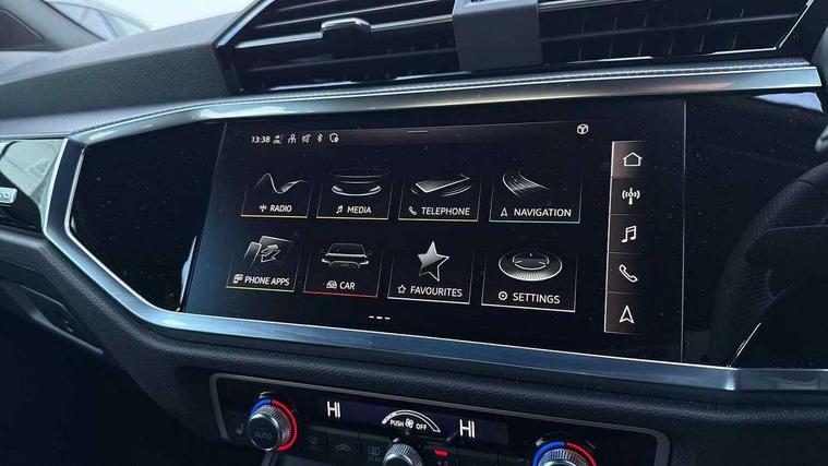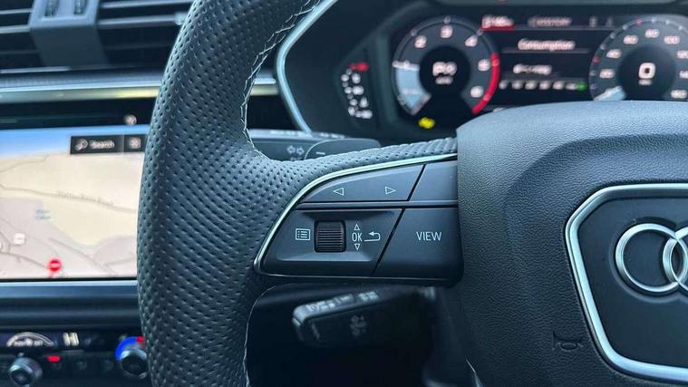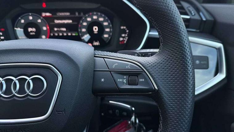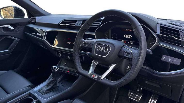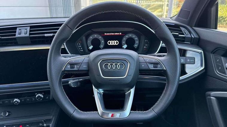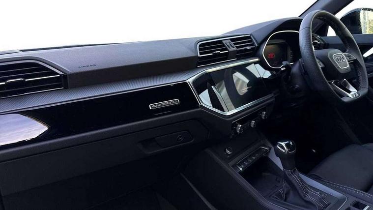 Audi connect safety and service, Audi drive select, Audi lane departure warning, Audi Virtual Cockpit - 10.25" display, Bluetooth interface, Camera based traffic sign recognition, Distraction and Fatigue warning, Legal emergency call, MMI Navigation Plus with high resolution 10.1 inch touchscreen colour display, Power operated tailgate, Progressive steering, Service interval indicator, Smartphone interface includes wireless Apple carplay/Android Auto, Start stop system with recuperation, Voice control system with natural language interaction, Diesel particulate filter, Sports suspension, 2 USB-C ports with charge and data functions, 6 passive loudspeakers, DAB digital radio module, Acoustic windscreen, Audi Beam uses LEDs to project the Audi logo onto the ground as you exit your Q3, Auto dimming door mirrors, Auto dimming frameless rear view mirror, Diffuser grille in grained matt black, Diffuser trim in selenite silver, Electrically folding, adjustable and heated door mirrors with integrated LED side indicators and kerb view function for passenger side, Front and rear electric windows, Front fog lights, Front underbody protection in manhattan grey paint finish, High gloss black finish B and C pillars, LED Dynamic rear indicators, LED headlights with LED daytime running lights, LED rear lights, LED third brake light, Privacy glass dark tinted rear and rear-side windows (from B-pillar backwards), Rain and light sensors, Rear side wing doors, Rear underbody protection in matt black, Rear wiper, S line front and rear bumpers and side skirts in contrasting Manhattan grey paint finish, Variable front intermittent wipers, 12V socket in rear centre console, 3 seat bench in 2nd row, 40:20:40 folding with manual adjustment for 60:40 forwards/backwards position and backrest angle, Adjustable rear seat bench/backrest with centre armrest and cupholder, Black cloth headlining, Dual zone electronic climate control, Electric lumbar support, Front and rear black floor mats with contrast stitching, Front and rear headrests, Front centre armrest, Height and reach adjustable steering wheel, Illuminated door sill trims with S logo, ISOFIX child seat mounting for front passenger with airbag deactivation and outer rear seat including top tether attachment point for outer rear seats, Luggage compartment sill protection in stainless steel, Manual front seats with height adjustment, Perforated leather gearknob, Single front passenger seat, Stainless steel pedals, Twin leather upholstery with front sport seats + S embossing, Black styling pack - Q3, Non smoking pack - Q3, 3x3 point rear seatbelts, 6 airbags - Driver, front passenger, curtain and side windows, Audi pre-sense front with pedestrain and cyclist recognition, Electrically operated child locks on rear doors, Electromechanical parking brake, Electronic stabilisation control including ABS, ASR and EDL, Front seatbelt reminder, Hill descent control, Hill hold assist, Pre sense basic, Seatbelt monitoring, Tyre pressure warning, Warning triangle and first aid kit, Anti theft alarm, Anti theft wheel bolts, Immobiliser, Remote central locking, Aluminium look interior elements, Detail dashboard around MMI touch colour display in glass look, black with surround in aluminium look, Leatherette door armrest, Piano black inlay,