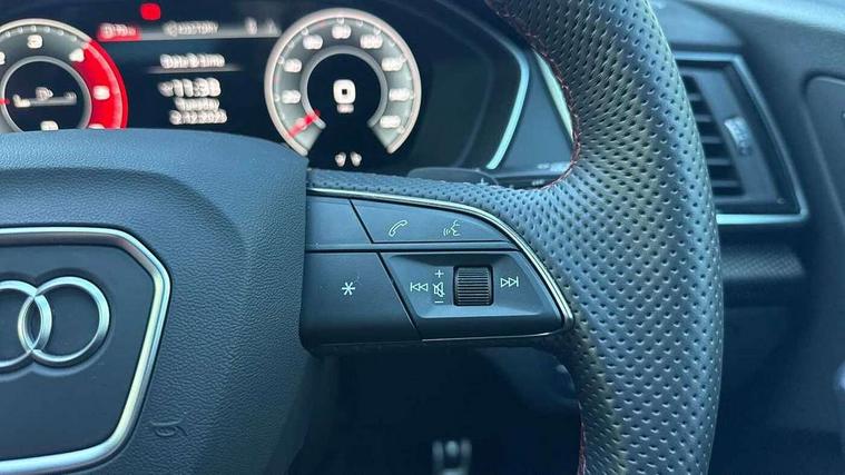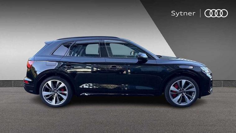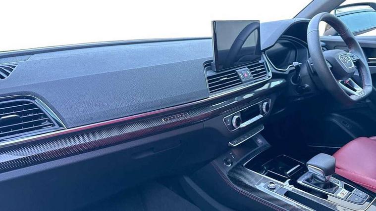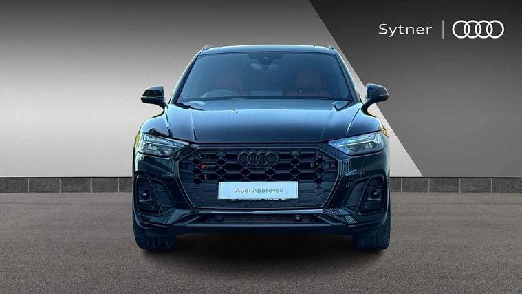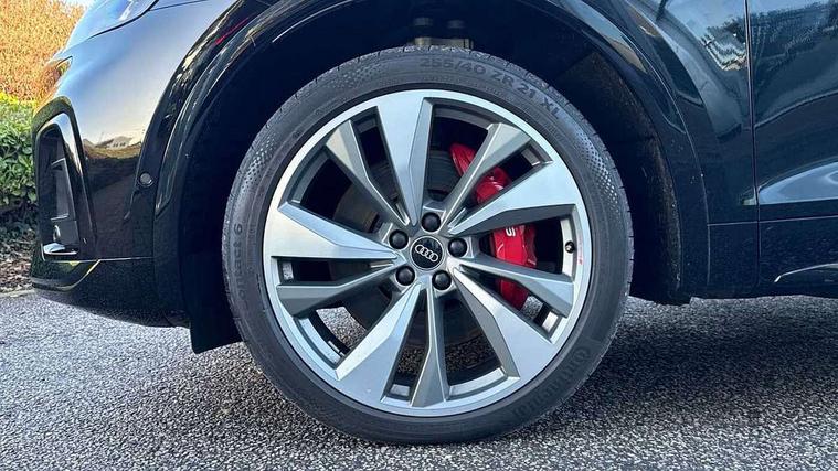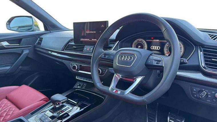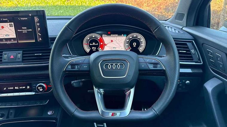 Acoustic front and rear parking sensor, Audi connect safety and service (e-call), Audi connect with Amazon Alexa Integration, Audi drive select, Audi virtual cockpit plus with 12.3" screen and three different layout designs, Audi wireless smartphone interface, Automatic start-stop system with coasting functionality and efficiency programme, Bluetooth interface, Electro - mechanical power assisted steering, MMI navigation plus with 10.1" touch screen, Power tailgate, Reversing camera, Service interval indicator, Voice control system with Audi hotword activation "Hey Audi", 70 litre fuel tank and 24 litre AdBlue tank, Diesel particulate filter, Quattro on demand, S sport suspension with damper control, 2 x USB charging port with aux input socket, Audi sound system, DAB Digital radio, Acoustic windscreen, Aluminium roof rails, Audi beam, Audi beam with Audi rings logo, Audi matrix LED headlights with dynamic front and rear indicators, Auto dimming door mirrors, Auto dimming frameless rear view mirror, Automatic headlight adjustment, Automatic headlights and windscreen wipers, Body colour bumpers, Body colour rear diffuser with matt aluminium silver surrounds, Body colour underbody protection, Chrome plated exhaust trims, Daytime running lights, Door sills in Selenite silver, Electric adjustable/heated/folding door mirrors, Front air inlet surrounds in aluminium, Front and rear electric windows, Front radiator grille in honeycomb design, Headlight washers, High gloss black B pillar trims and triangular rear door trim, High level LED brake light, Rear chrome trim strip below lights, Rear privacy glass and rear side windows, Rear side wing doors, Rear wiper, Roof bars, S front and rear bumpers, S Line rear spoiler, S Line side skirts, S specific rear diffuser, 3 rear headrests, 4 way electric lumbar support for driver and front passenger, 40:20:40 split folding 3 rear bench seat in 2nd row with rear centre armrest, Black cloth headlining, Comfort front centre armrest, Contrast stitching on seats, steering wheel and gear lever gaiter, Deluxe 3 zone electronic climate control, Fine Nappa leather upholstery with diamond pattern contrast stitching + front sport seats with S embossed logo, Front/rear floor mats, Fully electrically adjustable seats, Gear lever in black leather, Heated front seats, Height adjustable front head restraints, Height/reach adjustable steering column, Illuminated door sill trims with S logo, Luggage compartment cover, Massage function for front seats, Rear seat bench plus-adjust for forwards/backwards position/backrest angle, cupholders in the armrest, load through hatch and remote backrest release, Removable luggage compartment floor, Single front passenger seat, Stainless steel pedals, Sunvisors with vanity mirrors, Extended interior upholstery pack - Q5, High gloss pack - Q5, LED interior light pack - Q5, 3 point seatbelts on all seats, 6 airbags - Driver, front passenger, curtain and side airbags, Electrically operated child locks on rear doors, Electromechanical parking brake, Electronic stabilisation control including ABS, ASR and EDL, First aid kit with warning triangle and vests, Front passenger airbag deactivation, Hill descent control, Hill hold assist, ISOFIX child seat mounting for front passenger seat and ISOFIX child seat mounting with Top Tether for outer rear seats, Multi collision brake assist, Pop-up bonnet for pedestrian protection, Pre sense city, Seat belt force limiter, Seatbelt monitoring, Tyre pressure warning, Anti theft alarm, Anti-theft wheel bolts, Keyless Go access/ignition system, Remote central locking, Air vents inserts and centre console in gloss black, 20'' 5 twin star spoke design alloy wheels in gloss graphite grey,