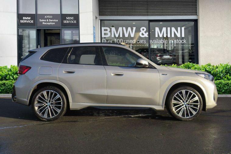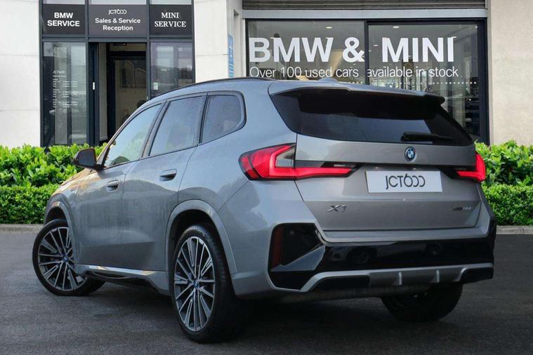 Active Guard + lane departure warning, speed limiting, front collision warning, Left turn warning with brake function and evasion assist, Attentiveness assist, Automatic start/stop function, BMW Live Cockpit Plus with 10.25" instrument cluster and 10.7" display, BMW Online services, BMW Teleservices, Brake pad wear indicator, Condition based service, Connected eDrive Services, Drive off assistant, Electrically opening/closing tailgate with opening/closing with remote control and contactless opening and closing, iDrive controller, Language version English, My Modes, Parking Assistant with Reversing Assistant, active PDC, Lateral Parking Aid, Rear View Camera and Park Distance Control, Personal Profile - automatic lock when driving away selectable, Servotronic PAS, Tyre puncture warning system, Widescreen display, Wireless charging, 45 Litre fuel tank, eDrive exterior sound, Fast charging cable professional mode 3 for public charging, M Adaptive suspension, Mode 2 flexible charger, Performance Control, Petrol Particulate Filter, Steptronic transmission with double clutch and gear shift paddles, xDrive intelligent four wheel drive system, BMW iconic sound electric, DAB Digital radio, Auto dimming interior rear view mirror, Badge on engine compartment lid and tailgate, Contoured rear roof spoiler in vehicle colour with side aeroblades in black high-gloss, Dynamic brake lights, Electric adjustable heated door mirrors, Electric windows - front and rear, with open/close fingertip control, anti-trap facility and comfort closing, Folding door handles integrated flush with surface, Folding wing mirrors with auto dimming, Follow me home headlights, Front and rear bumper panel with M specific design, in body colour with inserts in black high gloss, Front door exit lights, Front entry sills aluminium inserts with M inscription, Heated rear window, High gloss shadow line includes B-pillar trim panel/window cavity cover/window frame/window guide rail front doors/door mirrors in high gloss black, Invisible exhaust tailpipe, Key with M identification, LED 3rd brake light integrated in rear spoiler, LED daytime running lights, LED number plate light, M identification on the sides, M roof rails high gloss shadow line, M specific radiator grille in satinated aluminium, Matt black roof strips, Model inscription on right tailgate, Rain sensor including auto headlights activation, Rear side wing doors, Rear wiper, Side sill covers with M specific design in body colour, Trailer stabilisation logic, Welcome lighting, Windscreen washer nozzle for rear view camera, Windscreen wipers with front and rear heated washer nozzles, 12V - Power sockets with front centre console and luggage compartment, 2 cup holders in front, 2 x USB Type C ports for charging and data transmission (front centre console) and 2 x USB Type C ports for charging (rear centre console), 3 rear headrests, 3 seat bench in 2nd row, 3 upper retaining strap clips integrated into rear panels of seat backrests, 40:20:40 split folding rear seats, Ambient interior lighting, Anthracite headlining, Anthracite Velour front and rear floormats, Bottle trays in all doors, Child seat ISOFIX attachment for two outer rear seats and front passenger seat with anchorage points, Clothes hook rear, Driver and front passenger heated seats, Dual zone automatic air conditioning, Front and rear door pockets, Front centre console storage compartment, Front sports seats, Front/rear adjustable head restraints, Glove compartment, Light on right in luggage compartment, M sport leather steering wheel, Manual steering column height and depth adjustment, Map pockets, Middle centre console storage compartment, Rear armrest in door trim panel, Single front passenger seat, Sport leather multifunction steering wheel with thumbrests and operation of instrument display, audio, telephone and driver assistance, Storage compartment with folding cover under centre console armrest cushion, Connected Package Professional - X1, Technology pack - X1, ABS/EBD, Automatic hold function, Automatic Stability Control (ASC), BMW emergency call, Braking readiness, Cornering brake control (CBC), Crash Sensor - activates hazard/interior lighting + unlocks doors, Driver/Front Passenger airbags, Driver/front passenger side airbags, Dry braking, Dynamic stability control + (DSC+), Electromechanical parking brake, Energy recovery system, Front and rear brake discs, Front and rear head airbags, Front passenger airbag deactivation, Integrated brake system, PC iBrake PostCrash approach control warning with light braking function, Rear door child safety locks, Three point seat belts in all seats, Tyre pressure monitor, Warning triangle, Alarm system with tilt sensor, monitoring doors, bonnet interior and tailgate, Closing system with central locking, Locking wheel bolts, Luxury instrument panel, Tyre repair kit (including Tyre sealant and 12V Compressor),