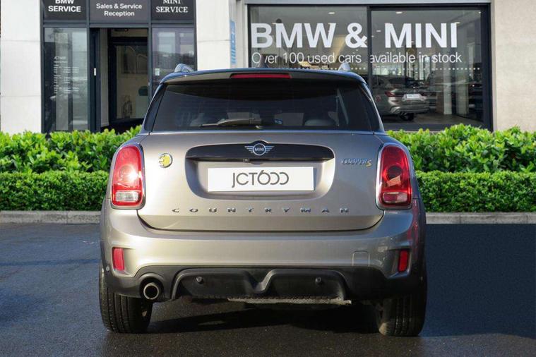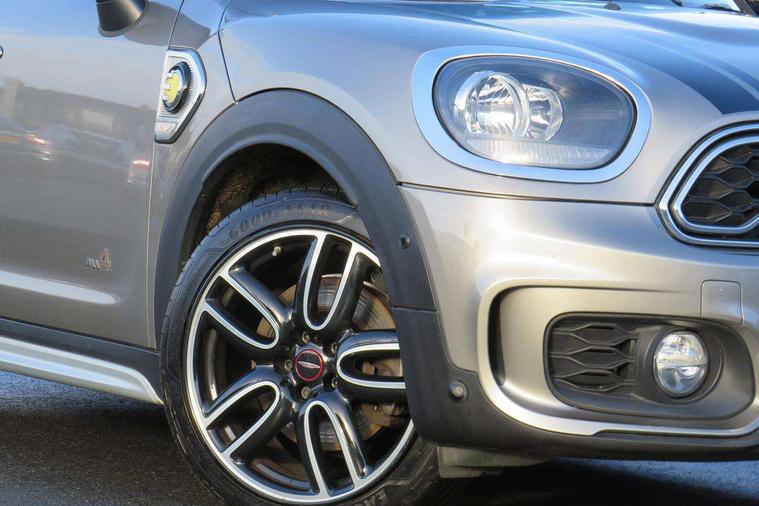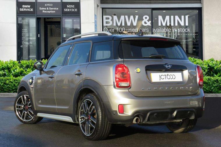 Active Guard incl speed limiting and lane departure functions with auto steering, and front collision warning with brake intervention, Automatic start/stop function with brake energy recuperation, eDrive button, Electro-mechanical speed dependant steering assistance, Instrument cluster, Mini E-call, MINI TeleServices, On board computer, Rear parking distance control, Automatic transmission, Charging flap on front left lower A-panel, Double Vanos system, Fully variable valve control, High precision injection, Performance Control, FM tuner and DAB digital radio, Bonnet scoop, Chrome border honeycomb structure radiator grille with S badge, Chrome fuel filler cap, Day time driving lights, Dynamic brake lights, Electric windows, Heated rear window, Heated windscreen washer jets, John Cooper Works - aerodynamic kit (front and rear apron, spoiler), front and rear sport bumpers and part-painted side sills with door sill finishers, John Cooper Works Logo, John Cooper Works rear spoiler, Metal door sill strips with Cooper S imprint, Model logo, Model logo on Tailgate, Rain sensor with auto headlights, Rear fog lights, Rear window wiper, Side scuttle panel with integrated indicator, Split rear doors, Sun/heat protection glass, Twin exhaust tailpipe, White indicator lenses, 12V Accessory socket in centre console, 360L luggage compartment capacity, 4 lashing eyes in luggage compartment, 40:20:40 split folding rear seats, Anthracite headlining with grab handles and clothes hooks, Charging cable, Chrome interior highlights, Colour line - Carbon black, Cupholders, English handbook, Front headrests, Glove compartment, Height and length steering column adjustment, Isofix rear child seat preparation, John Cooper Works perforated leather steering wheel with contrast stitching in chilli red and John Cooper Works logo, Leather gearshift lever and handbrake gaiters, LED reading lights, vanity mirror lights, front foot well light and spotlight on front seats, Manual air conditioning, Mechanical seat adjustment, driver seat height adjust, forward/back and front seats backrest, Multifunction steering wheel, Passenger seat height adjuster, Rear headrests, Storage compartments in doors, Sunvisors with vanity mirrors, Excitement pack - Countryman, Navigation pack - Countryman, 2 tone horn, 3 point seatbelts on all seats, 6 Airbags - front, side, head and seat belt tensioners, Anti-lock braking system (ABS), DSC - Dynamic Stability Control, Electronic handbrake, Front and rear disc brakes, Hill start assist, Tyre pressure monitoring system, Alarm system with tilt sensor, monitoring doors, bonnet interior and tailgate, Auto drive away locking, Deadlocking function, Electronic vehicle immobiliser, Locking wheel bolts, Start/stop toggle with keyless go, Tool kit,