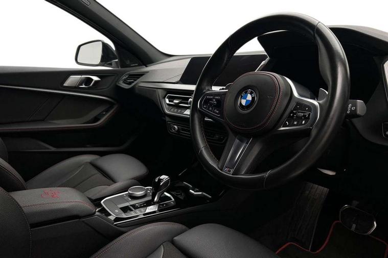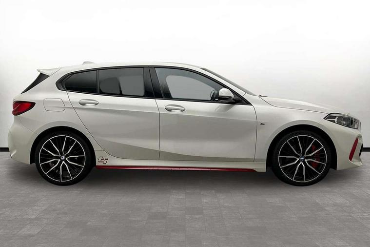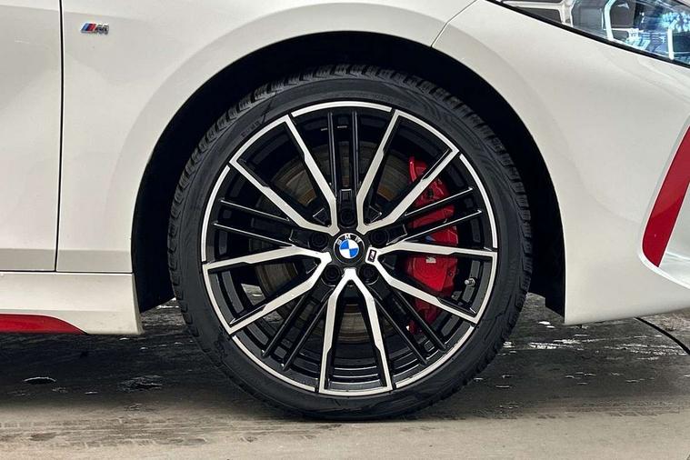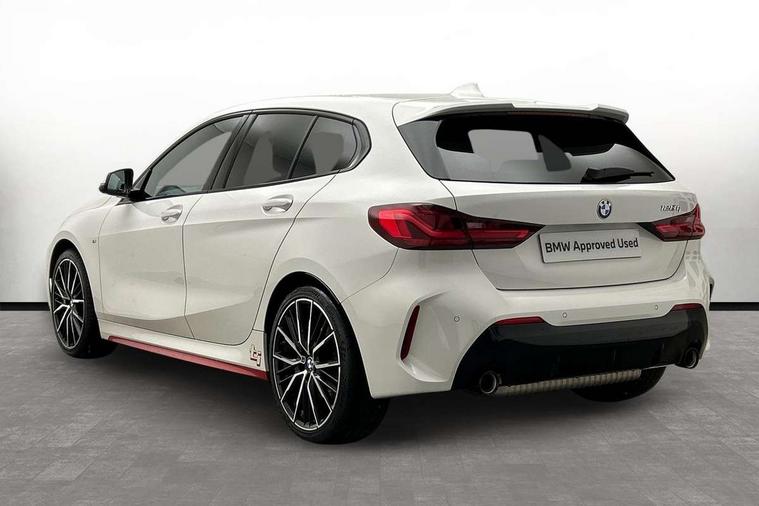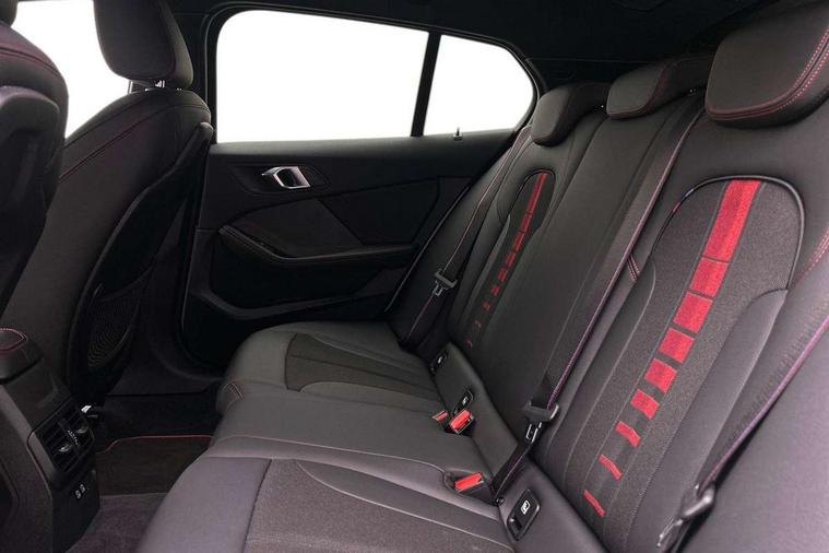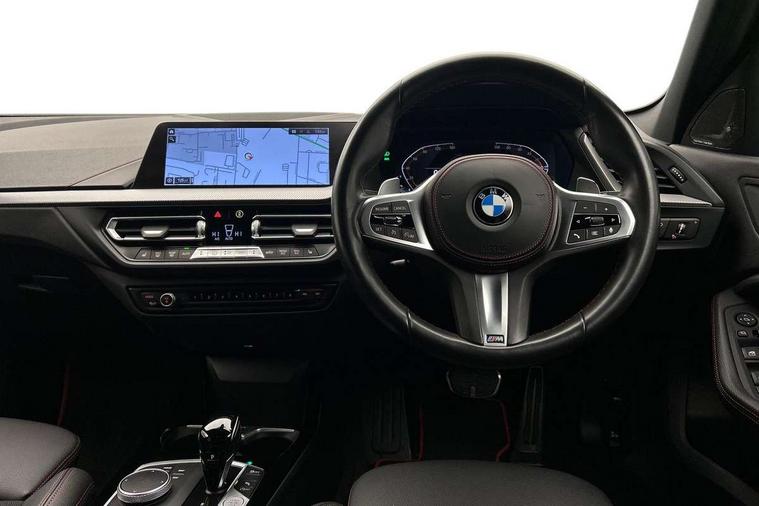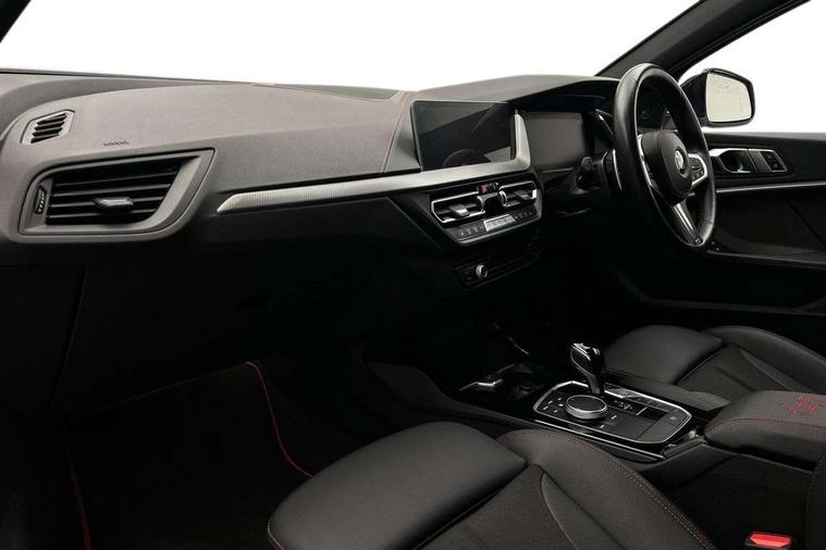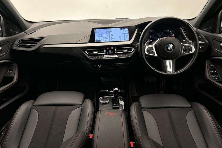 Active guard plus, Attentiveness assist, BMW ConnectedDrive online services, BMW Teleservices, Check Control warning system for monitoring of lights and door/luggage compartment open warning, Cruise control with speed limiter, Eco pro mode, Electric power steering with Servotronic steering optimised at all speed ranges, Front axle single joint with specific axle kinematics to minimise drive influences on steering + provide increased rigidity agile driving behaviour, Integrated owners handbook, Lane departure warning system, Oil sensor for level and grade, On board computer, Optimum shift indicator, Personal Profile, Pull away assistant, Rigidly mounted rear subframe - Multi link construction with separate spring / damper configuration and excellent driving characteristics, Speed limit Info including no-overtaking indicator, Aluminium lightweight construction, Anti roll bar front and rear, Balancer shaft, Double VANOS twin scroll turbocharging system, Drive Performance Control, Eight speed sport automatic transmission with gearshift paddle switches, Electronic differential lock, High precision injection, Larger fuel tank capacity (50 litres), M sport suspension with M128i xDrive specific settings, Petrol Particulate Filter, Twin tube gas filled shock absorbers with degressive characteristic curve, VALVETRONIC engine management, DAB Digital radio, Auto dimming rear view mirror, Automatic headlight beam throw control, Automatic windscreen wipers and automatic headlight, Black chrome tailpipe finishers, BMW individual high gloss shadow line with extended content, Body colour door handles, Body colour mirror caps, Body colour roof trims, Chrome 'M' logo side designation, Chrome kidney grille frame with Satin Aluminium struts, Direction indicator side lights in exterior mirrors, Electrically adjustable exterior mirror with mirror adjustment switch on drivers armrest and aspheric on driver side, convex on passenger side, Fading support, Folding side mirrors with auto dimming/folding wing mirrors with auto dimming, Follow me home headlights, Front and rear bumper system with replaceable deformation elements, Front and rear electric windows with open and close fingertip control, anti trap facility and comfort closing, Front door sill finishers in black plastic with M designation in metallic look, Green tinted heat protection glazing, High gloss shadowline window frame, Recess cover mirror frames and B/C pillar embelisher trim, High level third brake light, Integrated front windscreen with washer jets, Kidney frame and struts in high gloss black extended, LED daytime running lights, LED eyebrow turn indicators, LED front fog lights, Lightweight engineering, Matt black air guide grilles, Matt black wheel arch trim, Model designation on electric bootlid, Nearside reverse light in rear light cluster, Preparation for high beam assistant, Rear fog lights, Rear side wing doors, Rear window wiper, Shark fin antenna, Trailer stabilisation logic, Visible VIN plate, Welcome lighting, 12V power socket in front centre console with blanking plug, 3 rear seat head restraints, 3 seat bench in 2nd row, Anthracite headlining, Black boot net with lashing eyes, Cargo function on 2nd seat row, Child seat ISOFIX attachment for two outer rear seats and front passenger seat with anchorage points, Conditioned based service, Driver and front passenger backrest net on rear, Driver and front passenger seat heating, Driver side folding compartment in instrument panel, Folding rear clothes hook, Four grab handles integrated in roof lining, Front and rear door pockets with bottle holders, Front and rear side armrest integrated into door trim, Front armrest, Front sports seats, Glove compartment, Height adjustable front head restraints, Luggage compartment for bag hooks on left and right, foldable luggage compartment liner and four lashing eyelets, Manual adjust steering wheel, Multi-function controls for steering wheel, Single front passenger seat, Storage compartment in centre console, Storage compartment in luggage compartment, Stowage of the parcel shelf in luggage compartment trim, Sun visors with vanity mirrors and insert tab, Three spoke M sport design multi function leather steering wheel in unique red stitching, Two front centre console cupholders, Two zone automatic air conditioning, Type C two USB ports in rear centre console, Additional interior lighting pack - 1 Series, BMW live cockpit professional pack- 1 Series, Connected pack professional - 1 Series, Interior lights pack - 1 Series, M Sport exterior styling aerodynamics pack - 1 Series, 2 tone horn, 3 point seatbelts on all seats, front pyrotechnic belt tensioners, stopper and belt force limiters, rear coded belt buckles, Airbags - Front driver/passenger, front and rear curtain head protection, front side, manual deactivation of front passenger airbag, Anti lock braking system (ABS) with brake assist, BMW emergency call, Brake drying, Braking readiness, Child proof locking system in rear door, City braking function, Comfort modes, Cornering brake control, Crash sensor activating of airbags, Unlocking doors, hazard warning lights, interior light, safety battery terminal, Driver and front passenger seat belt security check, Dynamic stability control + (DSC+), Dynamic Traction Control - DTC, Electrically operated hand brake including automatic hold function, Front and rear disc brakes, M Sport brakes with red calipers, M Sport seatbelts, Seatbelt warning, Side impact protection, Tyre pressure monitoring system, Warning triangle and first aid kit, Central locking switch for all doors, fuel filler cap and luggage compartment, Deadlocking function system to all doors, Drive away locking system on all doors and luggage compartment with de-activated in iDrive settings, Locking wheel bolts, Remote control with integrated key with High-gloss Black inlay and M designation and 1 button for open/ close lock, window, open luggage compartment, Start/stop button illuminated in