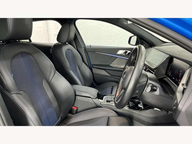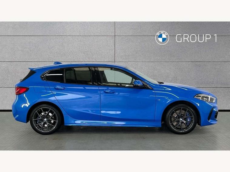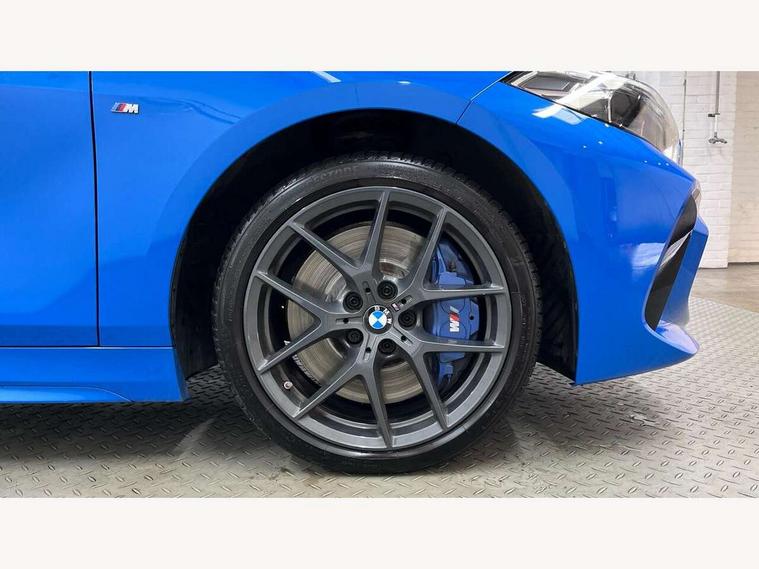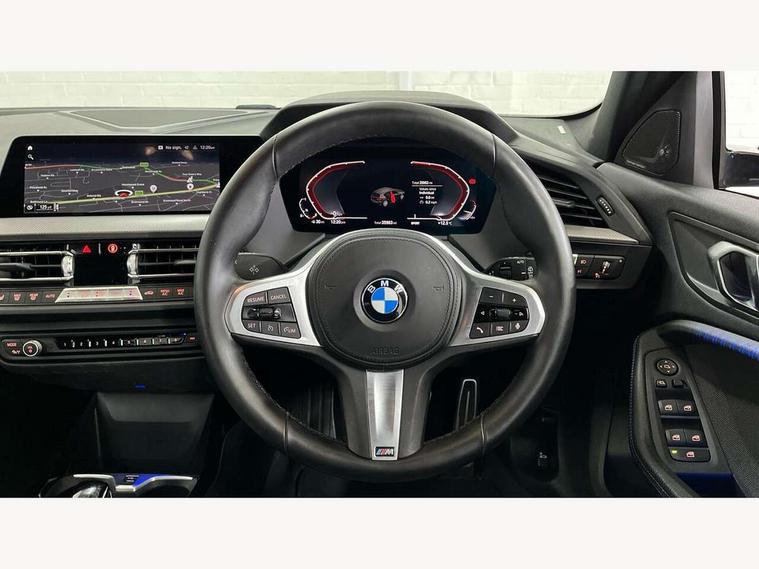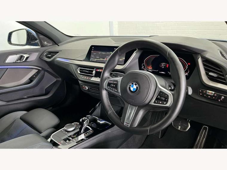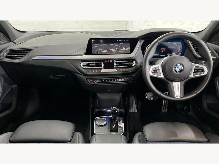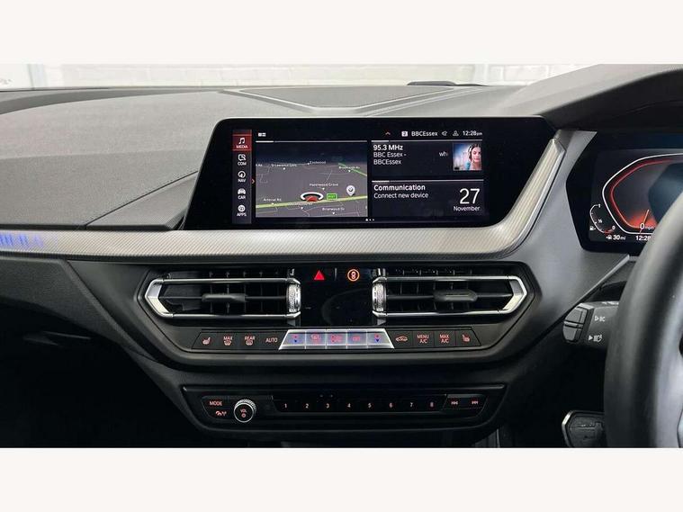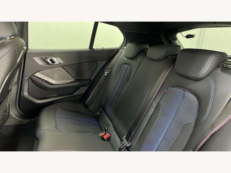 Active guard plus, Attentiveness assist, BMW ConnectedDrive online services, BMW Teleservices, Check Control warning system for monitoring of lights and door/luggage compartment open warning, Cruise control with brake assist, Eco pro mode, Front axle single joint with specific axle kinematics to minimise drive influences on steering + provide increased rigidity agile driving behaviour, Integrated owners handbook, Lane departure warning system, Oil sensor for level and grade, On board computer, Optimum shift indicator, Personal Profile, Pull away assistant, Rigidly mounted rear subframe - Multi link construction with separate spring / damper configuration and excellent driving characteristics, Speed limit Info including no-overtaking indicator, Speed limiter, Aluminium lightweight construction, Anti roll bar front and rear, Balancer shaft, Double VANOS twin scroll turbocharging system, Drive Performance Control, Electronic differential lock, High precision injection, M sport suspension, Petrol Particulate Filter, Twin tube gas filled shock absorbers with degressive characteristic curve, VALVETRONIC engine management, DAB Digital radio, Auto dimming rear view mirror, Automatic headlight beam throw control, Automatic windscreen wipers and automatic headlight, Body colour door handles, Body colour mirror caps, Body colour roof trims, Chrome 'M' logo side designation, Chrome exhaust twin tailpipes round 90mm in left, Chrome kidney grille frame with Satin Aluminium struts, Direction indicator side lights in exterior mirrors, Fading support, Folding side mirrors with auto dimming/folding wing mirrors with auto dimming, Follow me home headlights, Front and rear bumper system with replaceable deformation elements, Front and rear electric windows with open and close fingertip control, anti trap facility and comfort closing, Front door sill finishers in black plastic with M designation in metallic look, Green tinted heat protection glazing, Heated, electrically adjustable exterior mirror aspheric on driver side, convex on passenger side, High gloss shadowline window frame, Recess cover mirror frames and B/C pillar embelisher trim, High level third brake light, Integrated front windscreen with washer jets, LED daytime running lights, LED eyebrow turn indicators, LED front fog lights, LED Headlights, Lightweight engineering, Matt black air guide grilles, Matt black wheel arch trim, Model designation on electric bootlid, Nearside reverse light in rear light cluster, Preparation for high beam assistant, Rear fog lights, Rear side wing doors, Rear window wiper, Shark fin antenna, Trailer stabilisation logic, Visible VIN plate, Welcome lighting, 12V power socket in front centre console with blanking plug, 3 rear seat head restraints, 3 seat bench in 2nd row, 3 spoke sports leather steering wheel with black leather and stitching, pearl chrome decorative finish, specific M Badge, Anthracite headlining, Black boot net with lashing eyes, Cargo function on 2nd seat row, Child seat ISOFIX attachment for two outer rear seats and front passenger seat with anchorage points, Conditioned based service, Driver and front passenger seat heating, Folding rear clothes hook, Four grab handles integrated in roof lining, Front and rear door pockets with bottle holders, Front and rear side armrest integrated into door trim, Front armrest, Front sports seats, Glove compartment, Height adjustable front head restraints, Luggage compartment for bag hooks on left and right, foldable luggage compartment liner and four lashing eyelets, Manual adjust steering wheel, Multi-function controls for steering wheel, Single front passenger seat, Storage compartment in centre console, Sun visors with vanity mirrors and insert tab, Two front centre console cupholders, Two zone automatic air conditioning, Velour floor mats, Additional interior lighting pack - 1 Series, BMW live cockpit professional pack- 1 Series, Connected pack professional - 1 Series, Interior lights pack - 1 Series, M Sport exterior styling aerodynamics pack - 1 Series, 2 tone horn, 3 point seatbelts on all seats, front pyrotechnic belt tensioners, stopper and belt force limiters, rear coded belt buckles, Airbags - Front driver/passenger, front and rear curtain head protection, front side, manual deactivation of front passenger airbag, Anti lock braking system (ABS) with brake assist, BMW emergency call, Brake drying, Braking readiness, Child proof locking system in rear door, City braking function, Comfort modes, Cornering brake control, Crash sensor activating central locking release, hazard warning lights, fuel cut off, interior lighting + activation of safety battery terminal clamp, Driver and front passenger seat belt security check, Dynamic stability control + (DSC+), Dynamic Traction Control - DTC, Electrically operated hand brake including automatic hold function, Front and rear disc brakes, Seatbelt warning, Side impact protection, Tyre pressure monitoring system, Warning triangle and first aid kit, Central locking switch for all doors, fuel filler cap and luggage compartment, Deadlocking function system to all doors, Drive away locking system on all doors and luggage compartment with de-activated in iDrive settings, Locking wheel bolts, Remote control with integrated key with High-gloss Black inlay and M designation and 1 button for open/ close lock, window, open luggage compartment, Start/stop button illuminated in centre console with keyless engine start and auto start stop deactivation button, Thatcham Cat.1 alarm and immobiliser, Wheel slip limitation close to the actuator (ARB), Contrast stitching on instrument panel, Electrically powered 12V compressor, Reduced rolling resistance tyres,
