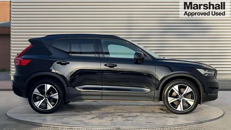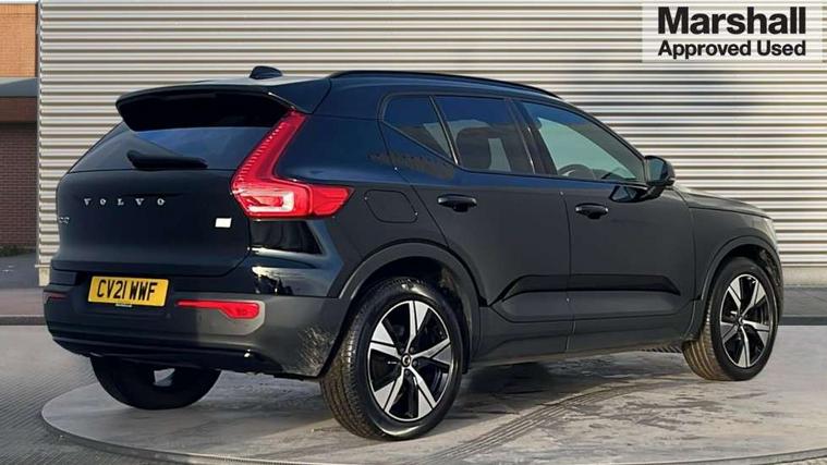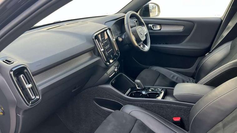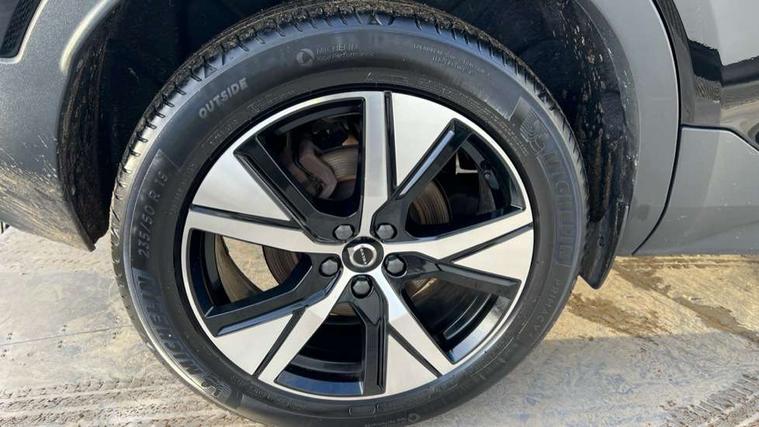 12.3" Active TFT crystal driver's instrument display, 9" centre console portrait touch screen, Adjustable steering wheel force, Bluetooth hands free telephone kit, Drive mode selector, Lane keep assist with driver alert control, Oncoming Lane Mitigation, Power operated tailgate, Sensus navigation with European mapping and traffic information, Speed limiter, Speed sensitive steering, Voice activated control for key functions, Volvo on call, 7m 10amp charge cable with 3 pin plug and 7m 1 phase 16amp type 2/mode 3 charge cable, Electric front axle drive, Recharging port located in nearside front wing, Sports chassis, DAB Digital radio, Low speed exterior sound speaker, Steering wheel mounted remote controls, Adaptive brake lights with high level LED brake lights, Auto dimming interior mirror, Automatic headlamp levelling, Black stone door mirrors, Black stone roof, Colour coordinated auto folding and heated power door mirrors, Dark tinted windows for rear door side windows and cargo compartment, Dual integrated exhaust pipes with high gloss black surround, Front aluminium tread plates, Front and rear electric windows, High gloss black front and rear skid plate, High gloss black lower front bumper, High gloss black mesh front grille with high gloss black surround, High gloss black roof rails, High gloss black sensus surround deco, High gloss black window trim, Home safe and approach lighting, LED Headlights + Active high beam incorporating daytime running lights, Rain sensor with automatic windscreen wiper activation, Rear side wing doors, Rear wiper, Roof antenna, Roof spoiler, Visible VIN plate, 12V socket in front tunnel console and luggage compartment, 2 zone electronic climate control and rear air vent, 3 seat bench in 2nd row, 60/40 versatile split folding rear seat, A-pillar parking ticket holder, Centre console cupholders and storage, Charcoal headlining, Driver's side lower dashboard credit card storage compartment, Front footwell illumination, Front headrests, Front reading light and theatre lighting, Front seat cushion extensions, Glovebox bag hook, Height/reach adjustable steering column, High gloss centre tunnel deco, Illuminated glovebox, Illuminated luggage compartment, Illuminated vanity mirrors, Isofix attachments on outer rear seats, Key integrated remote, Leather gearknob, Load protection net, Multi directional lumbar support, Rear armrest / integral cup holders / storage tray, Rear coat hook, Single front passenger seat, Sports floor mats, Sports pedals, Sports tailored steering wheel, Underfloor cargo storage, 3x3 point rear seatbelts, City safety includes pedestrian, cyclist and large animal detection and front collision warning with full auto brake, Drivers knee airbag, Dual stage driver/passenger airbags, Electronic parking brake with auto hold, First aid kit, Front and outer rear seatbelt reminder and pretensioners, Front seats SIPS airbags, Hill descent control, Hill start assist, Inflatable curtain, Passenger airbag cut-off device, Road sign information display, Run off Road Mitigation, Run off Road Protection, SIPS (Side Impact Protection System), Slippery road and hazard light alert, Stability and Traction Control with Spin control, Engine Drag Control and Corner Traction Control, Tyre pressure monitoring system, Vehicle deceleration control with Anti-lock Brake System, Electronic Brake Distribution and Emergency Brake Assist, Warning triangle, WHIPS whiplash protection system - front, Anti-theft alarm including immobiliser/volume sensor + level sensor, Care key with user defined top speed, Key integrated remote control central locking + fuel flap with deadlocking system and auto open/close power windows, Locking wheel nuts, Private locking for tailgate, Cutting edge aluminium inlay, Lower dashboard, tunnel console and door panel in charcoal,