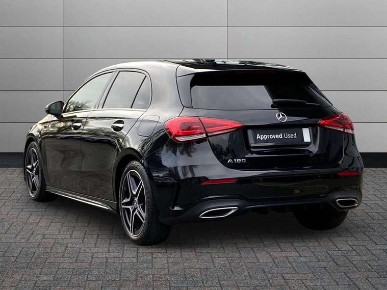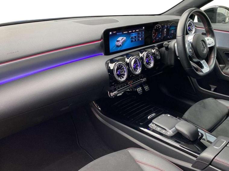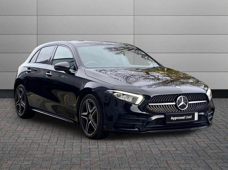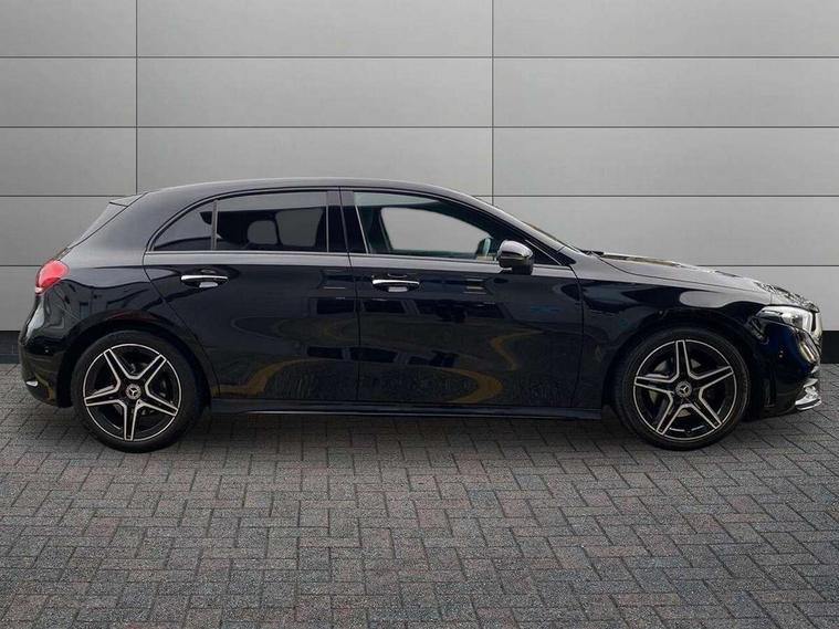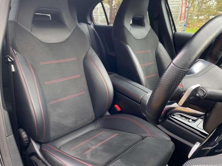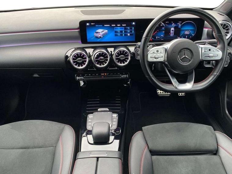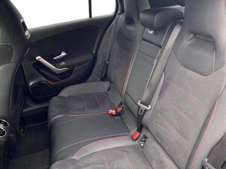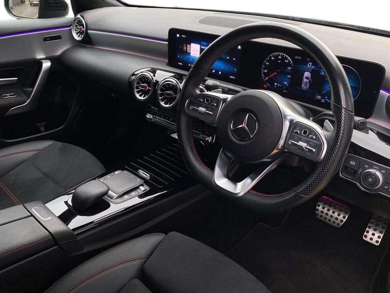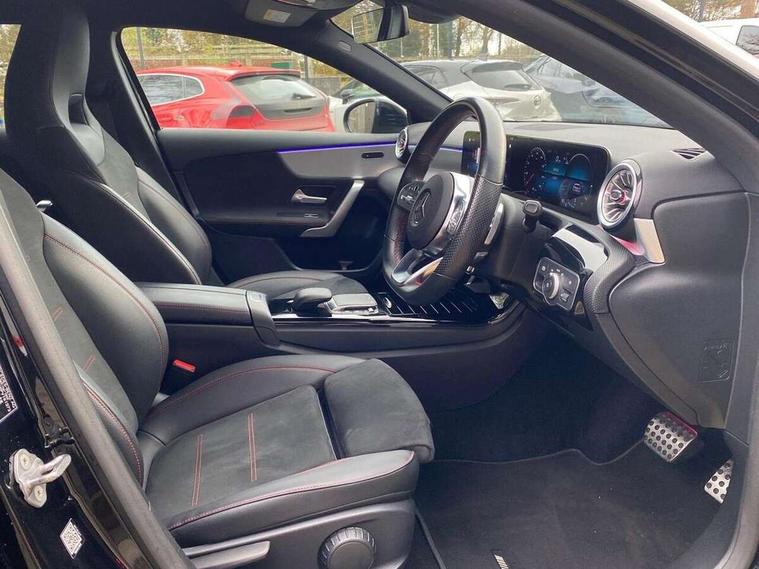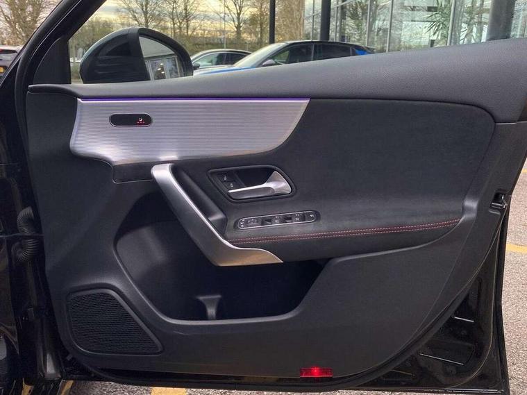 10.25" Digital instrument cluster display screen, 10.25" media display, 180 degree rear view camera with parking guidelines, Active parking assist with visual and audible warning of detected obstacles, Attention assist, Brake pad wear indicator warning light, Car wash mode, Cruise control + speed limiter, Direct steering, Dual bluetooth interfaces, DYNAMIC SELECT with a choice of driving modes (ECO, Comfort, Sport and Individual), ECO start/stop function, Fluid level warning indicator for fuel, oil, coolant and washer fluid, Hard-disk navigation, Hey Mercedes Voice activation, Lamp failure indicator, Lane keeping system, Mercedes me connect including emergency call system, accident recovery, breakdown and maintenance management, Mercedes me remote services, Outside temperature gauge, Owners manual in English, Pre-installation for private car sharing, Preinstallation for Mercedes Benz link, Service indicator (ASSYST), Smartphone integration with Apple CarPlay and Android auto, Speed limit assist, Speed sensitive power steering, Trip computer, Ultrasonic sensors positioned in the front and rear bumpers, Lowered comfort suspension, Rear axle torsion beam, 2 USB ports (type C) in rear stowage compartment and one in front of center console, 6 speakers, DAB Digital radio, MBUX multimedia system with DAB digital radio and touchpad including satellite navigation, Mercedes-Benz sound system - 100W, 4 Electric Front and Rear windows, Adaptive brake lights, AMG bodystyling - Front apron with splitter in chrome, rear apron with chrome trim and chrome visible trim elements in tailpipe, Automatic headlights, Black weather strip, Body colour bumpers, Body colour door handles with chrome inserts, Body colour side skirt, Electric adjustable and heated door mirrors with integrated LED side indicators, Exclusive diamond radiator grille, Exhaust system - Twin visible tailpipes in polished stainless steel, Headlamp assist automatic headlamp activation, Heated glass rear windscreen + timer control, LED High level third brake light, LED high performance headlamps with integrated LED daytime running lights, LED tail lamp, Privacy glass, Radio aerial, Rain sensing windscreen wipers with two sensitivity settings, Rear fog lights, Rear side wing doors, Rear wiper, 3 seat bench in 2nd row, 3 Spoke flat bottom leather multi function steering wheel with perforated leather in grip area, 40:20:40 split folding rear seats, Artico man-made leather/Microfibre Dinamica upholstery with red contrast stitching, Auto Mercedes-Benz child seat recognition sensor, Black air vents with surround in silver chrome, Black roof lining, Brushed stainless steel sports pedals with rubber studs, Controller on centre console with chrome surround, Floor mats with AMG lettering, Front centre armrest with storage compartment, Front seat backs luggage nets, Galvanished gear shift paddles on steering wheel, Heated front seats, Height/reach adjustable steering column, Illuminated Mercedes Benz lettering front door sills with changeable cover, Interior lighting - 64 colour Ambient lighting, Interior mirror with reading lamps in black and frameless, Manual height adjustable front seats, Rear armrest with 2 cupholders, Rear head restraints, Seat occupancy sensor for front passenger seat, Single front passenger seat, Sports seats with integrated headrests, Stowage compartment in centre console with retractable cover, Sunvisors with illuminated vanity mirrors, Touchpad on center console, Twin front cupholders, Two zone thermotronic luxury automatic climate control, Light and sight pack - A Class, Mirror package - A Class, Night pack - A Class Saloon/Hatchback, Seat comfort pack - A Class, 3 rear 3 point seatbelts, ABS with Brake Assist, Active bonnet, Active brake assist includes forward collision warning system with autonomous braking, Adaptive brake assist with hold function and hill start assist, Black seatbelts, Childproof locks manually operated for rear doors and electrically operated for rear power windows, Crash responsive emergency lighting, Driver and passenger head and side airbags, Drivers knee airbag, Dual stage driver/passenger airbags, Electronic parking brake, ESP curve dynamic assist, ESP with ASR, Front and rear seatbelt reminder, Front brake callipers with Mercedes Benz lettering, ISOFIX and top tether child seat fixing points in two outer rear seats, Tyre pressure monitoring system, Warning triangle and first aid kit, Window airbags, Alarm system/interior protection/immobiliser, Keyless entry lock/unlock, Keyless Go, Remote central locking and crash sensor with emergency opening function, Urban guard vehicle protection system with immobiliser and interior protection, Matrix look light longitudinal grain aluminium trim element, 18" AMG 5 twin spoke light alloy wheels aerodynamically optimised painted in black with highsheen finish, Summer tyres, Tirefit sealant kit,