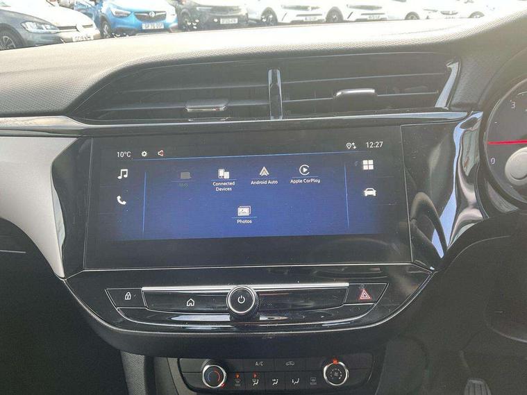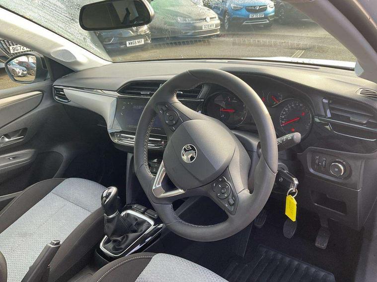 3.5" colour digital instrument cluster, Apple car play/Android Auto, Breakdown call (b-call), Central facia display with digital clock, outside air temperature and audio information, Cruise control with intelligent speed limiter, Driver drowsiness alert system, E-call, Engine oil life indicator, Front camera system, Instrumentation - Speedometer, rev counter, low fuel gauge warning light + water temperature gauge warning light, Lane departure warning, Lane keep assist, Lights on audible warning, Multi function trip computer, RDS with traffic programme, Rear parking distance sensors, Service indicator, Smartphone projection, Speed sensitive power steering, Speed sign recognition, Start/stop system, Vauxhall connect box, Electronic returnless fuel system, Petrol Particulate Filter, Under body shield for aero, AM/FM stereo radio, Bluetooth A2DP audio streaming function (Advanced audio distribuition profile), DAB Digital radio, Multimedia with 10-inch touchscreen, Six speakers, Steering wheel audio, phone and cruise controls, USB type C port, 3rd brake light, Automatic headlight control system, Black door mirror housings, Black lower side window mouldings, Body colour door handles, Body colour front and rear bumpers, Body colour roof and A pillar, Bonnet/headlight/wiper structure, Chrome-effect Griffin logo and Black vizor frame, Corsa lettering in tailgate, Electrically operated front and rear windows with safety auto reverse and one touch up/down facility, Electrochromic automatic anti-dazzle rear view mirror, Flexible roof mounted aerial, Glazed tailgate and heated rear window with wash/wipe facility, Hazard warning lights, Headlamps for left side traffic, High beam assist, LED daytime running lights, LED Headlights, Rain sensitive windscreen wipers, Rear fog lamp, Rear reversing lights, Rear side wing doors, Rear wiper, Solar heat absorbing windscreen and windows, Two speed windscreen wipers with variable intermittent wipe, Windscreen and side window demist vents, 12V power sockets, 3 bench rear seats in 2nd row, 3 spoke flat bottomed leather effect steering wheel with satin chrome effect bezel, 4 speed fan with illuminated controls, 4 way manual co-driver seat reach fore/aft, backrest upright/recline, 6 way manual adjustable driver seat height up/down, reach fore/aft, backrest upright/recline, 60/40 split folding rear seat, Air conditioning with air recirculation facility, Cabin particulate filter - removes dust, airborne particles and pollen, Cloth upholstery, Comfort front seats, Driver/passenger sunvisors with vanity mirrors + covers, Four adjustable facia vents, Front cupholder, Front headrests, Height adjustable head restraints, Illuminated glovebox with lid, Interior courtesy light, Internal chrome door handles, IP plastic insert single piece, LED boot light, Polyurethane gear knob/lever, Reach and rake adjustable steering column, Rear cupholder, Rear headrests, Right hand drive (RHD), Single dome lamp with dual front reading lamps, Single front passenger seat, Two litre open door pockets, 3 rear 3 point seatbelts, Anti-lock braking system (ABS), Automatic emergency braking with pedestrian detection, Cornering brake control, Deactivation switch for front passenger's airbag, Drag torque control, EBD - Electronic brakeforce distribution, Electrical child lock system in rear door latch, Electronic Stability Programme (ESP), Emergency brake assist, Forward collision alert, Front seatbelt unfastened audible warning and warning light, Hill hold and start system, ISOFIX child seat mountings incorporating top tether anchor points located on second row rear seats, Manual handbrake, Seatbelt pretensioners, Single tone horn, Six airbags - Driver's dual stage airbag/front passenger's dual stage airbag/front seat side impact airbags/full size curtain airbags, Straight line stability control, Traction control, Tyre deflation detection system, Tyre pressure monitoring system, 2 keys one folding with integral remote, Electronically protected audio equipment, Engine deadlock and immobiliser, Freewheeling door locks, Locking wheel nuts, Remote control central locking, Remote locking fuel filler flap, Steering column lock, Visible vehicle identification number, Akoya grey fascia with high gloss black insert, 16" Grey alloy wheels,