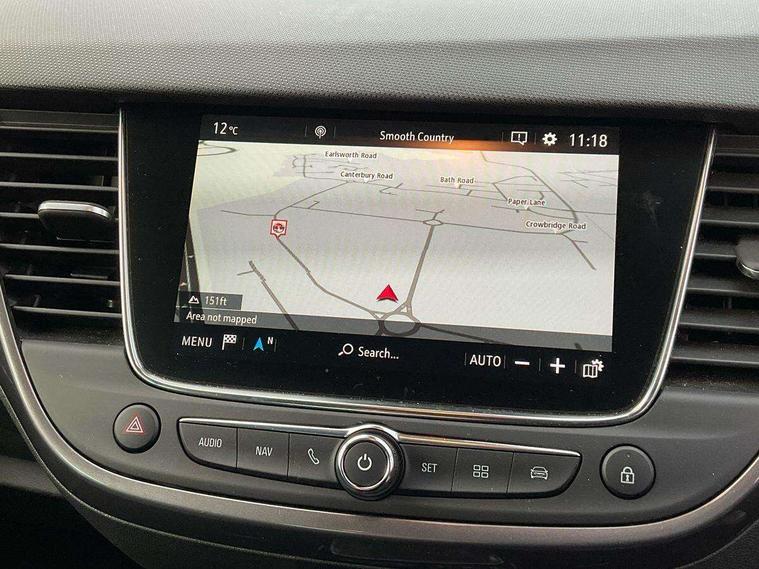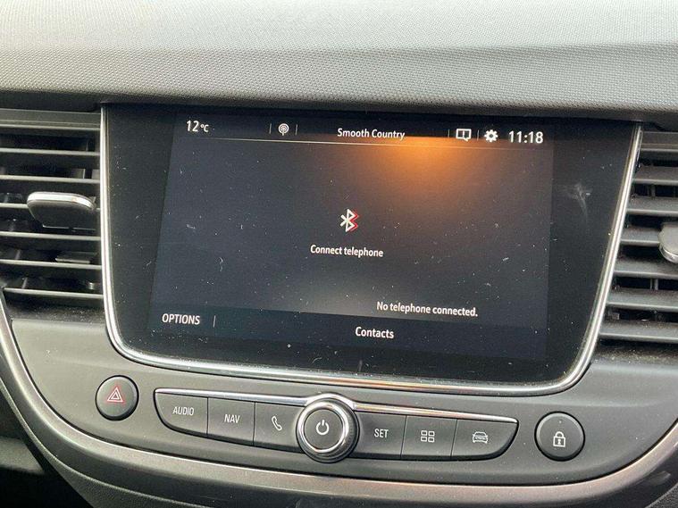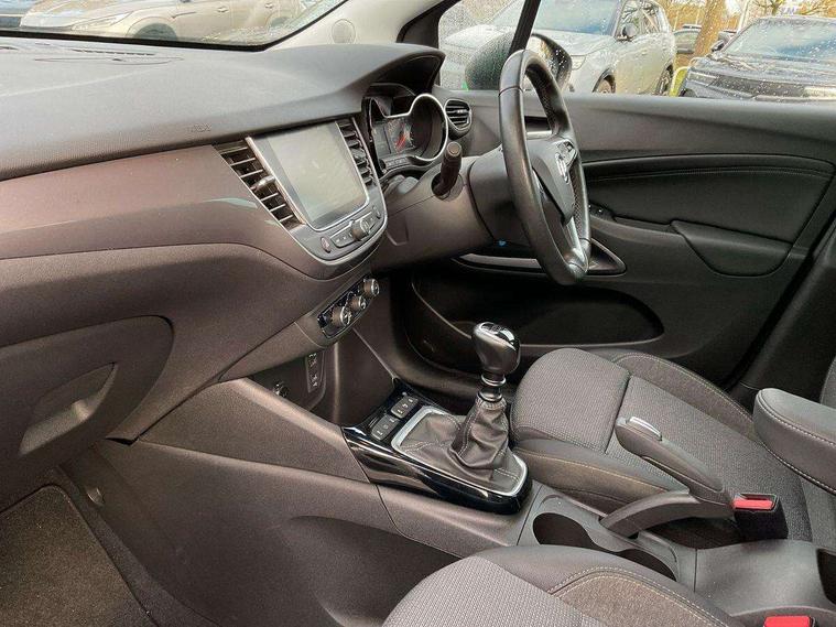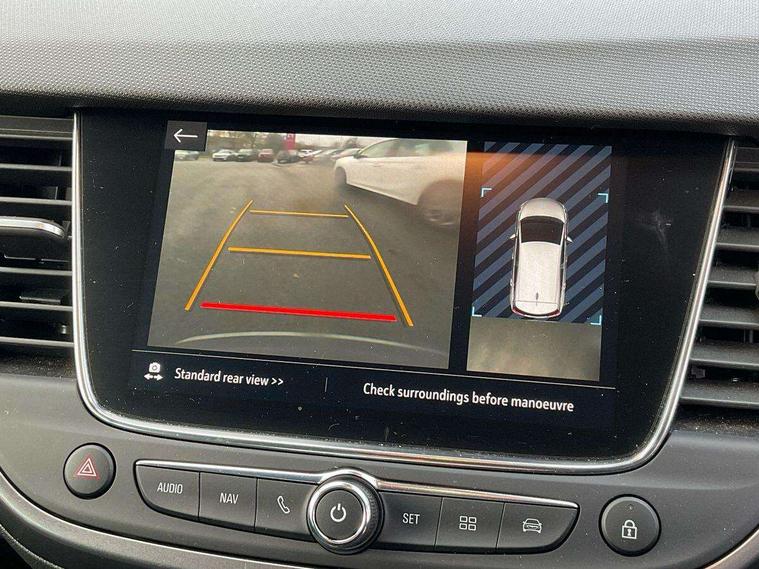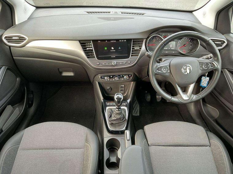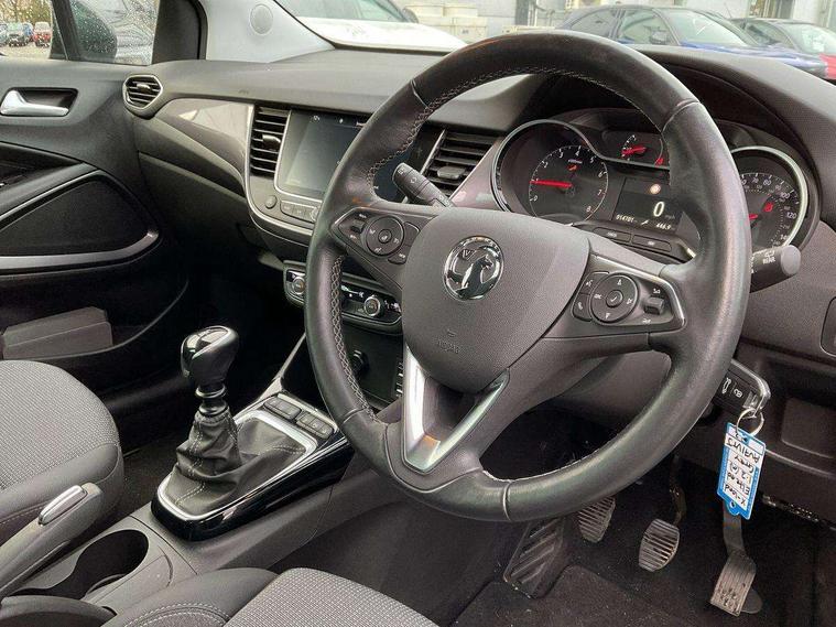 3.5" monochrome instrument colour display, Audible lights on warning, Bluetooth connectivity, Cruise control + speed limiter, Digital clock with automatic RDS time adjustment, Driver drowsiness alert system, E-call, Forward collision warning, Instrumentation - Speedometer, rev counter, low fuel gauge warning light + water temperature gauge warning light, shift up/down indicate light, Lane departure warning system, Multi function trip computer, Multimedia sat nav pro with 8" colour touchscreen, AM/FM, Bluetooth streaming, Bluetooth mobile phone portal, apple CarPlay/Android Auto + 6 speakers, Outside temperature display with ice warning, Refridgerant low indicator, Service interval indicator, Speed sensitive power steering, Speed sign recognition, Vauxhall connect, Front wheel drive, 2 x USB connections, DAB Digital radio, Steering wheel mounted audio/phone/cruise controls, 2 speed wipers/wash wipe/intermittent wipe, Alloy effect front and rear skid plates, Automatic anti dazzle rear view mirror, Automatic headlamp levelling system, Automatic high beam control with cornering light, Automatic lighting control, Black door mirror housings, Black radiator grille with chrome bar, Black roof, Body colour door handles, Body colour front and rear bumpers, Chrome effect upper window moulding, Dark tinted rear side windows + tailgate window, Electrically adjustable and heated door mirrors, Front power windows with express up/down and anti-pinch function, Hazard warning lights, Headlamps for left side traffic, Heated rear window, Integrated tailgate spoiler, Intermittent rear wash/wipe, LED daytime running lights, LED front fog lights, LED Headlights, LED side repeat indicators, LED tail lights, Rain sensitive windscreen wipers, Rear fog lights, Rear power windows with express up/down and anti-pinch function, Rear side wing doors, Rear wing door, Reversing light, Side window demist vents, Solar heat absorbing windscreen and windows, Third brake light, Welcome lighting, Windscreen demist vents, 12v power outlet - front, 2 way adjustable front passenger seat, 2 way front passive headrests, 3 rear seats, 3 spoke flat bottomed leather covered steering wheel with bezel decoration, 4 way electrically adjustable lumbar support for drivers seat, 60/40 split folding rear seat backrest, Adjustable rear seat backrest, Air recirculation facility, Ambient lighting, Anti submarining ramps in front seats, Cabin particulate filter - removes dust, airborne particles and pollen, Centre console, Driver and front passenger illuminated vanity mirrors with flip up covers, Driver's seat armrest, Drivers ergonomic active seat with 8 way manual adjustable driver seat , height, reach and backrest, Dual zone electronic climate control, Fade up/fade down on interior lighting, Four adjustable facia vents, Front door pockets with bottle holders, Front map reading lights, Fully carpeted luggage area, Glovebox with lid, Height adjustable front/rear head restraints, Illuminated load area, Interior courtesy light operated by all doors, Isofix system on outer rear seats, Jet black premium leather side bolsters, Luggage compartment cover, Multi-speed fan with Illuminated control, Open storage compartment in centre console, Passenger assist handles, Reach + rake adjustable steering column, Rear centre headrest, Rear door pockets with bottle holders, Rear floor ventilation ducts, Rear reading lights, Satin chrome effect bezel on steering wheel, Seat cushion extension, Single front passenger seat, Sparkle cloth/vinyl upholstery, Storage pockets on front seat backs, Two drinks holders in centre console, Rear view camera plus pack - Crossland, Winter pack - Crossland, 3x3 point rear seatbelts, 6 airbags - Driver and co-driver front, front side, head curtain roof airbags, front and rear row coverage airbags, ABS, Automatic emergency braking with pedestrian detection, Child locks on rear doors, CSC - Cornering stability control, Deactivate switch for side impact airbags, Deformation zones front and rear, Dual seatbelt pretensioners on front seats, EBD - Electronic brakeforce distribution, Energy absorbing steering column, Engine drag torque control, ESP + traction control, Front and rear seatbelt unfastened audible warning and warning light, Front side impact airbag, Hill start assist, Hydraulic Brake Assist (HBA), Hydraulic brake boost, Inertia reel lap and diagonal seatbelts for all seats, Passenger airbag deactivate switch, Pedestrian detection, Rear seat belt pretensioners, Reinforced passenger safety cell, Seatbelt load limiter, Side impact protection beams, Smart seatbelt reminder for front and rear seats, Tyre pressure monitoring system, 2 remote folding keys, Electronically protected audio equipment, Engine immobiliser, Locking wheel nuts, Remote central deadlocking, Remote control central locking activation switch on driver door, Remote control central locking operates on doors, tailgate and fuel filler flap, Remote security alarm system, Visible vehicle identification number, Black facia with silver trim insert, Black trim inserts on front doors, Cluster black with chrome rings, 17" five twin spoke diamond bi colour alloy wheels,