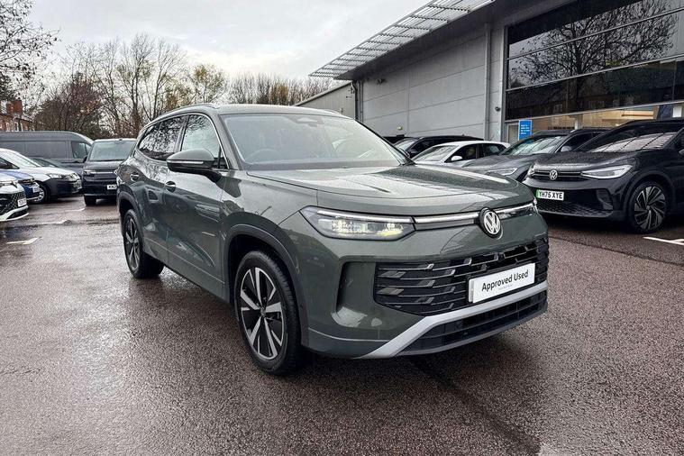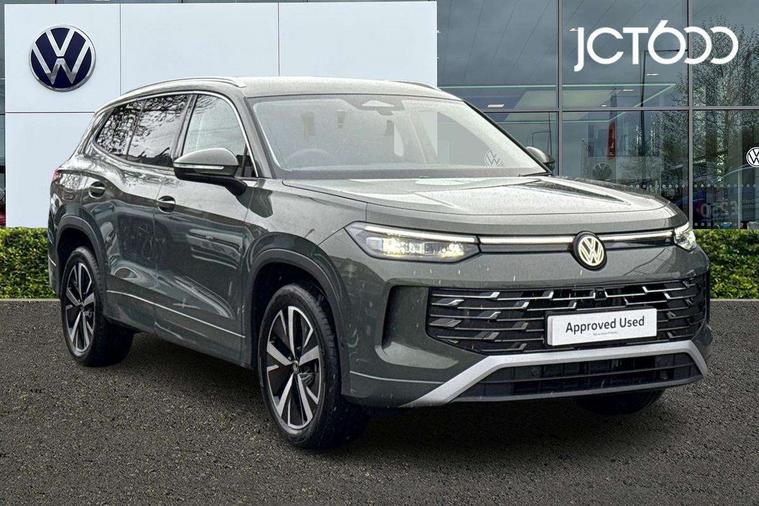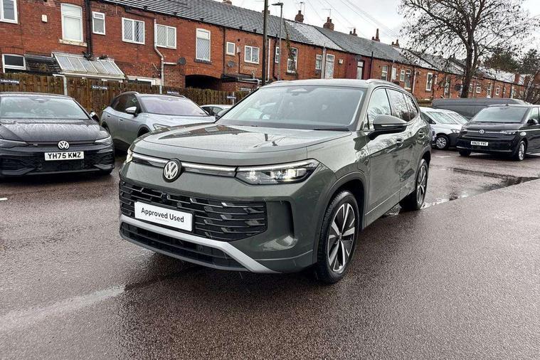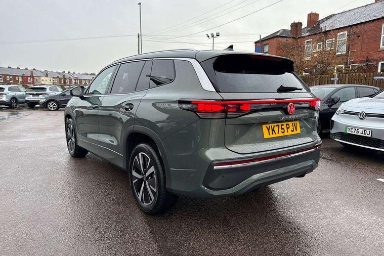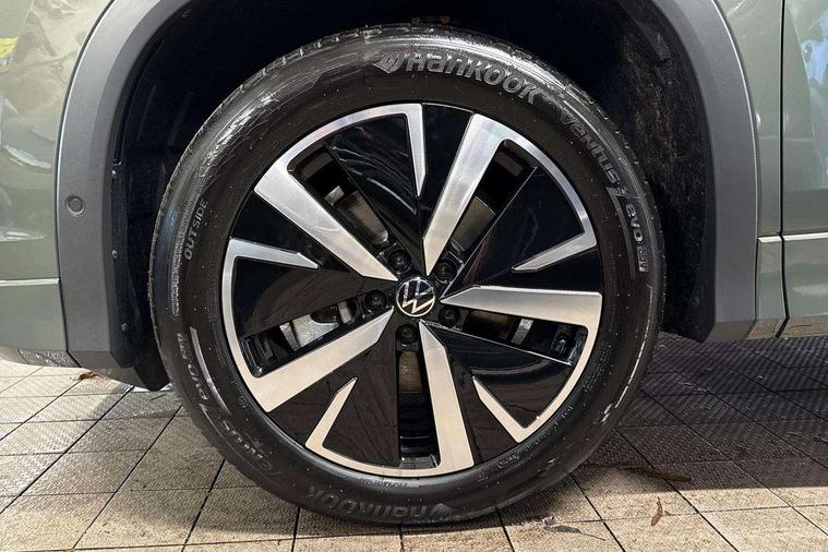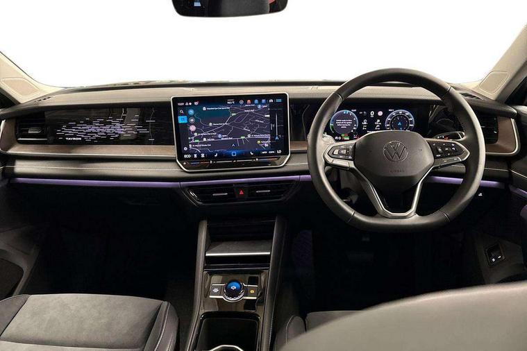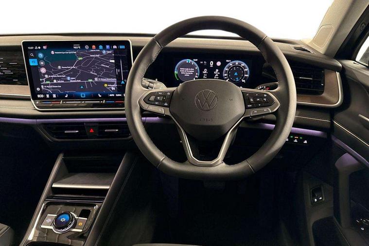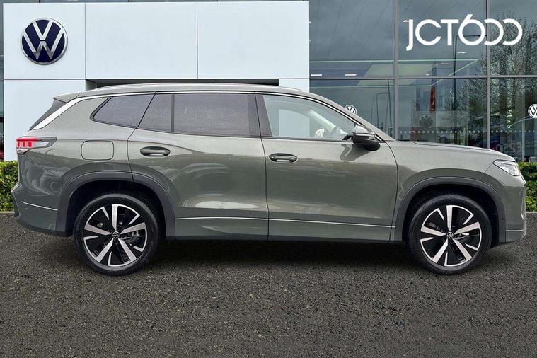 Adaptive cruise control (ACC), Digital Cockpit Pro - 10.25" high resolution dash display screen with customisable menus and information, Driver alert system, Driver attention monitoring system, Dynamic road sign display, E-Sim card for online connectivity, eCall emergency call system, Lane change system, Side assist, Rear traffic alert and Exit warning system, Multifunction front facing camera, Oncoming vehicle braking when turning including swerve support, Power assisted steering with speed sensitive, Start/stop system with regenerative braking, Voice activation spoken voice commands for telephone and navigation system, Warning signal and warning light for front and rear seatbelts not fastened, Wireless App-Connect, Adaptive chassis control DCC pro includes driving mode selection, Charging cable Mode 2 Type 2 / G (10A), Charging cable Mode 3 Type 2 / 3 (16A), Front shock absorption G08, Front wheel drive, Rear shock absorption, Digital radio reception (DAB), Diversity antenna for FM reception, Auto dimming interior rear view mirror, Automatic headlight control system, Body colour door handles, Body coloured bumpers and air intake with chrome trim, Body-coloured exterior mirror housings, Chrome moldings on the side windows, Coming/leaving home lighting function, Dynamic headlight range control with dynamic cornering light, Exterior mirrors convex on the left and aspherical on the right, Heat insulating glass in side and rear windows, Illuminated Volkswagen logo rear with animation, Laminated safety glass from B-pillar backwards 90% tinted, Laminated safety glass winshield, heat insulating, LED 3rd brake light, LED separate signature day time running light, Puddle lights, Rain sensor windscreen wipers, Rear fog light on one side, reversing light on both sides, Rear side wing doors, Rear wiper, Reverse activated passenger's door mirror, Surround lighting with welcome light, Volkswagen logo in front, illuminated lighting animation with wake up/goodbye scenario and illuminated door handles, 10 colour interior ambient lighting, 12V outlet in center console rear and in luggage compartment, 3 rear headrests, 3 rear seat bench in 2nd row, split folding, longitudinally movable and folding with load-through hatch, Carpet mats, front and rear, Centre console with illuminated storage compartment with sliding cover and two drinks holders, Chrome elements on the mirror switch and power window switches and door pulls, Door and side trim panel featuring foam film with leatherette insert, Flat luggage compartment floor, Front centre armrest, Front scuff plates in aluminium, ISOFIX anchors for child seats on outer rear seats and front passenger seat compatible with i-Size, Mechanical rear seat release, Power adjustable lumbar support in front, Single front passenger seat, Sports comfort seats in front, Sun visors with illuminated vanity mirrors, Comfort package with park assist pro - Tayron, Driver assistance package - Tayron, 3 Point seat belts in front with pretensioners, 3 point seatbelts in outer rear with ECE label, Autonomous emergency braking front assist with pedestrian and cyclist monitoring, Driver and front passenger airbag with front passenger airbag deactivation, Electronic parking brake with auto hold, First aid kit with warning triangle and safety vest, Front and rear curtain airbags, Front and rear side airbags, Front centre airbag, Front disc brakes, Hill start assist, Rear disc brakes, Two tone horn, Decorative material set Elegance with inserts in ornamental wood ash in the dashboard, Interior door handle in matte chrome, Tool kit for tyre mobility set, Tyre mobility kit including compressor and sealing foam. In lieu of spare wheel,