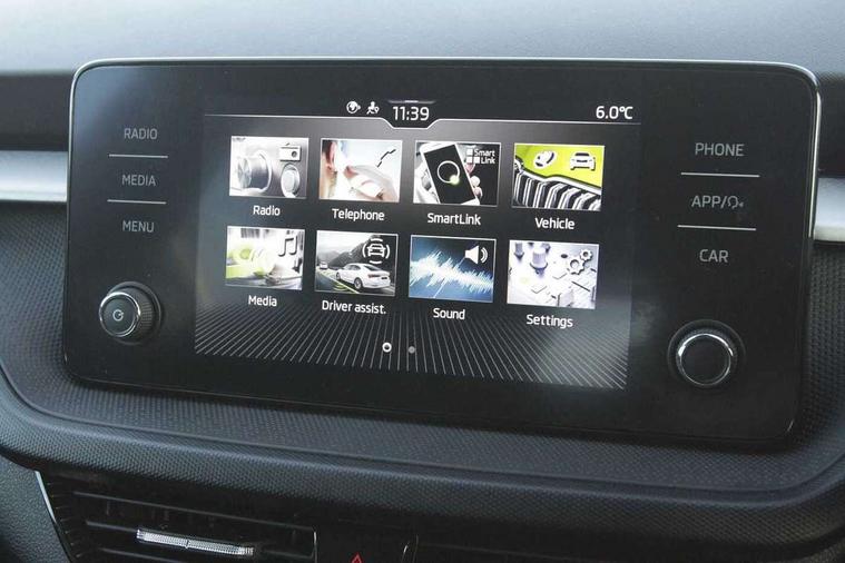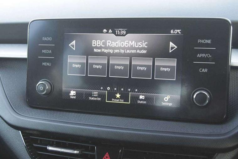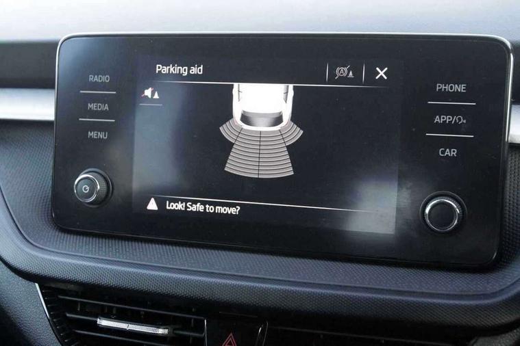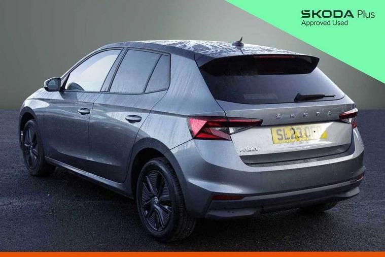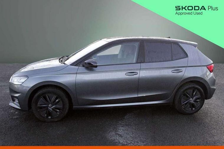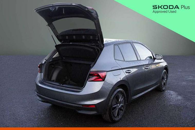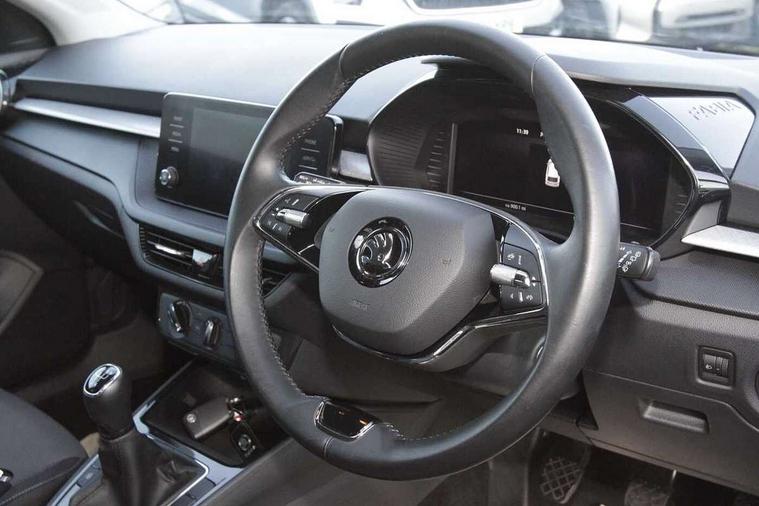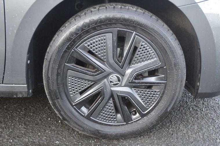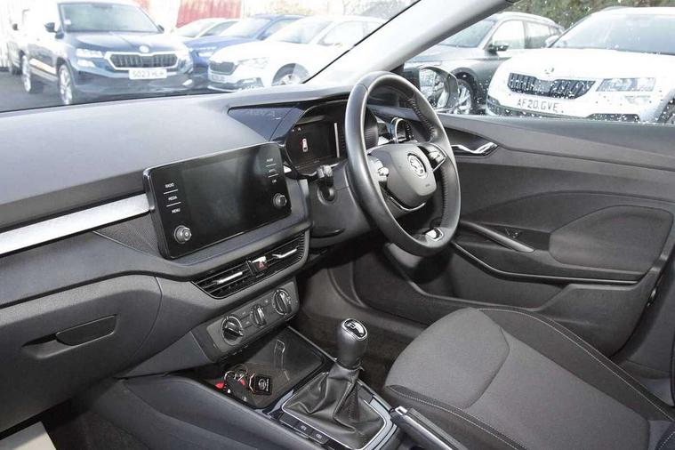 Bluetooth connection, Driver alert system - DAS, Electromechanical power steering, Exterior temperature gauge, Lane assist including road edge detection, Service interval indicator, Virtual cockpit with 10.25" colour display, 2x USB-C in the front (for data transmission and charging), 6 Speakers (4 in front and 2 in rear), Auxiliary socket for external MP3 player, Bolero radio with 8" colour display, DAB digital radio reception, Basic rear lights, Body coloured bumpers, Dimming rear view mirror with black frame, Door mirror integrated indicators, Electrically adjustable and heated door mirrors, Electrically adjustable front windows with function auto up/down, Front window wiper intermittent control, Headlight range control - Automatic, Ice scraper in fuel cap, LED daytime running lights with coming and leaving home feature, Mechanical adjustable rear windows, Privacy glass, Rear LED fog light, Rear side wing doors, Rear window wiper with washing nozzles, Roof colour door mirrors, Roof mounted spoiler, SKODA tailgate lettering in chrome, Third brake light, 3 rear headrests, Backrest split and folding, Central console with fixed cup holder and storage box, Chrome handbrake release button, Fabric upholstery, Gearshift knob/handle in leather, Grain satin black interior door handles, Hand brake lever handle in leather, Height adjustable front headrests, Height adjustable steering wheel, ISOFIX and TopTether anchorage points to the outer rear seats, ISOFIX and TopTether on the front passenger seat, Luggage compartment lighting, Pollen filter, Rear seat bench unsplit, Single front passenger seat, Storm grey headlining, Sun visors with mirror and airbag label on passenger side, Ticket holder, Umbrella in drivers door, 3-point height adjustable front seats belts with pretensioner and force limiter, Automatic warning lights in case of crash, Driver and passengers airbag with switch off function, e-Call+, ESC including ABS, MSR, ASR, EDS, HBA and XDS, Front and rear seat belt warning, FRONT ASSIST (AEB City and AEB Inter Urban), Front side airbags, Head airbags, One tone horn, Pedestrian protection, Three rear 3-points safety seat belts with pretensioner and force limiter including stop function for outer rear seat belts, Tyre pressure monitoring system, Anti-theft alarm system including immobiliser, interior monitoring, backup horn, and towing protection, Anodized cross line upper decorative trim, Colour Edition air vents, Grain satin black central console cover, Grain satin black lower decorative trim, Satin black door and side trim panel in front, Anti-theft wheel bolts protection, Super-low rolling resistance tyres,