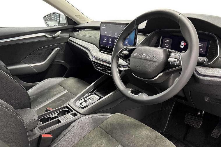 1x USB Typc C port in rear view mirror, 4x USB Type C ports - 2x in front centre console and 2x in rear (45W), Drive mode selection, Driver fatigue sensor, eCall emergency system, Electro-mechanical power steering, Front assist system, Traffic jam assist, Traffic sign recognition, Turn Assist, Virtual Cockpit - 10.25" digital display, Voice control system, Wireless charging (15W) with cooling function, Wireless SmartLink for Apple CarPlay and Android Auto, 13" touchscreen display with navigation, DAB Digital radio, Aero front windscreen wipers with intermittent function, Auto dimming rear view mirror, Body colour bumpers, Body colour door mirrors and handles, Chrome grille surround, Chrome strip in lower front bumper, Chrome window surrounds, Electric front and rear windows, Heated rear windscreen, High level third brake light, Ice scraper in fuel cap, LED daytime running lights, LED Headlights, Logo projection in front doors, Rain and light sensors, Rear fog light on one side, Rear privacy glass, Rear side wing doors, 12 volt socket in boot, 3 rear headrests, 3 seat bench in 2nd row, 4 foldable roof handles, Boot net programme, Front head restraints, Heated front seats, Illuminated glovebox, Interior door handles in dark chrome, Jumbo Box storage, Luggage compartment lighting x2 lights, Mechanical rear seat release from boot, Parcel shelf - folding, Single front passenger seat, Steering wheel in black leather with black stitching, Storage compartments in left and right of boot, Sun visors with mirrors, Sunglasses storage, Ticket holder, Umbrella in door panel, Unsplit rear bench seat, split folding backrest with centre armrest with cupholder, Comfort package - Octavia, 3x3 point rear seat belts, Alarm with interior monitoring, tilt sensor and back up horn, Curtain airbags and front side airbags, Driver and front passenger airbags, Drivers knee airbag, Electronic parking brake, ESC including ABS, EBV, MSR, ASR, EDS, HBA, DSR, Front central airbag, Hill hold assist, ISOFIX on front passenger seat and outer rear seats, Passenger airbag deactivate switch, Three point seat belts in front and rear, Two tone horn, Tyre pressure monitor, Visual and acoustic seat belt reminder, Warning reflectors in front door, Anti-theft wheel bolts, Keyless start/stop, Remote central locking, Chrome air vent surrounds,