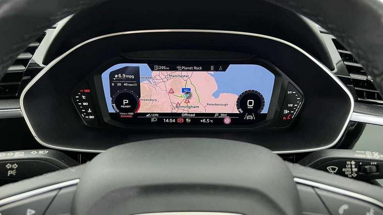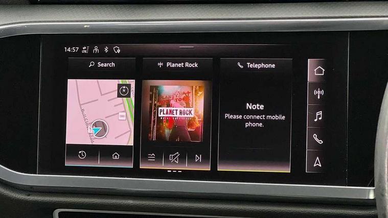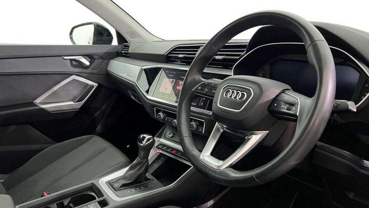 Amazon alexa Integration, Audi drive select, Audi lane departure warning, Audi Virtual Cockpit - 10.25" display, Bluetooth interface, Camera based traffic sign recognition, Legal emergency call, MMI Navigation Plus with high resolution 10.1 inch touchscreen colour display, Power operated tailgate, Progressive steering, Service interval indicator, Smartphone interface includes wireless Apple carplay/Android Auto, Start stop system with recuperation, Voice control system with natural language interaction, Standard suspension, 2 USB-C ports with charge and data functions, 6 passive loudspeakers, DAB digital radio module, Acoustic windscreen, Auto dimming frameless rear view mirror, Black roof rails, Body colour door mirrors, Diffuser in grained anthracite, Electrically folding, adjustable and heated door mirrors with integrated LED side indicators and kerb view function for passenger side, Exterior bumper with wheel arch trims and side sill trims in grained black matt, Front and rear electric windows, Grained radiator protective grille, Halogen rear lights, LED headlights with LED daytime running lights, Rain and light sensors, Rear side wing doors, Rear wiper, Third brake light, Variable front intermittent wipers, 12V socket in rear centre console, 3 seat bench in 2nd row, 3 spoke multi-function leather steering wheel, 40:20:40 folding with manual adjustment for 60:40 forwards/backwards position and backrest angle, Dual zone electronic climate control, Front and rear floor mats, Front and rear headrests, Front and rear roof module including reading lights, Front centre armrest, Glove compartment lighting, Height and reach adjustable steering wheel, ISOFIX child seat mounting for front passenger with airbag deactivation and outer rear seat including top tether attachment point for outer rear seats, Luggage compartment light, Lunar silver cloth headlining, Manual front seats with height adjustment, Single front passenger seat, Stainless steel luggage compartment sill finisher, Non smoking pack - Q3, 3x3 point rear seatbelts, 6 airbags - Driver, front passenger, curtain and side windows, Audi pre-sense front with pedestrain and cyclist recognition, Electrically operated child locks on rear doors, Electromechanical parking brake, Electronic stabilisation control including ABS, ASR and EDL, Front seatbelt reminder, Hill descent control, Hill hold assist, Pre sense basic, Seatbelt monitoring, Tyre pressure warning, Warning triangle and first aid kit, Anti theft alarm, Anti theft wheel bolts, Immobiliser, Remote central locking, Detail dashboard around MMI touch colour display in glass look, black with surround in aluminium look, Micrometallic silver inlay, 17" 5 twin spoke design alloy wheels,