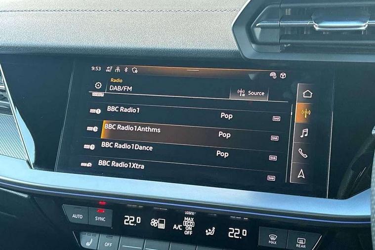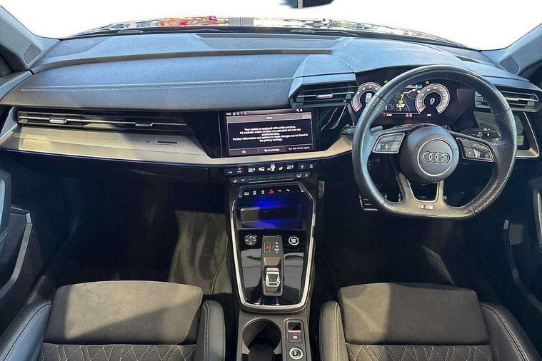 Audi connect emergency call and service, Audi drive select (Auto, Comfort, Dynamic, Efficiency and Individual), Audi smartphone interface, Audi virtual cockpit plus - 12.3" dynamic digital instrument cluster, Automatic start/stop system with recuperation, Bluetooth interface, Collision avoidance assistant, Electromechanical power speed sensitive steering, Lane departure warning system, MMI Navigation Plus with high resolution 10.1" colour touch screen display, Service indicator, Voice control system with natural language interaction, Sports suspension, 2x USB Type C ports (for charging and data transfer), 6 passive loudspeakers, CD player, DAB Digital radio, 3rd brake light, Acoustic glass windscreen, Audi matrix LED headlights, LED rear lights, dynamic front and rear indicators and headlight cleaning system, Auto dimming frameless rear view mirror, Electrically adj heated/folding + automatically dimming exterior mirrors + automatic kerb side function for passenger side exterior mirror, Front electric windows, Illuminated door sills with aluminium inserts at the front with S logo, Integrated LED indicators in door mirrors, LED daytime running lights, Light and rain sensors, Model and engine designation badges at rear, Privacy glass - dark tinted rear window, rear door and side windows, Rear boot, Rear electric windows, Rear side wing doors, S roof spoiler, 12V socket and storage compartment in front centre console, 3 seat bench in 2nd row, 4 way electrically adjustable lumbar support for driver and front passenger, 40/20/40 split folding rear seat bench with cupholder, Black cloth headlining, Dual zone electronic climate control, Electrically adjustable front seats, Front and rear centre armrest in leather, Front and rear headrests, Front/rear floor mats, Heated front seats, Height and reach adjustable steering wheel, Illuminated vanity mirror, Interior lighting - glove compartment light and right hand side, Luggage compartment floor covering, Manual boot compartment lid, Single front passenger seat, Stainless steel pedals and front footrest in black, Aluminium interior elements pack - A3, Black styling pack - A3/S3, Dinamica microfibre/mono.pur 550 artificial leather pack - A3 Saloon, Extended ambient lighting pack - A3/S3 Saloon, LED interior lighting pack - A3 Saloon, 3x3 point rear seat belts, Driver and front passenger airbag with passenger airbag deactivation, Electronic Stabilisation Control (ESC) including ABS, ASR and EDL, First aid kit with warning triangle and 2 safety vests, Front side airbags with head airbags and interaction airbag, Hill hold assist, Pre-sense front with pedestrian and cyclist detection, Seatbelt monitoring, Tyre pressure loss indicator, Anti theft alarm, Anti-theft wheel bolts, Electronically operated child locks, Immobiliser, Remote control central locking, Aluminium air vent surrounds, Aluminium trim elements, Dark spectrum aluminium inlays, accent surfaces in the dashboard and centre console in platinum grey silk effect paint finish, 19" 5 arm trapezoid design alloy wheels in matt grey with diamond cut finish,