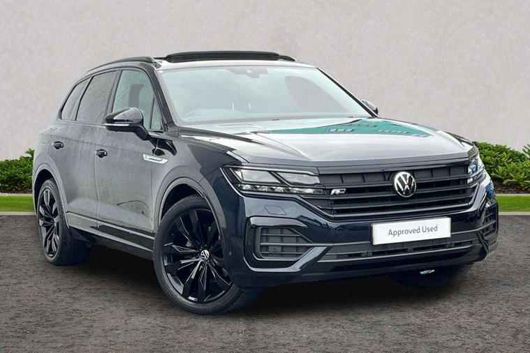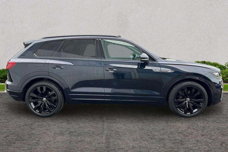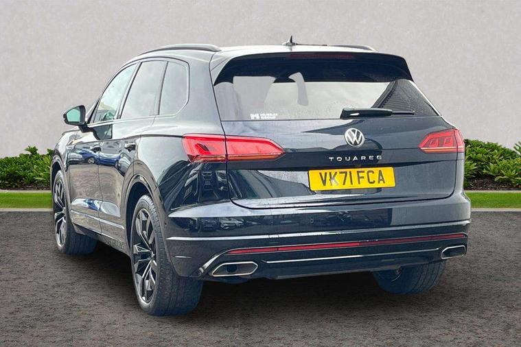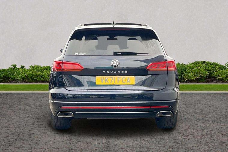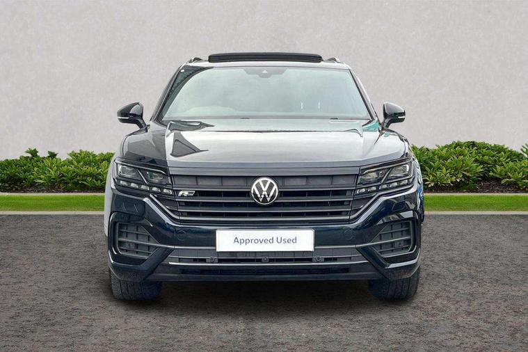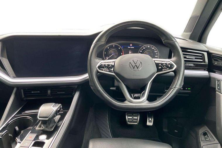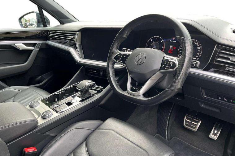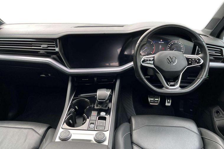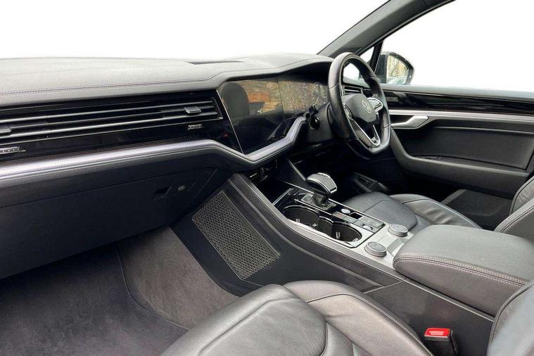 2D/3D map view, ACC - Adaptive cruise control with front assist, forward collision warning, distance monitoring, city emergency brake and speed limiter, Apple car play/Android Auto, Audible and visual fatigue detection system, Bluetooth hands free telephone connection, Car information display, Drive select with Damper control, Driver alert system, Dusk sensor, Dynamic road sign display camera controlled system with visual warning for traffic and road signs, eCall emergency system, Fully electric tailgate + keyless entry and start, Instrument cluster, MirrorLink, Multifunction camera with lane assist, Multifunction computer premium with 7" colour display, One touch indicators with repeat function, Service interval indicator, Speed sensitive power steering, Start/stop system with regenerative braking, Tailgate power latch, Think blue trainer driver tips and journey analysis, Traffic sign recognition, Voice control system, Wireless Smartphone charger, Torsen limited slip differential, DAB Digital radio, Dynamic navigation based on TMC+, Gesture control for infotainment system, Multi device interface (MDI) with illuminated USB-C connection, Music playback - MP3, WMA and AAC files, SD card slot, Simultaneous pairing of 2 compatible mobile devices, SMS functionality - read, compose and send SMS messages using touch-screen display, Title and cover art display, Volkswagen media control, Adaptive low beam for urban and motorway use, Auto dimming rear view mirror, Automatic coming/leaving home lighting function, Automatic headlights, Black anodised roof rails, Black door mirrors, Black rear diffuser, Black side window surrounds, Black upper and lower grille louvres extending into headlights and radiator grille, Body colour door handles, Body coloured wheel arches, C signature gloss black front air intake, Chromed tailpipe on the left and right integrated in the bumper with trapezoid design, Dynamic headlight range control, Electric front tilt/slide panoramic sunroof and fixed rear sunroof, Electrically power adjustable, heated, folding, auto dimming, front passenger exterior door mirror lowering function, Front and rear electric windows, Galvanised body, Gloss black finish B pillar, Gloss black rear diffuser, Headlight washers, Heat insulating glass in side and rear windows, Heated windscreen washer jets, IQ.Light-LED matrix headlight, daytime running light with dynamic cornering light and indicator, LED rear fog light, LED rear number plate lights, Plastic scuff plates in door apertures, Poor weather light, Puddle lights, Rain sensor, Rear wiper, 12V socket in front and rear centre console and boot, 2 Coat hooks on B pillar, 3 rear head restraints, 3 spoke sport heated leather multi-function sports steering wheel with gear shift paddles - generation 2, 4 way adjustable front head restraints, 4 way electric lumbar support for driver and front passenger, 4 zone climate control, 40:20:40 split folding slide/recline rear seat, B pillar vents, Black lower edge of door extending sills, Branded points of interest, Double sun visor for drivier and passenger with LED illuminated vanity mirrors, Electric luggage compartment cover, Folding rear centre armrest with 2 cupholders, Front + rear carpet mats, Front centre armrest with storage box, Gear shift indicator, Height/reach adjust steering wheel, Illuminated air conditioned glovebox, Isofix preparation for 2 rear child seats, Jack and tool kit, Leather trimmed gear knob with gloss black inlay/aluminum trim, Leatherette door trim, LED luggage compartment lighting, Load through provision, Luggage compartment with load lashing rings, Plastic loading edge protection, Rear seat remote release levers, Soul black headlining, Stainless steel pedals, Innovision cockpit pack - Touareg, 3 point front seatbelts with pre-tensioners, ABS, Active bonnet, Automatic post collision braking system, Curtain airbags, Driver/Front Passenger airbags, EBD + Brake Assist, EDL, Electronic parking brake with auto hold, ESC with ASR, Front seat side impact airbags, Hill descent control, Hill start assist, Passenger airbag deactivate switch, Seatbelt warning lamp and buzzer, Three 3 point rear seatbelts, Two tone horn, Volkswagen roadside assistance, Warning triangle and first aid kit, Alarm with interior monitoring in cab, backup horn and towing protection, Child security locks for front and rear doors, Electronic engine immobiliser, Remote central locking, Black decorative trims on the side windows, High gloss black centre console,