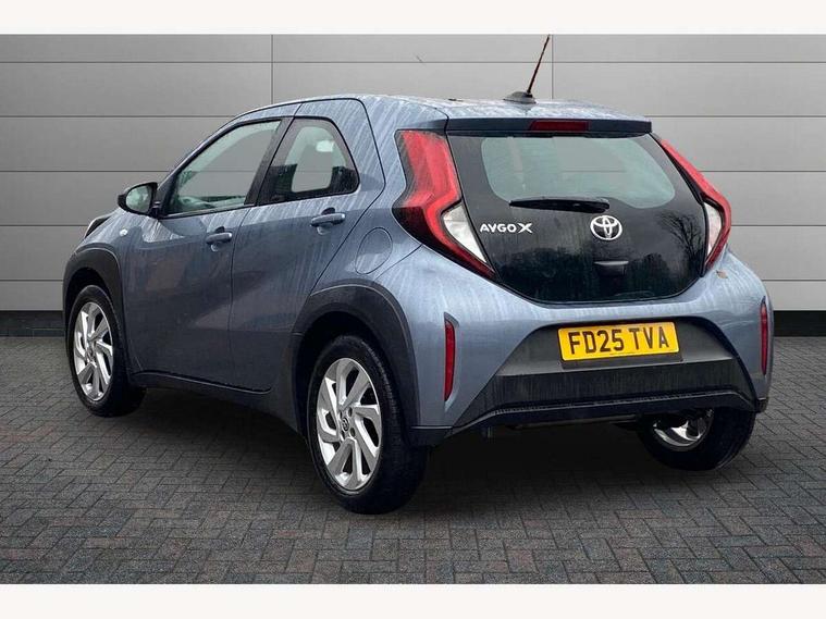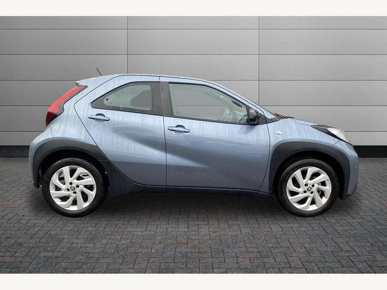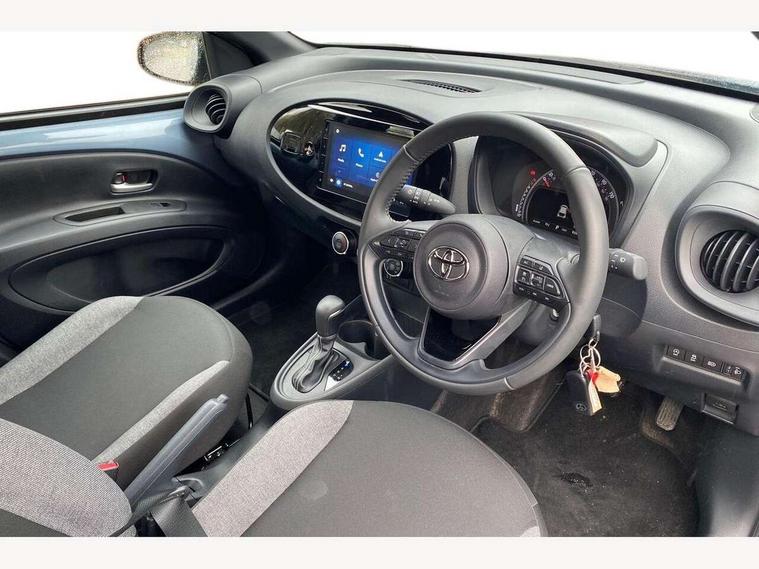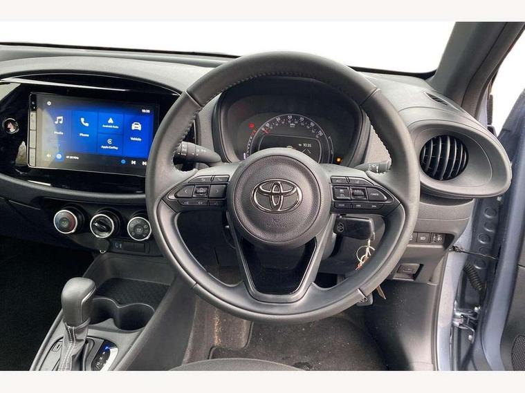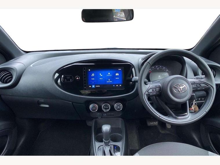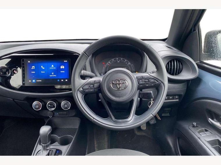 4.2" TFT colour screen, Adjustable speed limiter, Analogue speedometer, Bluetooth connectivity, Digital tachograph, Driver attention alert system, eCall emergency call system, ECO-driving indicator, Electric power steering, Intersection turn assist, Key reminder warning, Noise reduction kit, Pre collision system with emergency steering assist, Reversing camera with static guide lines, Smart phone integration with Apple car play/Android Auto, Speed limit display, Start and stop, Vehicle Stability Control (VSC), 4 speakers, 9" HD multimedia display touch screen with Toyota smart connect, DAB digital audio broadcast, USB connector, Auto headlights, Automatic headlights cut-off, Bicycle towing hook, Black lower front grille, Black rear bumper, Black side protection mouldings, Black upper front grille, Black wheel arch mouldings, Body colour door handles, Body coloured front bumper, Boot door scuff plate, Electric heated door mirrors, Follow me home headlights, Front power windows, Gloss black door mirrors, Headlight cut-off reminder, LED daytime running lights, LED front light guide, LED High mounted stop lamp, Manual day/night rear view mirror, Manual headlight levelling, Pagoda roof, Power adjustable door mirrors, Power back door, Projector halogen headlights, Rain sensor, Rear combination lights LED bulb type, Rear side wing doors, Rear windscreen defogger, Rear windscreen wiper, Short antenna, Variable intermittent windscreen wipers, 12v power outlet - front, 2 seat bench in 2nd row, 3 spoke leather steering wheel, 50/50 split folding rear seat, Adhesive roof headlining, Adjustable speed limiter switch on steering wheel, Audio and telephone switches on steering wheel, Black insert on steering wheel, Boot light, Centre room light, Chrome interior door handles, Chrome surround on air conditioning buttons, Clean air filter, Fabric upholstery, Floor mats, Front and rear cup holders, Front head rest deco art, Front head restraints, Gear shift indicator, Height adjustable driver seat, Intelligent adaptive cruise control switch on steering wheel, ISOFIX child restraint system on rear seats, Lane departure alert switch on steering wheel, Leather gearshift knob, Light grey roof lining, Manual air conditioning, Manual tilt steering wheel, Manually reclining and sliding driver seat, Manually reclining and sliding front passenger seat, Multimedia switches on steering wheel, Pollen filter, Rear door pockets, Rear head restraints, Resin console box storage, Satin silver insert on gear shift knob, Silver stitching on gear shift knob, Single compartment glovebox with lights, Single front passenger seat, Soft tonneau cover, Sun visors with mirror on driver and passenger side, Voice recognition switch on steering wheel, Toyota safety sense pack - Aygo X, Anti lock braking system + Electronic brake force distribution, Child safety door lock, Emergency brake light signal (EBS), Hill start assist control (HAC), Passenger airbag on/off switch, Seat belt reminder for front and rear seats, Supplement restraints system (SRS) - 6 airbags, Traction control, Tyre pressure warning system, Immobiliser, Remote power door locks, Black air vent surround, Black wheel centre caps, Tyre repair kit,