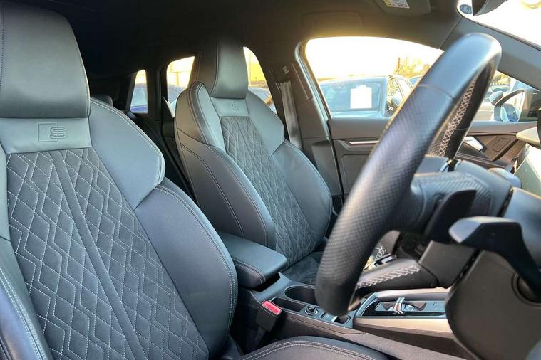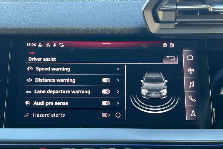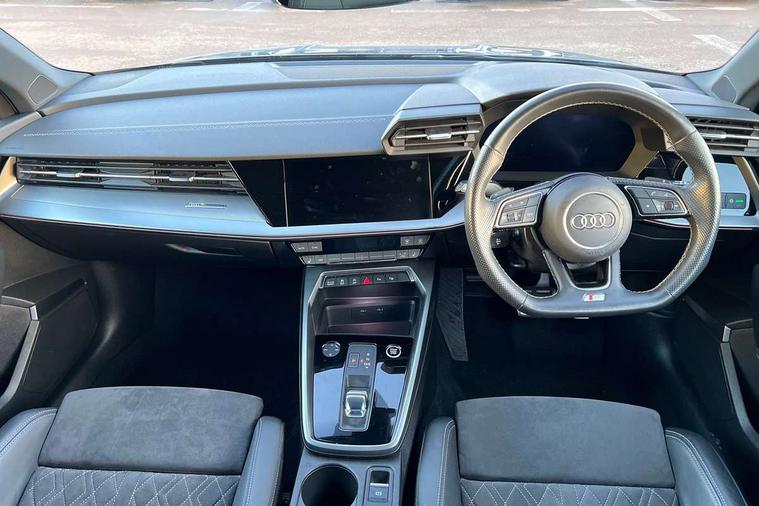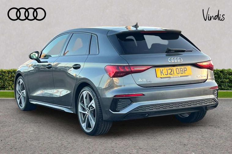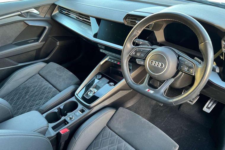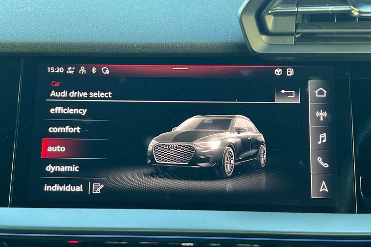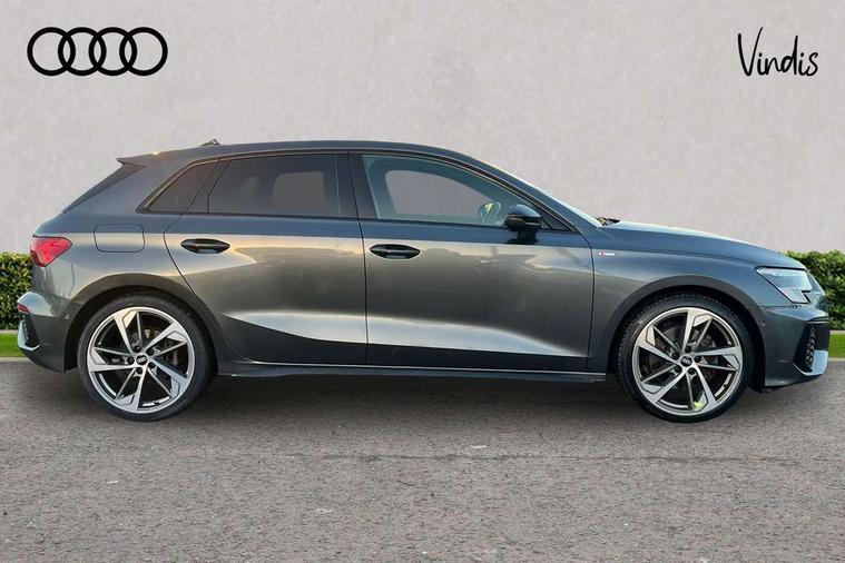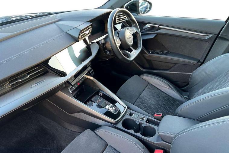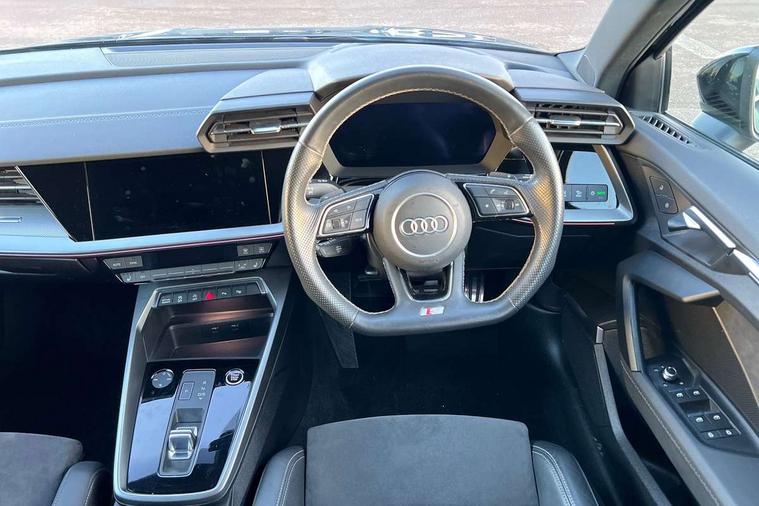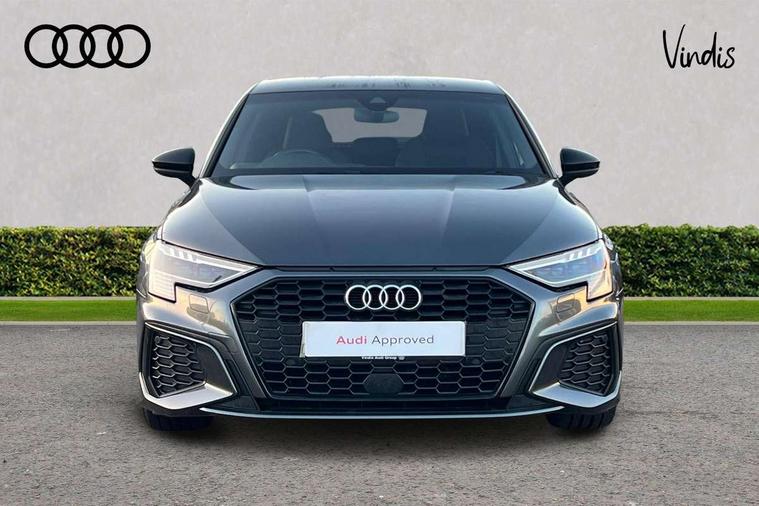 Audi connect emergency call and service, Audi drive select (Auto, Comfort, Dynamic, Efficiency and Individual), Audi smartphone interface, Audi virtual cockpit plus - 12.3" full HD resolution dynamic digital instrument cluster, Automatic start/stop system with recuperation, Bluetooth interface, Collision avoidance assistant, Electromechanical power speed sensitive steering, Lane departure warning system, MMI Navigation Plus with high resolution 10.1" colour touch screen display, Service indicator, Trip computer, Voice control system with natural language interaction, Sports suspension, 2xUSB-C connection with data and charging functions, 6 passive loudspeakers, DAB Digital radio, Acoustic glass windscreen, Audi matrix LED headlights with LED rear lights + dynamic front and rear indicators, Auto dimming frameless rear view mirror, Body colour front spoiler blade, Electrically adj heated/folding + automatically dimming exterior mirrors + automatic kerb side function for passenger side exterior mirror, Front electric windows, Headlight washers, Illuminated aluminium inserts front door sills with S logo, Integrated LED indicators in door mirrors, LED daytime running lights, Light and rain sensors, Privacy glass - dark tinted rear window, rear door and side windows, Rear diffuser in grained matt black, Rear electric windows, Rear side air outlets in grained matt black, Rear wiper, S roof spoiler, 12V socket and storage compartment in front centre console, 4 way electrically adjustable lumbar support for driver and front passenger, 40/20/40 split folding rear seat bench with cupholder, Black cloth headlining, Dual zone electronic climate control, Electrically adjustable front seats for driver's side, Front and rear centre armrest in leather, Front and rear headrests, Front/rear floor mats, Heated front seats, Height and reach adjustable steering wheel, Interior lighting - glove compartment light and right hand side, Luggage compartment floor covering, Seat side bolsters, Stainless steel pedals and front footrest, Aluminium interior elements pack - A3 Sportback, Black styling pack - A3 Sportback, Dinamica microfibre/mono.pur 550 artificial leather pack - A3 Sportback, Extended ambient lighting pack - A3 Sportback, LED interior lighting pack - A3 Sportback Edition 1/Vorsprung, 3x3 point rear seat belts, Driver and front passenger airbag with passenger airbag deactivation, Electronic Stabilisation Control (ESC) including ABS, ASR and EDL, First aid kit with warning triangle and 2 safety vests, Front side airbags with head airbags and interaction airbag, Hill hold assist, Pre-sense front with pedestrian and cyclist detection, Seatbelt monitoring, Tyre pressure loss indicator, Anti theft alarm, Anti-theft wheel bolts, Electronically operated child lock, Immobiliser, Remote control central locking, Accent surfaces in the dashboard and centre console in platinum grey silk effect paint finish, Dark spectrum aluminium inlays, 19" 5 arm trapezoid design alloy wheels in titanium matt grey with diamond cut finish,