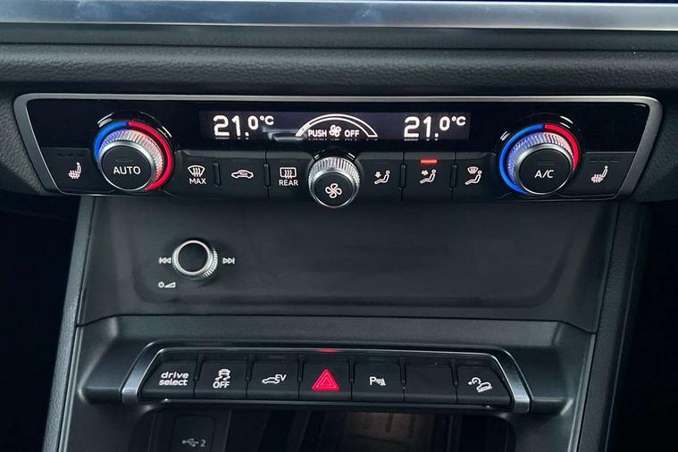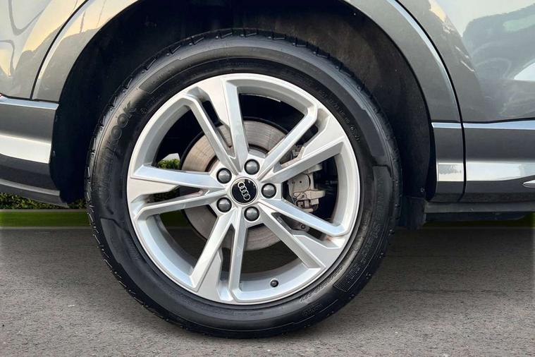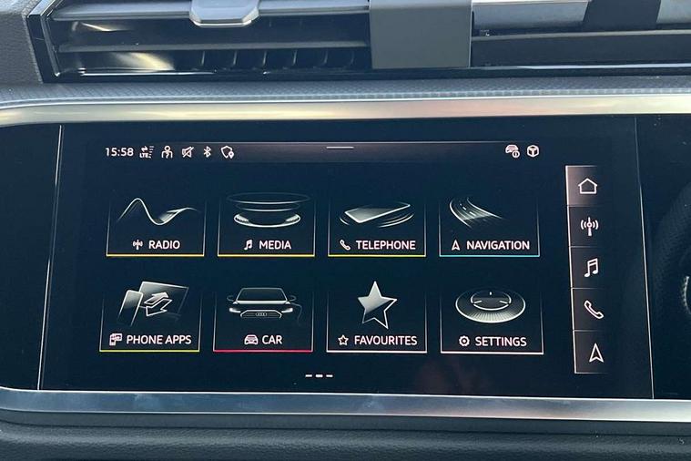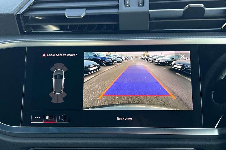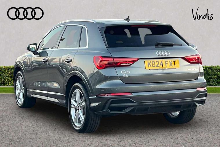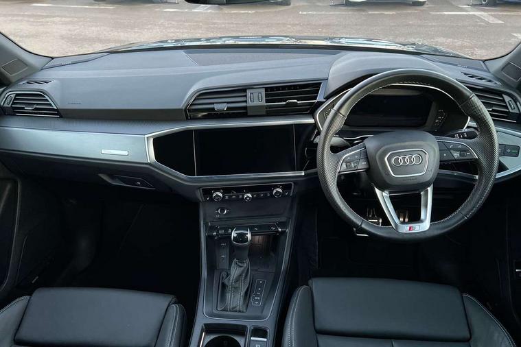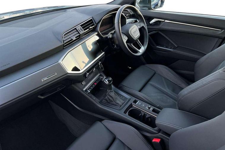 Amazon alexa Integration, Audi drive select, Audi lane departure warning, Audi Virtual Cockpit - 10.25" display, Bluetooth interface, Camera based traffic sign recognition, Legal emergency call, MMI Navigation Plus with high resolution 10.1 inch touchscreen colour display, Power operated tailgate, Progressive steering, Service interval indicator, Smartphone interface includes wireless Apple carplay/Android Auto, Start stop system with recuperation, Voice control system with natural language interaction, 3 pin 10 amp domestic charging cable, 3.6 kw On-board charger, Type 2 mode 3 32 amp charging cable, Type 2 socket for AC charging, 2 USB-C ports with charge and data functions, 6 passive loudspeakers, DAB digital radio module, Acoustic windscreen, Aluminium roof rails, Aluminium window trim, Anthracite black radiator grille, Auto dimming frameless rear view mirror, Body colour front spoiler blade, Body coloured bumpers, Electrically folding, adjustable and heated door mirrors with integrated LED side indicators and kerb view function for passenger side, Front and rear electric windows, Front fog lights, Front side air inlets in matt platinum grey, Grille vertical bars in aluminium silver/Matt, High gloss black finish B and C pillars, LED Dynamic rear indicators, LED headlights with LED daytime running lights, LED rear lights, LED third brake light, Privacy glass dark tinted rear and rear-side windows (from B-pillar backwards), Rain and light sensors, Rear diffuser grille in grained matt black, Rear diffuser strip in matt anthracite black, Rear side wing doors, Rear wiper, S line badges on front wings, S Line front and rear bumpers, Side skirt insert in matt Platinium grey, Variable front intermittent wipers, 12V socket in rear centre console, 3 seat bench in 2nd row, 3 spoke leather multifunction steering wheel features S badging and grips in perforated leather with contrast stitching, 40:20:40 folding with manual adjustment for 60:40 forwards/backwards position and backrest angle, Adjustable rear seat bench/backrest with centre armrest and cupholder, Black cloth headlining, Dual zone electronic climate control, Front and rear black floor mats with contrast stitching in rock grey, Front and rear headrests, Front and rear roof module including reading lights, Front centre armrest, Glove compartment lighting, Height and reach adjustable steering wheel, Illuminated door sill trims with S logo, ISOFIX child seat mounting for front passenger with airbag deactivation and outer rear seat including top tether attachment point for outer rear seats, Luggage compartment light, Manual front seats with height adjustment, Perforated leather gearknob, Single front passenger seat, Stainless steel luggage compartment sill finisher, Stainless steel pedals, Ambient lighting pack - Q3, Non smoking pack - Q3, 3x3 point rear seatbelts, 6 airbags - Driver, front passenger, curtain and side windows, Audi pre-sense front with pedestrain and cyclist recognition, Electrically operated child locks on rear doors, Electromechanical parking brake, Electronic stabilisation control including ABS, ASR and EDL, Front seatbelt reminder, Hill descent control, Hill hold assist, Pre sense basic, Seatbelt monitoring, Tyre pressure warning, Warning triangle and first aid kit, Anti theft alarm, Anti theft wheel bolts, Immobiliser, Remote central locking, Aluminium look interior elements, Dark matt brushed aluminium inlay, Detail dashboard around MMI touch colour display in glass look, black with surround in aluminium look, Leatherette door armrest, Tool kit, Tyre repair kit,