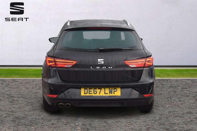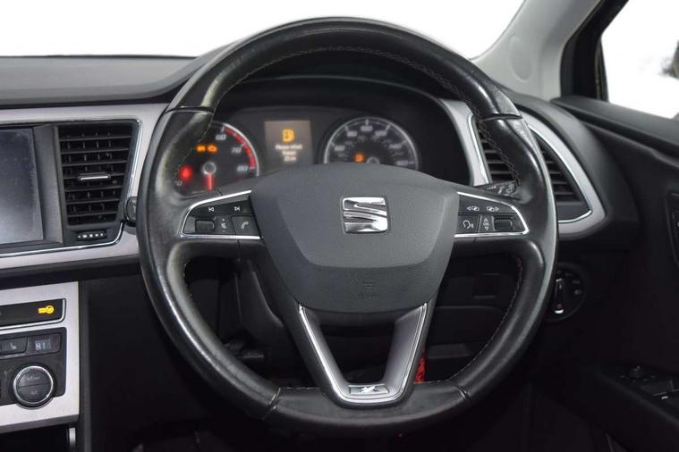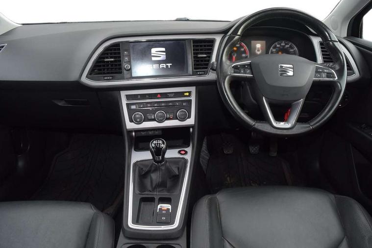 'Lights On' Reminder warning buzzer, 8" touch screen, Bluetooth Handsfree Phone Connection, Front parking sensors, Low fuel warning light, Outside temperature gauge, Rear parking sensors, Remote fuel flap release, SEAT logo boot release, Service interval indicator, Touch screen display, Trip computer, Voice control system, XDS electronic differential lock, 2 USB ports, 2x SD card slot, Auxiliary input socket, Bluetooth audio streaming, Connecting box, DAB Digital radio, Radio/CD + MP3, Steering wheel mounted audio/phone controls, Aluminium front door sills, Body colour door handles, Body coloured bumpers, Body coloured door mirrors, Chrome window surround, Chromed centre radiator grille surround, Dark tinted rear windows, Electric adjustable/heated/folding door mirrors, Electric front/rear windows with one touch/auto up/down, Electric headlamp adjustment, High gloss black finish B and C pillars, LED indicators in door mirrors, Rear wash/wipe, Reverse activated kerb-view adjustment on passenger's door mirror, Twin exhaust pipes, 12v power point in centre console, 3 height adjustable rear headrests, 60/40 split folding rear seat, Active head restraints, Additional heating and ventilation outlet in rear of centre console, Ambient lighting, Boot net, Chrome loading sill, Driver seat lumbar adjustment, Driver/passenger sunvisors with illuminated vanity mirrors, Dual zone climate control, Dust/pollen filter, Front adjustable head restraints, Front armrest with storage box, Front cupholders x 2, Front seat and rear pockets, Front sports seats, Front/rear floor mats, Height/reach adjust steering wheel, Illuminated boot, Illuminated glovebox, Illuminated rear centre console, Instrument lighting with brightness control, Leather handbrake, Leather steering wheel and gear knob, LED reading lights, Luggage compartment cover, Luggage tie-down hooks, Passenger seat height adjuster, Passenger seat lumbar adjust, Rear top tether child seat ISOFIX attachment, Full LED headlight pack - Leon, 3 point seatbelts on all rear seats, ABS + traction control, Child proof door locks, Collision mitigation braking system, Curtain airbags, Driver/Front Passenger airbags, Drivers knee airbag, Electronic parking brake with auto hold, ESP+EBA, Front seatbelt pretensioners, Front Seatbelt warning, Front side airbags, Hill hold control, Passenger airbag deactivation system, Tyre pressure monitoring system, 2 folding remote keys with window open/close function, Engine immobiliser, Keyless entry, Remote central locking + deadlocks, Volumetric alarm with back up horn, Chrome interior trim,