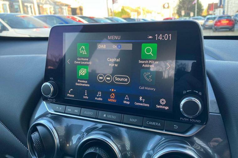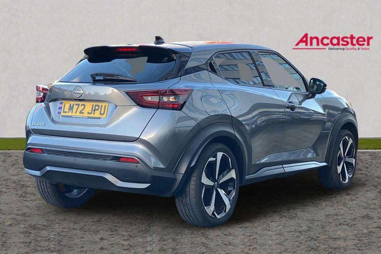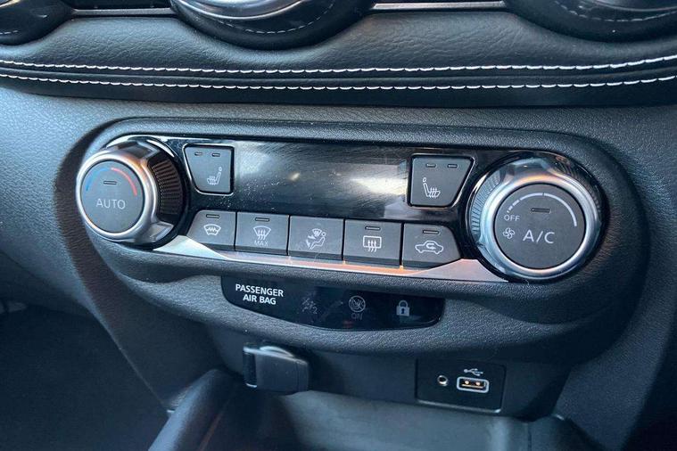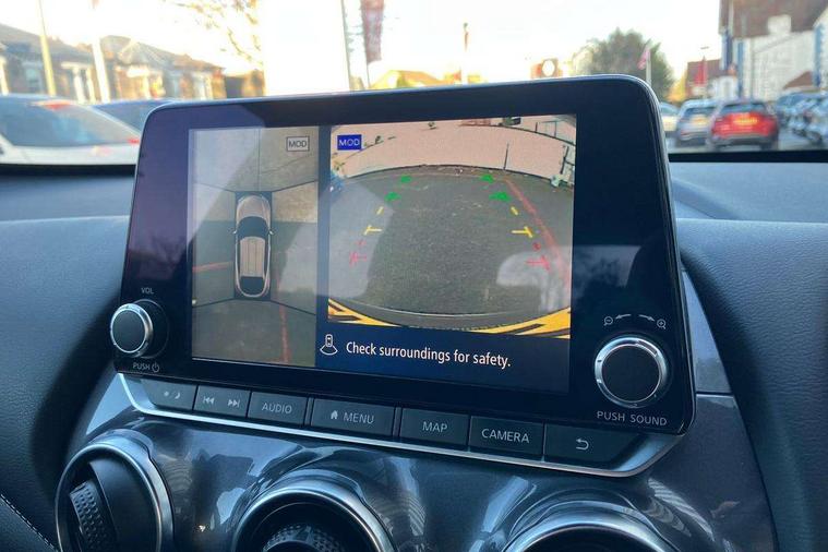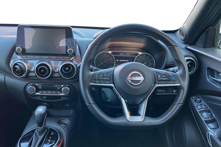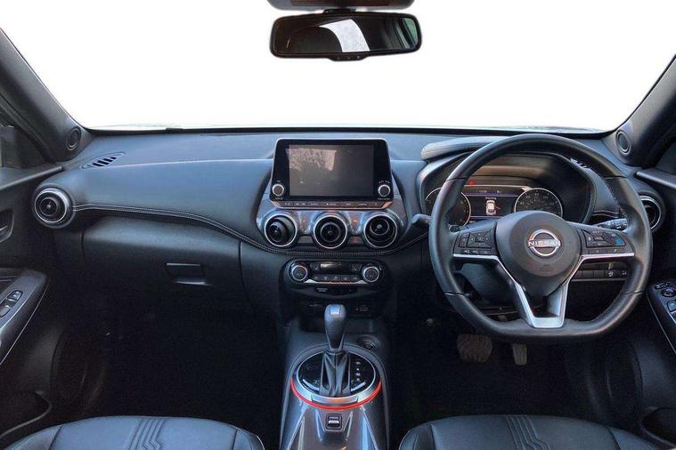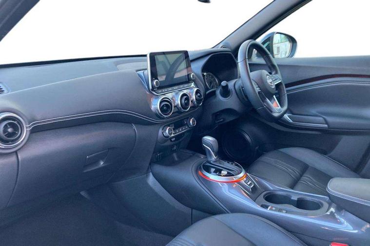 7" full colour TFT screen combimeter, Apple CarPlay and Google Android auto, Drive modes select (Eco, normal and sport), Emergency and breakdown call, Front parking sensor, Idle start/stop system, Intelligent lane intervention, Lane departure warning system, Nissan connect 8" touch screen entertainment system, Nissan connect nav with TomTom traffic, Nissan connect services and Wifi connection, Outside temperature sensor, Power Steering, Rear parking sensor, Traffic sign recognition, Trip computer, Voice recognition, Gasoline particulate filter, 10 Bose speakers 6 speakers and 2 headrest speakers for driver/passenger seats, Bluetooth system, USB, Aux-in and 12V socket, Bose personal sound stage control, DAB Digital radio, Rear console USB port, Auto dimming interior rear view mirror, Auto headlights, Automatic hazard signal with emergency stop signal, Body colour bumpers, Body colour door handles, Electrically adjustable door mirrors with integrated indicators, Follow me home headlights, Front and rear electric window with one touch driver window, Heated and auto folding door mirrors, High beam assist, LED daytime running lights, LED front fog lights, LED headlamps, LED rear fog lamp, LED rear lamps, Rain sensor windscreen wipers, Rear privacy glass, Rear side wing doors, Rear wiper, Thermaclear heated windscreen, Three blink turn signal, 3 height adjustable rear headrests, 3 seat bench in 2nd row, 60/40 split folding rear seat, Automatic climate control, Card holder on driver sunvisor, Door ambient lighting, Driver and passenger sliding and reclining seats, Driver seat back pocket, Driver side rear coat hanger, Driver/passenger sunvisors and vanity mirrors, Front and rear cabin lights, Front armrest, Front door pockets with bottle holders, Front head restraints, Front passenger isofix child seat anchorage point, Front/rear passenger grab handles, Gear console ambient circle lighting, Grey synthetic leather kneepad, Heated front seats, Height adjustable driver's seat, Height adjustable passenger seat, Internal chrome door handles, Leather gearshift knob, Leather steering wheel, Luggage board, Luggage space lighting, Monoform sporty seats, Multifunction steering wheel, Passenger seat back pocket, Rear door bottle holders, Single front passenger seat, Steering wheel mounted gearshift paddles, Synthetic leather upholstery, Telescopic steering wheel adjustment, Two cupholders in front centre console, Two rear isofix child seat anchorage points with top tether, Welcome light and console tray ambient lighting, ProPilot pack - Juke, ABS with EBD and brake assist, Active ride control, Active Trace Control, Driver and passenger airbags, Driver and passenger side airbags, Electric handbrake with auto hold function, Electronic Stability Programme (ESP), Front and rear curtain airbags, Height adjustable seatbelts, Hill start assist, Intelligent emergency braking with pedestrian and cyclist recognition, Rear door child safety locks, Seatbelt reminder for driver/front passenger and rear seats, Single tone horn, Three 3 point rear seatbelts, Traction control, Tyre pressure monitoring system, VDC Dynamic Vehicle Control, Ventilated rear brake discs, Alarm, Immobiliser, Intelligent key and start push button with walk away lock and approach unlock functions, Remote central locking,