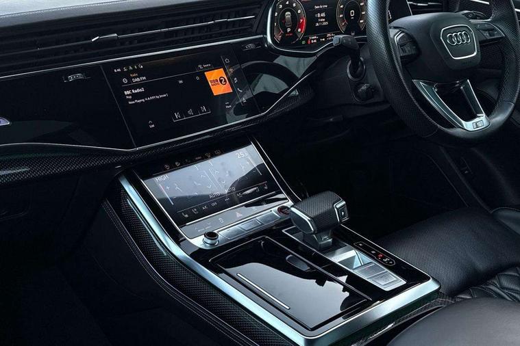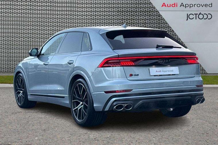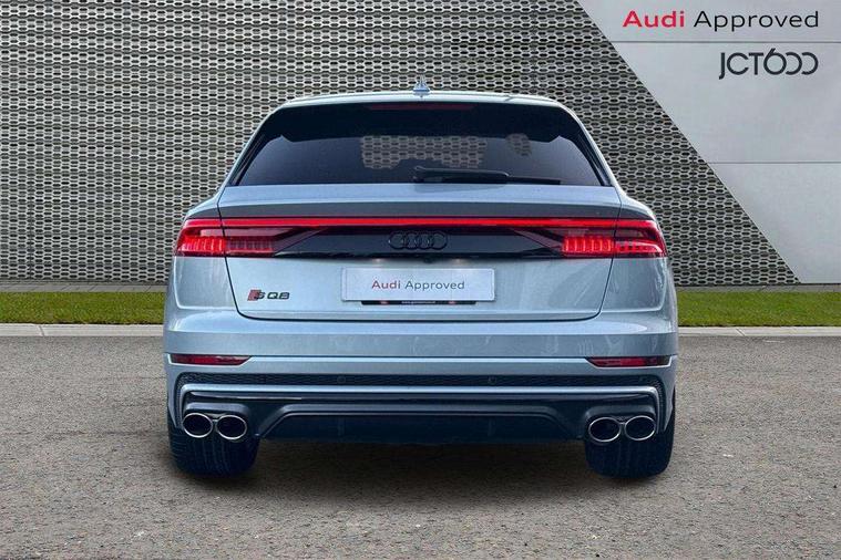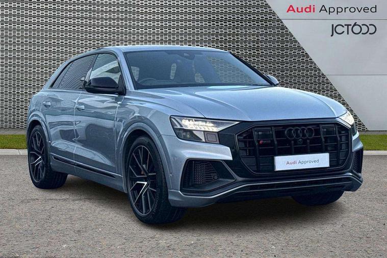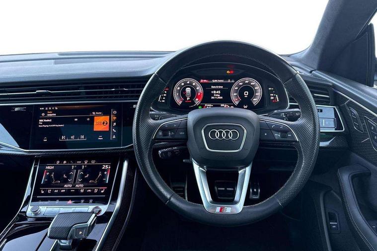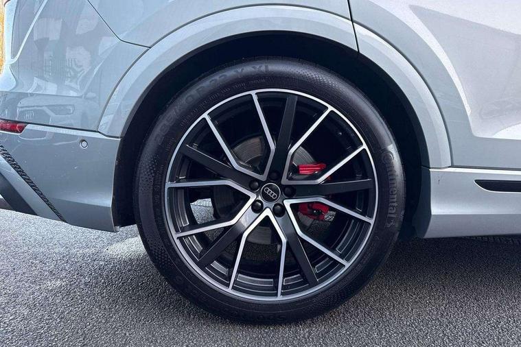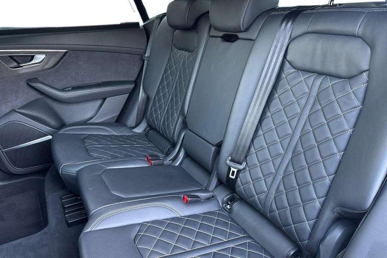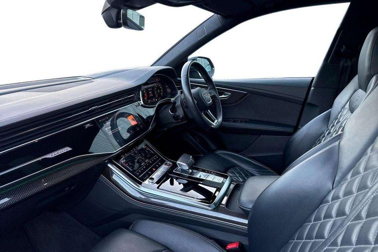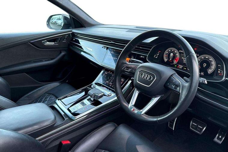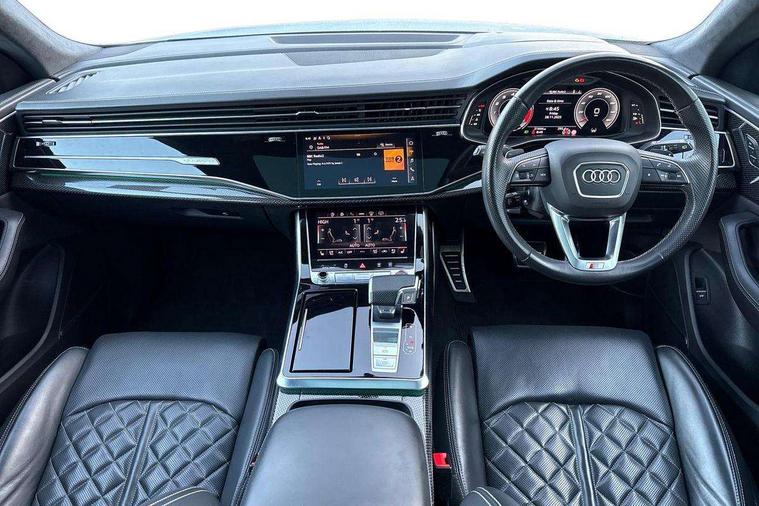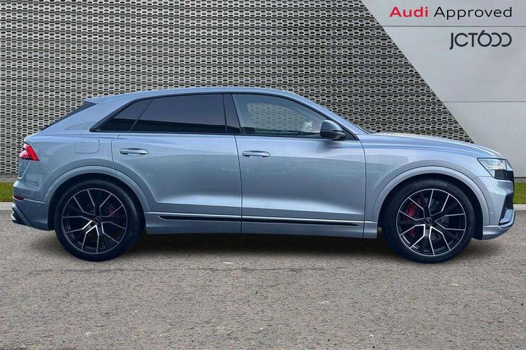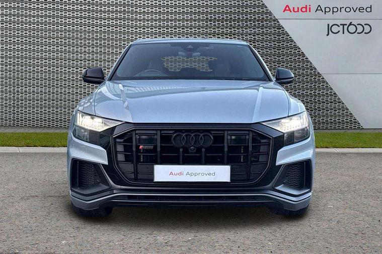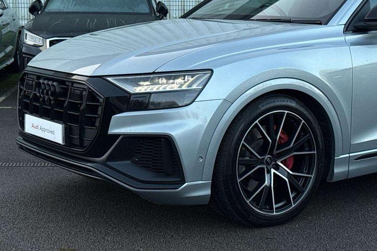 10.1" and 8.6" Dual colour touchscreens, 2 USB C ports with charging functionality in the rear, 360 camera, Adaptive cruise control, All wheel steering, Audi connect safety and service (e-call), Audi connect with Amazon Alexa Integration, Audi drive select, Audi phone box light with wireless charging, Audi side assist, Audi smartphone interface includes wireless Apple carplay/Android Auto, Audi virtual cockpit plus, Automatic start/stop system, Camera based traffic sign recognition, Collision avoidance assistant, Cross traffic assist front and rear, Electro-mechanical PAS, Head up Display, Lane departure warning with emergency assist, Low washer fluid indicator, MMI - Multi Media Interface control system, MMI navigation plus with MMI touch, Natural voice recognition, On board computer, Operating buttons in black, glass look with haptic feedback, Power door closure, Power operated tailgate, Predictive efficiency assistant, Remote park assist plus, Service interval indicator, Turn Assist, 48V Mild hybrid technology, 85 litre fuel tank, Electromechanical active roll stabilisation, Quattro sports differential, S specific Adaptive air suspension, Audi music interface with 2 USB ports with charge and data functions, Aux-in socket, Bang + Olufsen sound system, DAB Digital radio, 3rd brake light, Acoustic windscreen, Adaptive windscreen wipers with integrated washer jets, Audi beam, Audi HD Matrix LED headlights with dynamic front and rear indicators, Auto dimming frameless rear view mirror, Coming/leaving home lighting function, Electric front+rear windows, Electric panoramic glass sunroof, Electrically folding auto dimming/adjustable/heated door mirrors with memory function, LED side indicators and kerb view function for passenger side, Gloss black finish for exterior Audi rings and SQ8 logo, Headlight washers, Heat insulating glass in windshield, High gloss black in side window trims, LED signature daytime running lights, Platinum grey front spoiler lip and diffuser insert with honeycomb grille in black, Privacy glass - dark tinted rear and rear side windows from B-pillar backwards, Rain and light sensors, Rear side wing doors, Rear wiper, S specific dual brach chrome tailpipes on both the left and right, S specific front and rear bumpers, S specific side skirts in matt selenite silver, Side air inlet grilles in matt anthracite black, Styling accents on front bumper in anthracite black, Trim and underbody protection in matt selenite silver, 3 bench rear seats in 2nd row, 3 spoke heated leather multi-function sport steering including paddle shift, 4 zone deluxe automatic climate control, 4-way lumbar support for front seats, 40:20:40 split folding rear bench seat, Audi phone box light, Black dinamica headlining, Comfort front centre armrest, Double sun visor with illuminated vanity mirror on driver and passenger side extendable, Driver and front passenger seat memory function for electrically adjustable front seats, Electric luggage compartment cover, Electric sunblind for the rear side windows and manual sunblind for the rear window, Front head restraints, Front/rear floor mats, Heated front and outer rear seats, ISOFIX child seat mounting for front passenger seat and 2 outer rear seats with top tether child seat mounting for all 3 rear seats, Luggage compartment sill protection in stainless steel, Massage and ventilation function for front seats, Power adjustable steering wheel, Rear centre armrest with 2 cupholders, Rear headrests, Seat cushion displaceable by 100mm in the ratio 60:40, Single front passenger seat, Stainless steel pedals, Tool kit, Valcona leather upholstery + front super sport seats with S embossed logo, Ambient lighting package plus - Q8, Extended leather pack - Q8, 3 point seatbelts on all seats, Audi pre sense basic, Audi pre sense front, Audi pre sense rear, Child locks on rear doors, Driver and front passenger, front side and curtain airbags, Electromechanical parking brake, Electronic Stability Control (ESC) including ABS, ASR and EDL, Exit warning, Front passenger airbag deactivation, Hill descent control, Hill hold assist, Predictive pedestrian protection, Seatbelt monitoring, Traction control, Tyre pressure loss indicator, Warning triangle and first aid kit, Advanced key, Anti theft alarm with tow away protection, Anti-theft wheel bolts and wheel loosening detection, Immobiliser, 22" x 10J 5 V spoke star design alloy wheels in gloss anthracite black, Tyre repair kit,