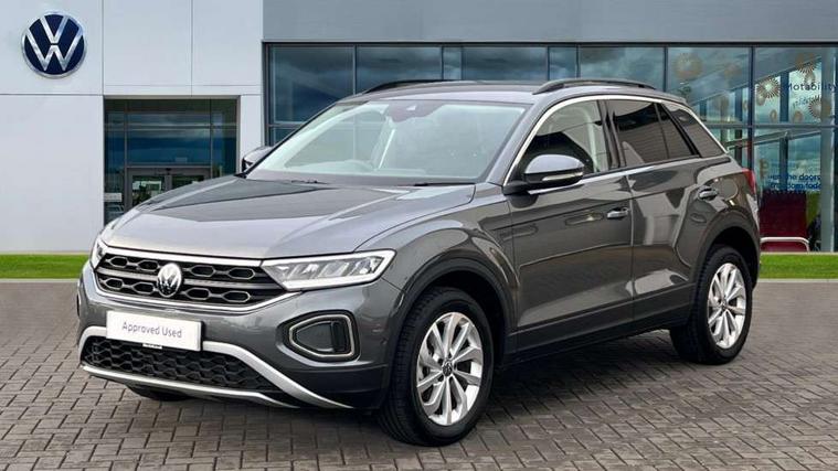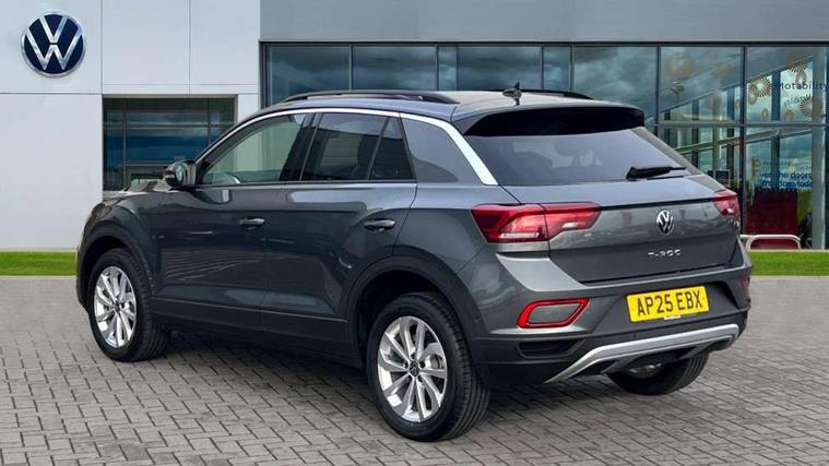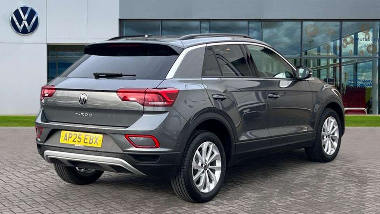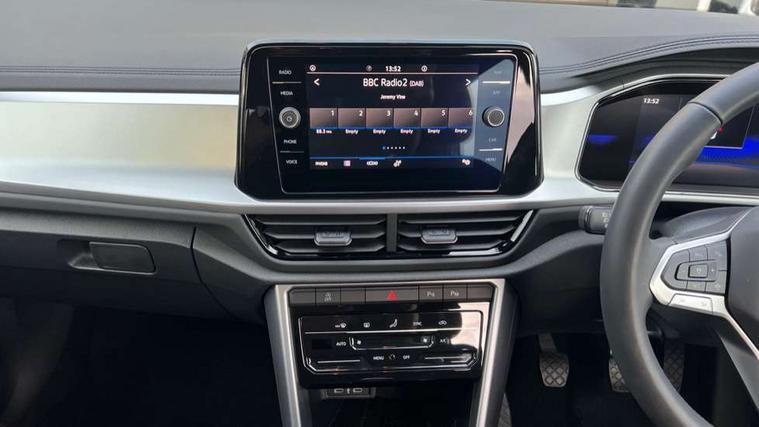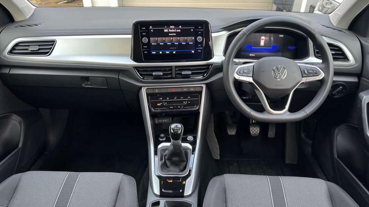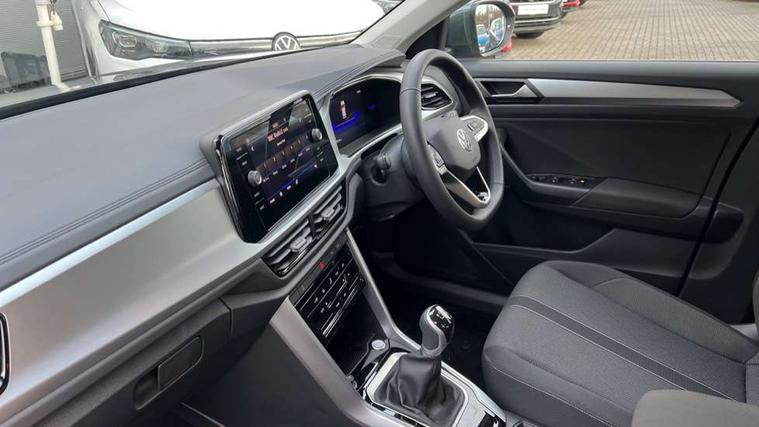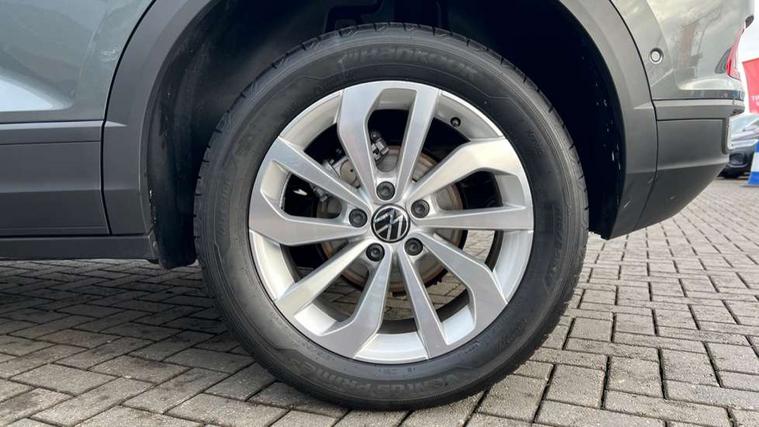 Advanced driver attention and drowsiness monitor, Dynamic road sign display, Emergency call service, Lane keeping system Lane Assist, Mobile phone interface, Modified key software - reduce switch off time for key status change to Long no motion, Online services, Park assist including front and rear parking sensors, Power assisted speed sensitive steering, Rear view camera, Service interval indicator, Tailgate/trunk lid release from outside, Think blue trainer driver tips and journey analysis, Warning sound and light for front seatbelts unfastened, Wireless app connect, Battery regeneration during braking, Front shock absorption, Rear shock absorption chassis with increased ride height, Start/stop function with battery regeneration, DAB Digital radio, Diversity antenna for FM reception, Music playback - MP3, WMA and AAC files, Premium USB cable in choice of either Apple or Android smartphone compatibility, SD card slot, Simultaneous pairing of 2 compatible mobile devices, Title and cover art display, We Connect and We Connect Plus functionality, Auto dimming interior rear view mirror, Automatic hazard lights activation under emergency braking, Automatic headlight control with LED separate daytime running lights with coming/leaving home function, Black roof rails, Body coloured bumpers and radiator grille with chrome trim and front fog lamps with chrome bezel, Body coloured exterior mirror housings and door handles, Electrically adjustable and heated door mirrors, Extended roof spoiler, Exterior mirrors aspherical on driver side, convex on front passenger side, External USB type C socket and charging sockets, Front windscreen wiper with intermittent wipe and 4 position delay, Heated rear window, LED 3rd brake light, LED rear combination lamps, LED rear number plate lights, Power windows with comfort operation and circuit breaker, Privacy glass for rear side windows and rear window, Rain sensor, Rear exhaust tailpipe, Rear fog light on one side and reversing lights on both sides, Rear side wing doors, Rear wash/wipe with intermittent wipe setting, Remote electrically foldable door mirrors, puddle lights and reverse activated passenger's door mirror, 12V power socket in centre console, 3 rear head restraints, 3 seat bench in 2nd row, 4 load lashing points in luggage compartment, Air care climatronic air conditoning system with active combination filter and 2-zone temperature control, Black stitching for floor mats, Ceramique roof liner, Cloth upholstery, Door and side trim panel in cloth, Drawer under drivers seat, Driver/front passenger seat height adjustment, Front centre armrest, Front comfort sports seats, Front cupholders x 2, Front reading light, Front seat back storage pockets, Glove compartment door with light, Instrument lighting, white adjustable panel illumination, Interior ambient lighting and surround lighting, Interior light delay, Isofix child seat preparation, Leather gearshift handle, Load-through provision with cup holder when folded down ('Unsplit rear seat bench, split folding backrest, with centre armrest), Luggage compartment lighting, Lumbar support for driver's and front passengers seat, Non-folding front passenger seat backrest, Single front passenger seat, Storage compartment in left and right luggage area, Storage compartment in rear doors, Storage compartments in driver and front passenger doors, Sunvisors with illuminated vanity mirrors, Variable boot floor, height adjustable and removable, Driver assistance pack without proactive passenger protection - T-Roc Life/Match, 3 point height adj front seatbelts + pretensioners, 3 point seatbelts in outer rear with ECE label, ABS, Child locks on rear doors, City emergency braking and pedestrian monitoring, Driver and front passenger airbag with front passenger airbag deactivation, Driver and front passenger safety-optimised head restraints, Drivers seatbelt reminder, Electronic parking brake, Electronic Stability Control (ESC) inc EDL (Electronic Differential Lock) and ASR (Traction Control), Front and rear passengers curtain airbag system including front side airbags, Front disc brakes, Hill start assist, Predictive pedestrian protection, Rear disc brakes, Two tone horn, Tyre pressure loss indicator, Volkswagen roadside assistance, Alarm with interior protection, Keyless locking and starting system keyless access with safelock, Pewter matt decorative inserts for intrument panel, centre console and door panels at the front, Trims for alloy wheels,