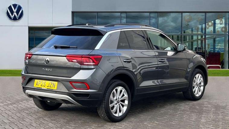 Advanced driver attention and drowsiness monitor, Dynamic road sign display, Emergency call service, Lane keeping system Lane Assist, Mobile phone interface, Modified key software - reduce switch off time for key status change to Long no motion, Online services, Park assist including front and rear parking sensors, Power assisted speed sensitive steering, Rear view camera, Service interval indicator, Tailgate/trunk lid release from outside, Think blue trainer driver tips and journey analysis, Warning sound and light for front seatbelts unfastened, Wireless app connect, Battery regeneration during braking, Front shock absorption, Rear shock absorption chassis with increased ride height, Start/stop function with battery regeneration, DAB Digital radio, Diversity antenna for FM reception, Music playback - MP3, WMA and AAC files, Premium USB cable in choice of either Apple or Android smartphone compatibility, SD card slot, Simultaneous pairing of 2 compatible mobile devices, Title and cover art display, We Connect and We Connect Plus functionality, Auto dimming interior rear view mirror, Automatic hazard lights activation under emergency braking, Automatic headlight control with LED separate daytime running lights with coming/leaving home function, Black roof rails, Body coloured bumpers and radiator grille with chrome trim and front fog lamps with chrome bezel, Body coloured exterior mirror housings and door handles, Electrically adjustable and heated door mirrors, Extended roof spoiler, Exterior mirrors aspherical on driver side, convex on front passenger side, External USB type C socket and charging sockets, Front windscreen wiper with intermittent wipe and 4 position delay, Heated rear window, LED 3rd brake light, LED rear combination lamps, LED rear number plate lights, Power windows with comfort operation and circuit breaker, Privacy glass for rear side windows and rear window, Rain sensor, Rear exhaust tailpipe, Rear fog light on one side and reversing lights on both sides, Rear side wing doors, Rear wash/wipe with intermittent wipe setting, Remote electrically foldable door mirrors, puddle lights and reverse activated passenger's door mirror, 12V power socket in centre console, 3 rear head restraints, 3 seat bench in 2nd row, 4 load lashing points in luggage compartment, Air care climatronic air conditoning system with active combination filter and 2-zone temperature control, Black stitching for floor mats, Ceramique roof liner, Cloth upholstery, Door and side trim panel in cloth, Drawer under drivers seat, Driver/front passenger seat height adjustment, Front centre armrest, Front comfort sports seats, Front cupholders x 2, Front reading light, Front seat back storage pockets, Glove compartment door with light, Instrument lighting, white adjustable panel illumination, Interior ambient lighting and surround lighting, Interior light delay, Isofix child seat preparation, Leather gearshift handle, Load-through provision with cup holder when folded down ('Unsplit rear seat bench, split folding backrest, with centre armrest), Luggage compartment lighting, Lumbar support for driver's and front passengers seat, Non-folding front passenger seat backrest, Single front passenger seat, Storage compartment in left and right luggage area, Storage compartment in rear doors, Storage compartments in driver and front passenger doors, Sunvisors with illuminated vanity mirrors, Variable boot floor, height adjustable and removable, Driver assistance pack without proactive passenger protection - T-Roc Life/Match, 3 point height adj front seatbelts + pretensioners, 3 point seatbelts in outer rear with ECE label, ABS, Child locks on rear doors, City emergency braking and pedestrian monitoring, Driver and front passenger airbag with front passenger airbag deactivation, Driver and front passenger safety-optimised head restraints, Drivers seatbelt reminder, Electronic parking brake, Electronic Stability Control (ESC) inc EDL (Electronic Differential Lock) and ASR (Traction Control), Front and rear passengers curtain airbag system including front side airbags, Front disc brakes, Hill start assist, Predictive pedestrian protection, Rear disc brakes, Two tone horn, Tyre pressure loss indicator, Volkswagen roadside assistance, Alarm with interior protection, Keyless locking and starting system keyless access with safelock, Pewter matt decorative inserts for intrument panel, centre console and door panels at the front, Trims for alloy wheels,